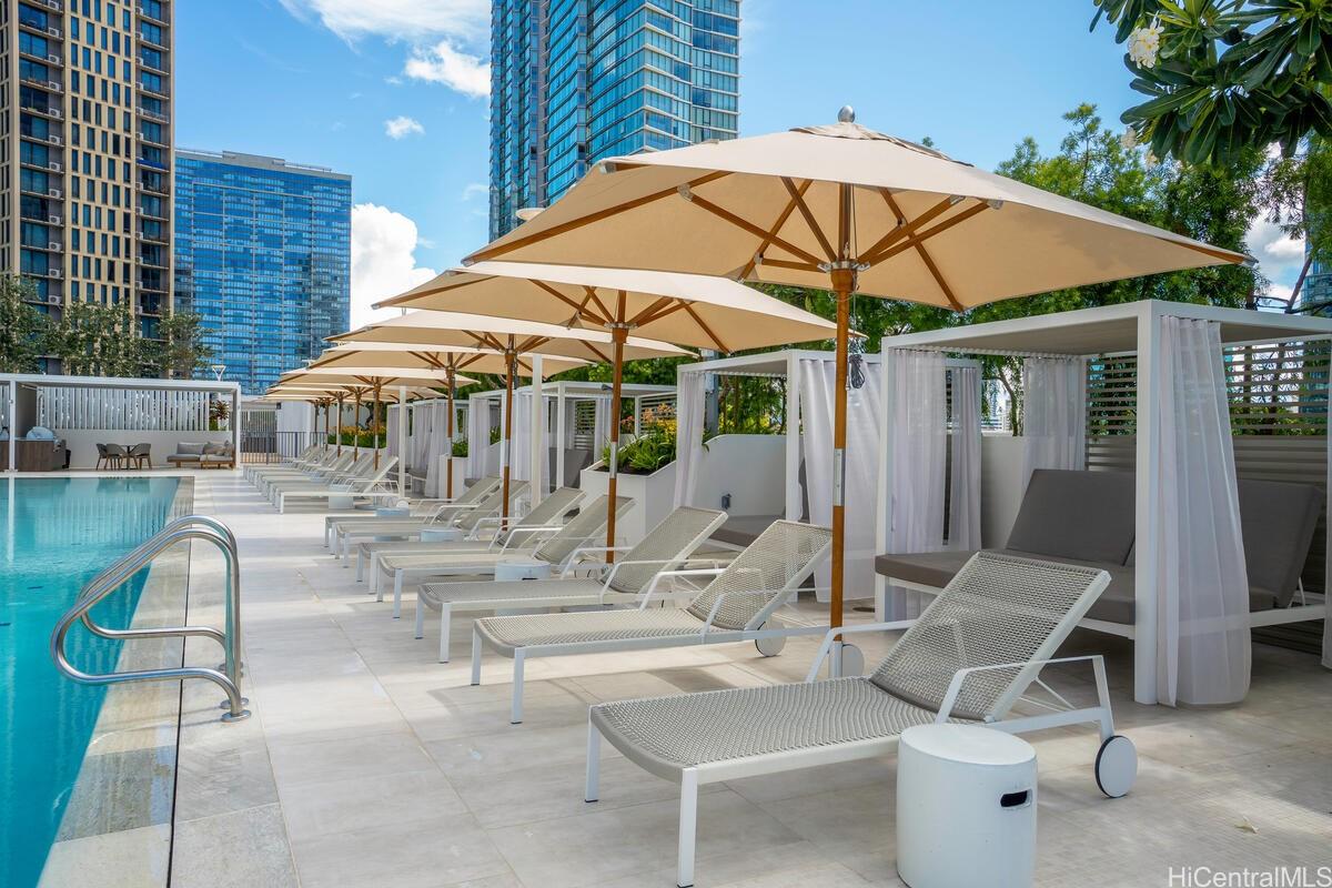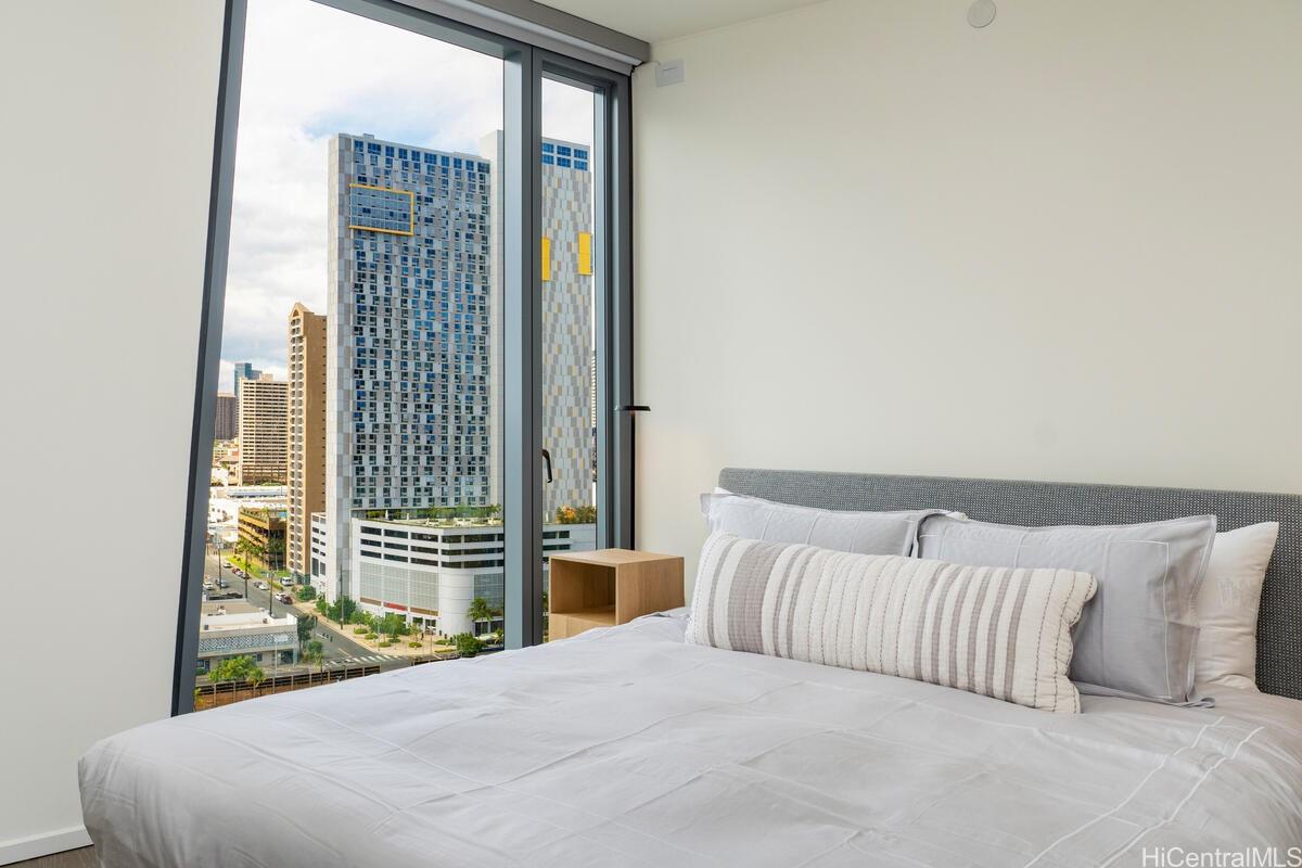 Koula 1303 is a beautifully designed 1-bedroom residence in the heart of Ward Village. Featuring wood flooring throughout (except the bathroom), this unit offers a modern yet warm interior with a functional open layout. The living area flows seamlessly to a usable private lanai, which becomes a true extension of your living space — ideal for morning coffee overlooking Victoria Ward Park or relaxing evenings with a touch of ocean view just beyond. Positioned at an ideal height, you enjoy both privacy and perspective. Step outside and experience the perfect blend of greenery and blue horizon. The kitchen includes premium appliances, sleek cabinetry, and an in-unit washer and dryer for everyday convenience. One compact parking stall (P6-129C) is included. Optional storage room S6-3 is available for $40,000. Enjoy Koula’s resort-style amenities and unbeatable location just steps from Whole Foods, Ala Moana Beach Park, dining, and shopping. An amazing opportunity to own in one of Kakaako’s most desirable buildings. Listing by: Jack Tyrrell & Company (808) 532-3330