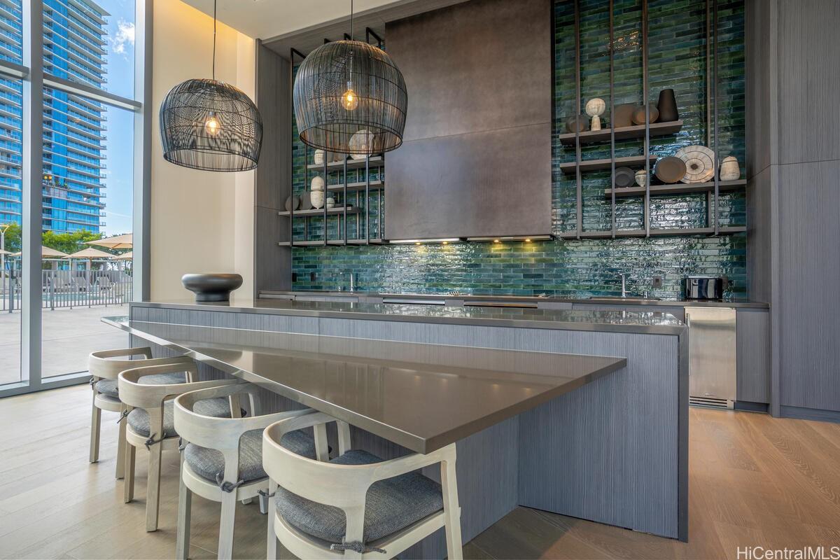 [0] => Koula 1303 is a beautifully designed 1-bedroom residence in the heart of Ward Village. Featuring wood flooring throughout (except the bathroom), this unit offers a modern yet warm interior with a functional open layout. The living area flows seamlessly to a usable private lanai, which becomes a true extension of your living space — ideal for morning coffee overlooking Victoria Ward Park or relaxing evenings with a touch of ocean view just beyond. Positioned at an ideal height, you enjoy both privacy and perspective. Step outside and experience the perfect blend of greenery and blue horizon. The kitchen includes premium appliances, sleek cabinetry, and an in-unit washer and dryer for everyday convenience. One compact parking stall (P6-129C) is included. Optional storage room S6-3 is available for $40,000. Enjoy Koula’s resort-style amenities and unbeatable location just steps from Whole Foods, Ala Moana Beach Park, dining, and shopping. An amazing opportunity to own in one of Kakaako’s most desirable buildings.