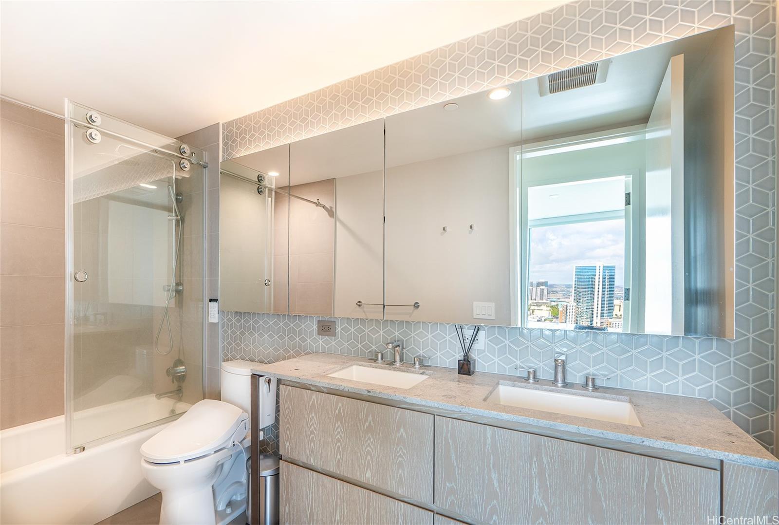 Experience modern Island living at Ko’ula, where contemporary design meets world-class amenities in the vibrant Ward Village community. Located mere moments away from Ala Moana Beach Park, South Shore Market, Whole Foods, and endless dining and entertainment options, this is urban living at its finest. This beautifully designed unit features engineered wood flooring, custom wood cabinetry, natural stone countertops, and premium Miele appliances. The bathroom includes a double vanity, tub/shower combo, and walk-in closet, while central AC ensures year-round comfort. A full-size parking stall near the elevator and ample guest parking add extra convenience. Ko’ula offers resort-style amenities, including a lap pool, dual whirlpool spas, sauna, indoor and outdoor fitness center, multiple BBQ pavilions, playground, private dining rooms, and 24/7 security and concierge service. Listing by: Century 21 iProperties Hawaii (808) 791-1020