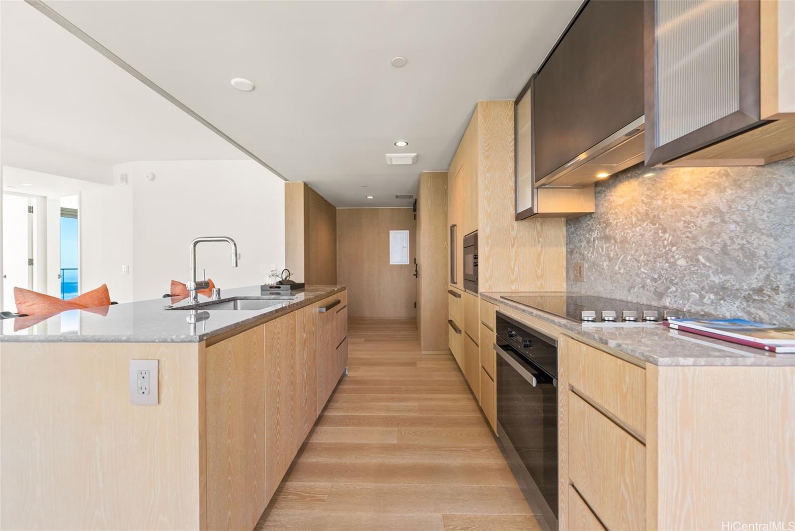 string(1200) "A highly sought-after high-floor northeast-facing unit at Koula, NEVER BEEN OCCUPIED, perfectly positioned to capture refreshing natural breezes and postcard views of Diamond Head, the ocean, and the mountains- offering a full panoramic range. Featuring 2 bedrooms, 2 bathrooms, 2 lanais and 2 side-by-side parking stalls, this residence reflects the visionary design of Jeanne Gang, paired with sophisticated interiors by Yabu Purshelberg, creating an unmatched blend of luxury and elegance. The open-concept living space is adorned with floor-to-ceiling windows, allowing the natural light to illuminate the space and highlight the stunning scenery. The modern kitchen is equipped with premium Miele stainless steel appliances. Enjoy over an acre of outdoor amenities including a 25-yard lap pool, two whirlpools, a sunset lounge and bar, barbecue cabanas, a fitness pavilion, a great lawn and a children's play area. Indoor amenities including private dining rooms, catering kitchens, a state-of-the-art fitness center with treatment room, guest suites & more. Located in the heart of Ward Village community, just steps away from shops, trendy restaurants, Whole Foods, and Ala Moana Beach Park."