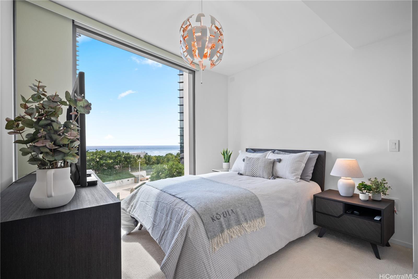 Koula at Ward Village offers island living at its best! Relax and enjoy ocean and pool views with cool breezes from the comfortable lanai. A popular floorplan with bonus nook for remote work or dining, this 1-bedroom, 1-bath Diamond Head facing unit includes a well-appointed kitchen with premium Miele appliances, natural stone counter tops, engineered wood flooring, and an assigned, covered parking space. Koula living includes access to resort-style amenities that include BBQ pavilions, speed grills, private & pool side cabanas, indoor & outdoor fitness centers, locker rooms with steam showers & sauna, private treatment room, private dining room, Grand Lanai, Great Lawn, play area, pool, whirlpools, and guest suites. Conveniently located in the heart of Kakaako near shopping, dining, Ala Moana Beach, Whole Foods and more! Listing by: Corcoran Pacific Properties (808) 294-4517