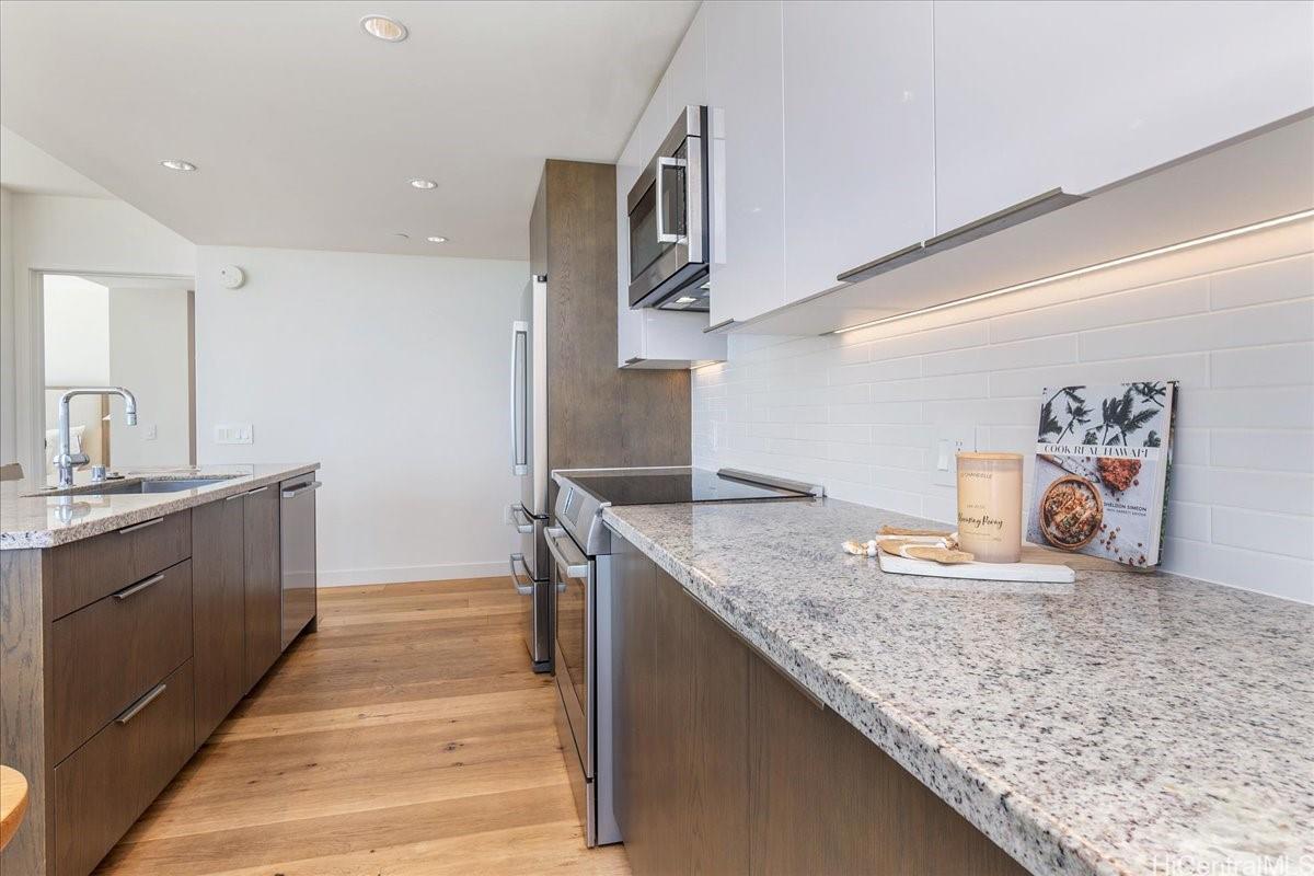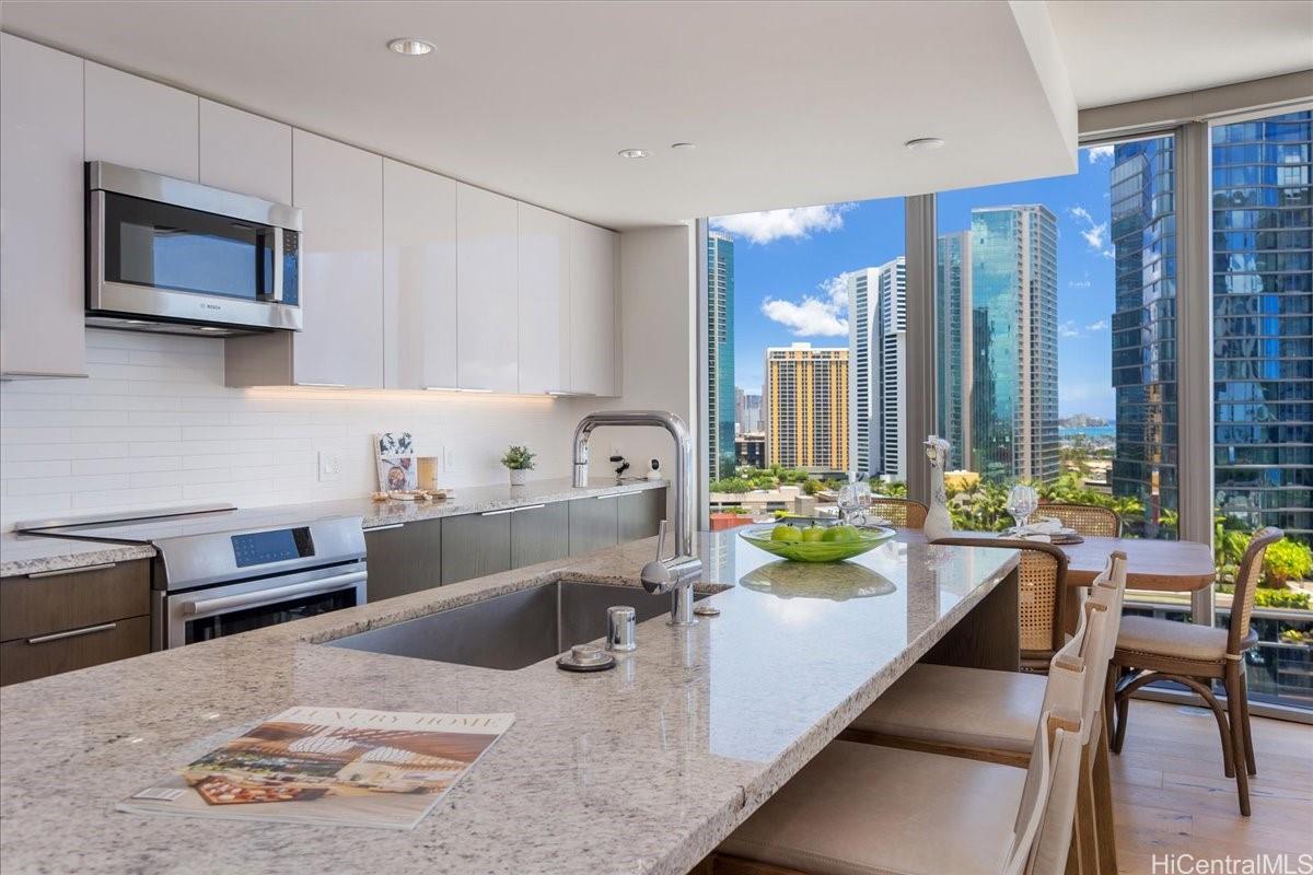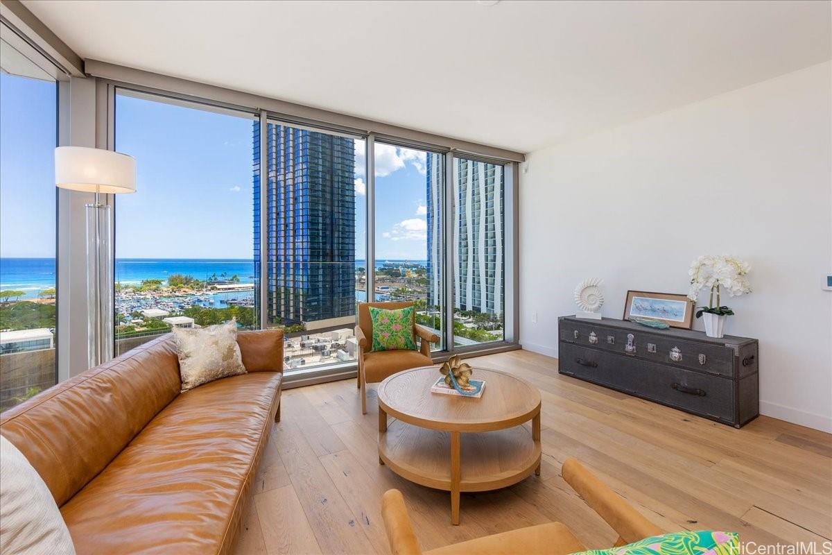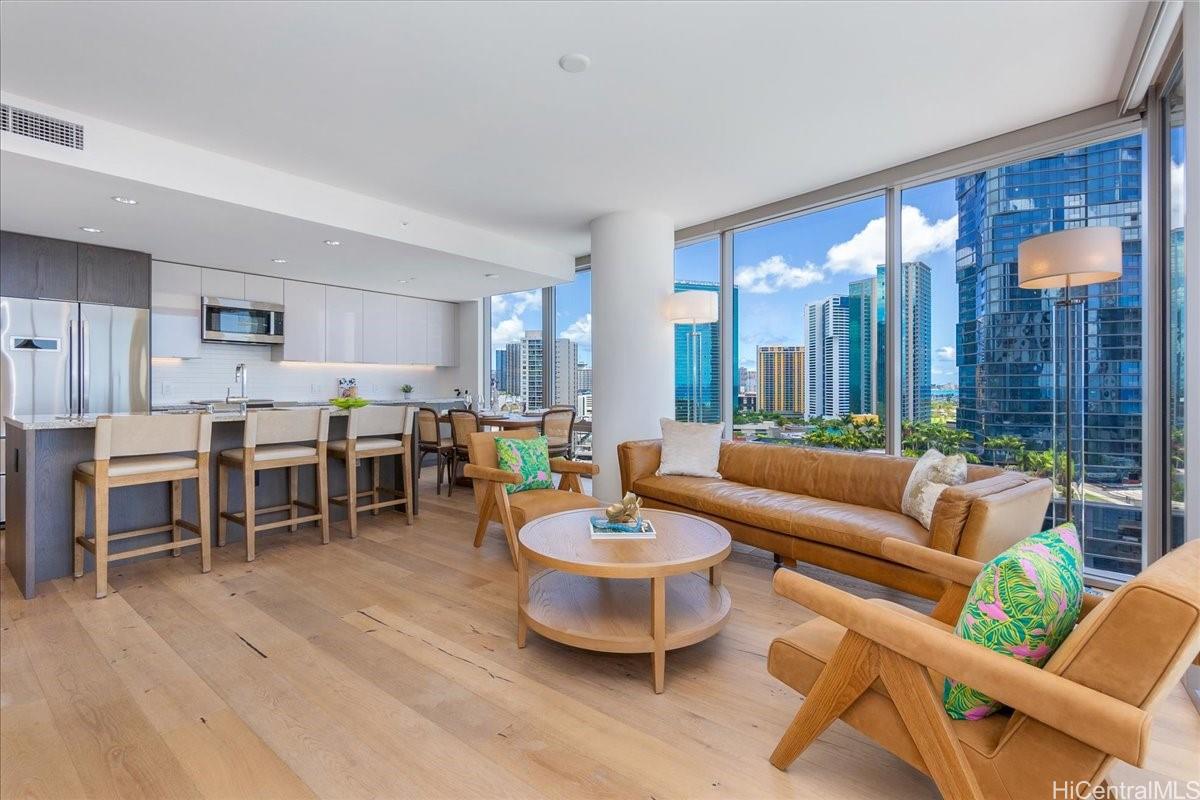Experience refined island living in this beautifully appointed 3-bedroom, 3-bath residence at Ae‘o, located in the heart of Ward Village – Honolulu’s award-winning community. This spacious unit boasts over 1,300 square feet of thoughtfully designed interior space, electric shades, and stunning ocean views from the main living areas. Proudly owner-occupied and never rented out, this residence has been meticulously maintained. A rare highlight includes 2 excellent parking stalls on the 2nd level, with direct access to Whole Foods Market, providing sought-after convenience. Additionally, a generously sized storage room is conveniently located by the parking stalls, enhancing your lifestyle flexibility. The efficient and elegant layout offers comfort and functionality in every room. Ae‘o’s prime location places you steps away from the future Victoria Ward Park, featuring beautifully landscaped pathways and a direct overpass to Kewalo Basin Harbor and Ala Moana Beach Park. Enjoy luxury urban living at Ae‘o, with resort-style amenities and direct access to Whole Foods, all within the vibrant and walkable Ward Village community. Listing by: Jack Tyrrell & Company (808) 436-6765