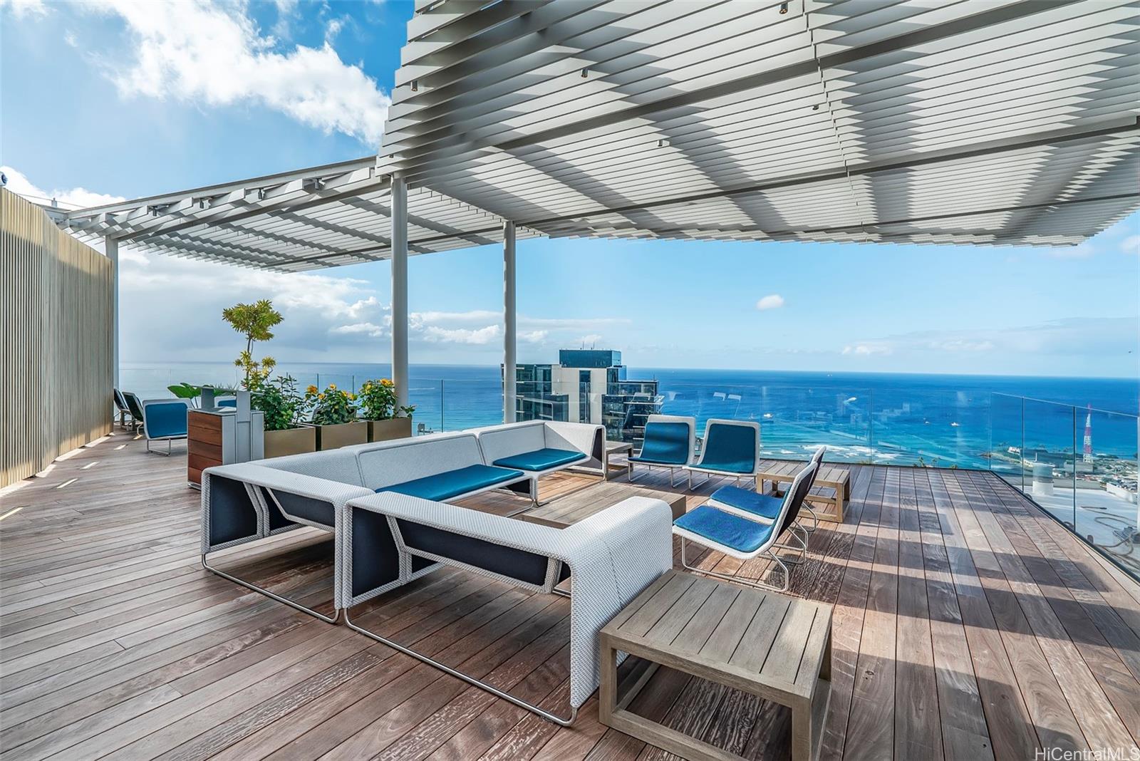 This immaculate, modern residence boasts floor-to-ceiling windows that offer breathtaking panoramic ocean and city views from every room. Bright and airy unit features elegant quartz countertops, Bosch appliances, motorized shades, a wall-mounted TV, and a walk-in closet in the primary bedroom. Both bathrooms are equipped with soaking tubs, double sinks, and TOTO Washlets. The residence includes super-convenient spacious tandem parking stalls located next to the elevators on the Mezzanine level, and a storage locker for additional space. Enjoy direct access to Whole Foods Market from Ae'o, enhancing your convenience and lifestyle. Resort-style amenities, including a Rooftop Sky Terrace, two pools, Jacuzzi, a fully equipped gym, a sauna, steam room, BBQ cabanas, private party rooms, theater, guest suites, a karaoke room, playground, dog park, and more. Its prime location provides easy access to renowned restaurants, shops, movie theaters, Ala Moana Beach Park, Kewalo Boat Harbor, and Ala Moana Shopping Center. Embrace the vibrant Kakaako lifestyle and enjoy the ultimate in modern living at this stunning residence. Listing by: Coldwell Banker Realty (808) 738-3904