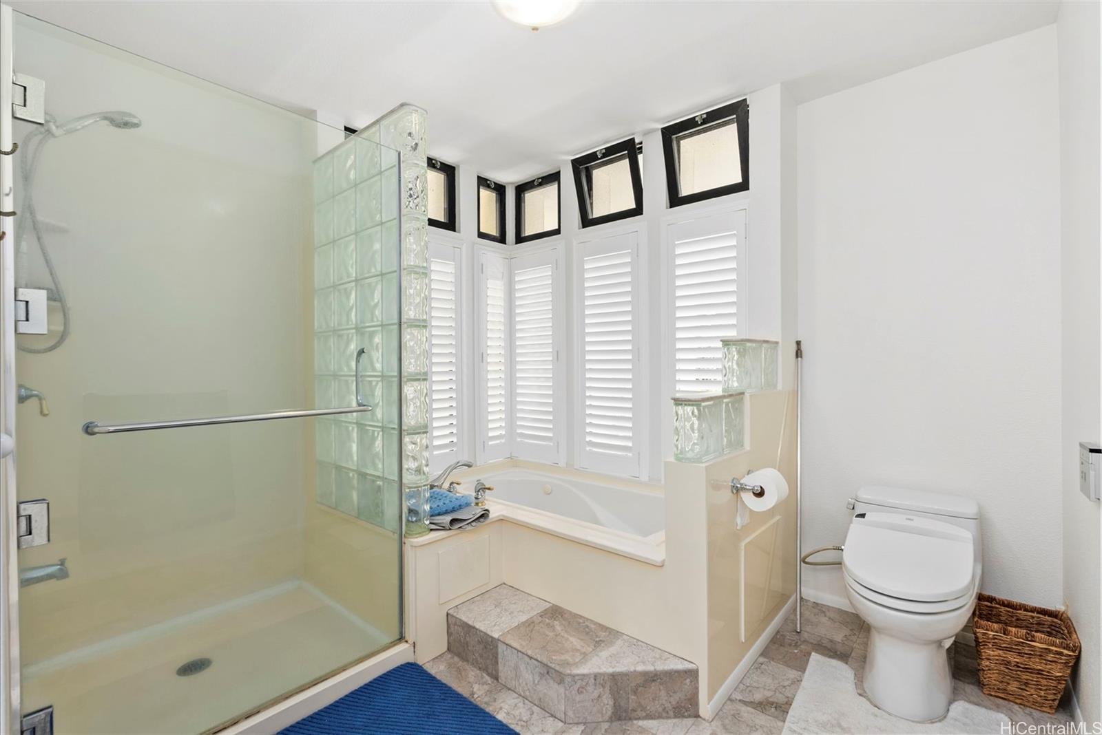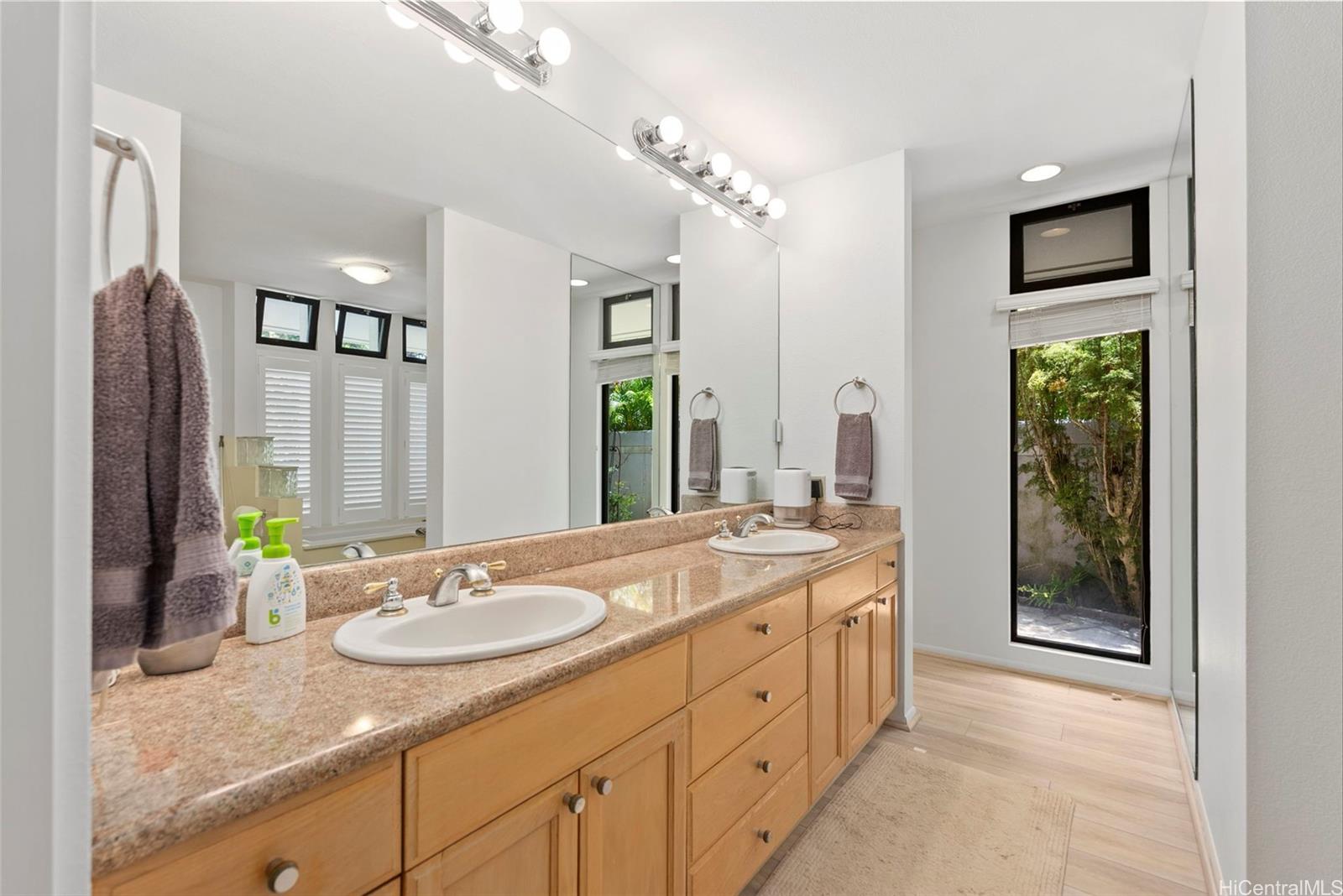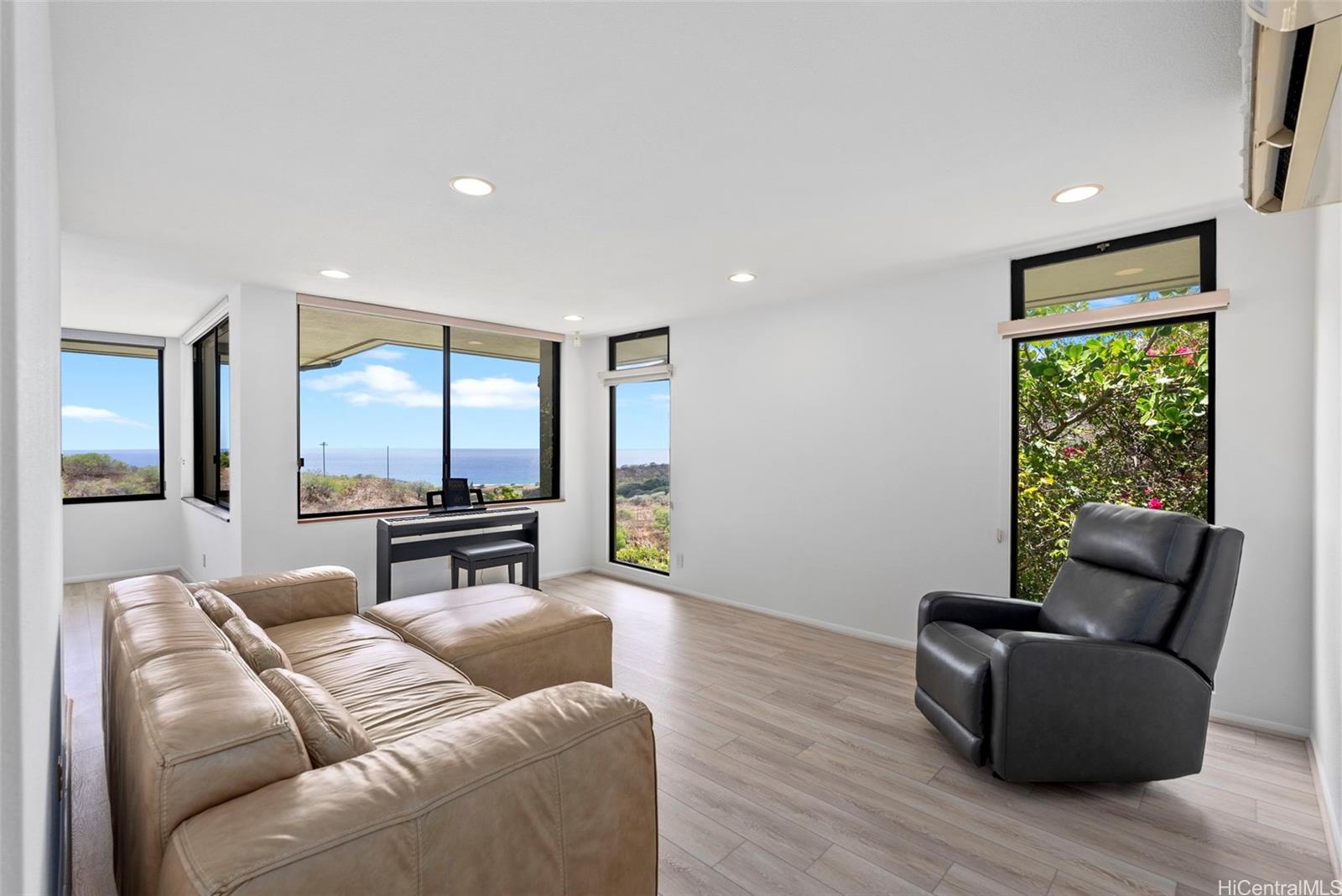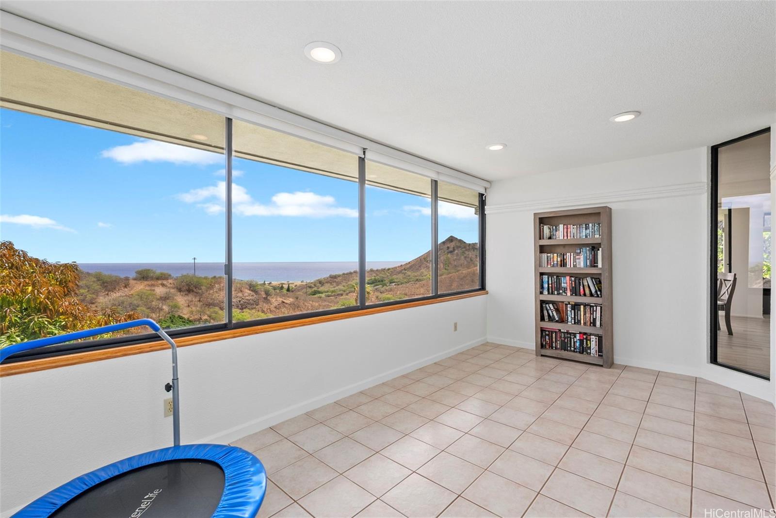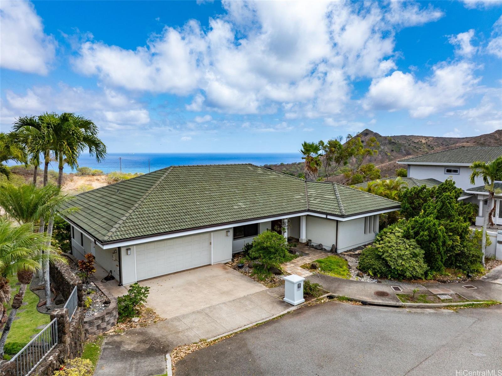 NEW LISTING!! Discover the epitome of island living with the unique combination of sweeping ocean and mountain views with a spacious SINGLE LEVEL floorplan offered by this 3 bdrm/3 bath home in the highly-sought after Na Pali Haweo neighborhood. Privately situated at the end of a cul-de-sac on an 11,900 sq. ft. lot with mature fruit trees, this home features over 2,400 sq. ft. of interior living space, vinyl plank flooring, two bedrooms w/ en suite bathrooms, with the primary bathroom including a whirlpool bath, 24 PV panels with net metering and a thoughtfully designed layout. Elevated above neighboring homes, this home offers a truly breathtaking vantage point where you can relax on your patio and take in the serene views. Located near beaches, parks, Hawaii Kai Golf Course…must see to appreciate! Listing by: REMAX Hawaii (808) 738-3633