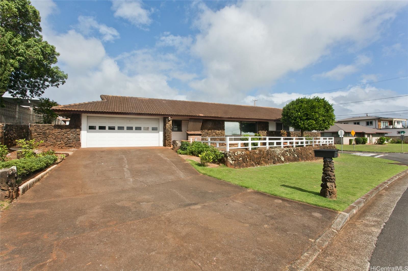 Admired for its expansive design and inviting curb appeal, this 4-bedroom, 2.5-bath single-level home is being offered for sale by its original owner. Perched on an elevated, level lot professionally terraced with moss rock walls, the property offers both privacy and island character with Asian-inspired touches. With 1,900+ sq. ft. of living space, the home features a separate laundry room, peaceful private lanai and enclosed 2-car garage. Exterior updates include the complete replacement of aged cast-iron pipes with a new 4" PVC sewer line connected at the road, plus a large driveway for additional parking. The interior is full of potential, awaiting your vision and creative touches to make it truly your own. Conveniently located in a desirable Pearl City neighborhood, just minutes from Pearl Highlands Center, Pearlridge Mall and easy freeway access. A must-see property! Listing by: Locations LLC (808) 286-0068