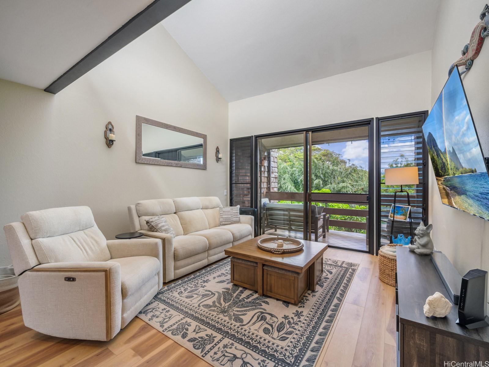[0] => Live the Kailua lifestyle at 1015 Aoloa Pl. #411 in the well-maintained Poinciana Manor community. This thoughtfully renovated 2-bedroom, 2-bath residence blends modern finishes with comfortable island living. The unit is well positioned within the complex offering enhanced privacy, creating a peaceful retreat while remaining close to Kailua’s vibrant energy.