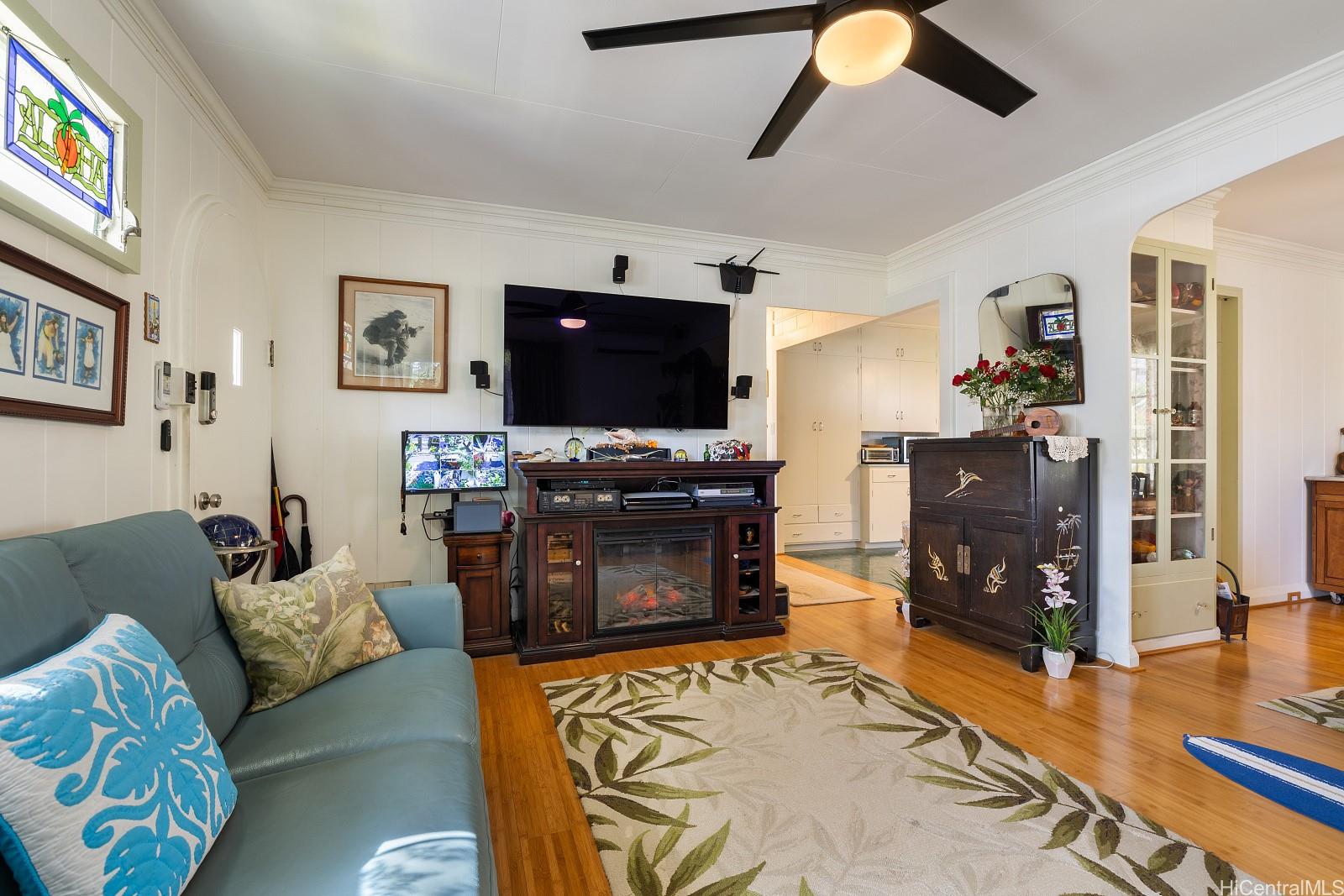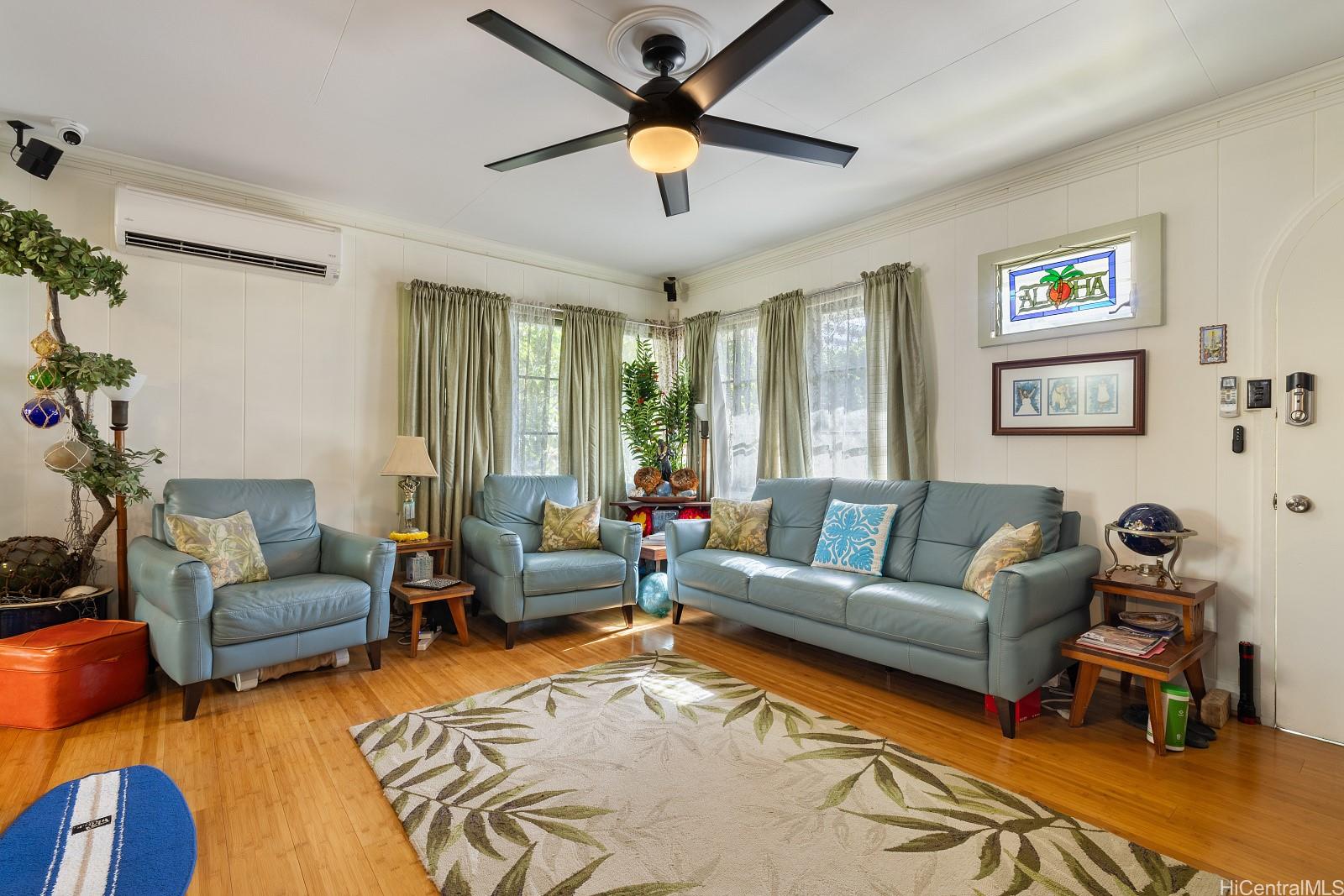 Welcome to your Tropical Oasis in the Heart of Punchbowl ! Nestled in a lush landscape, with your own waterfall, this charming 2 bedroom, 2 bath, single family home is meticulously maintained. Just a stone's throw away from vibrant Kaka'ako/Ala Moana area, you'll enjoy easy access to beaches, tasty restaurants, and lively shopping. As you step inside, you'll be greeted by an inviting, open living space with natural light & hardwood bamboo flooring. The spacious bedrooms are a plus, every room has split A/C & ceiling fans, stainless steel appliances in the kitchen & a video security system by "Security Alarm" are all included. With 4 parking spots, this home is the best value in town. Upgrades include a moss rock wall, custom wrought iron fencing, 3 electric awnings, cat 5 wiring, intercom, motion lighting, digital locks & 2021 Roof. Whether you're enjoying a morning coffee in the tropical yard or hosting a BBQ with friends, this outdoor space is perfect for both relaxation & entertaining. With it's prime location close to town & the beach, this property is not just a home, it's a lifestyle. Schedule a viewing and experience the perfect blend of island living & urban convenience. Listing by: 20 Degrees North Real Estate (808) 225-7291