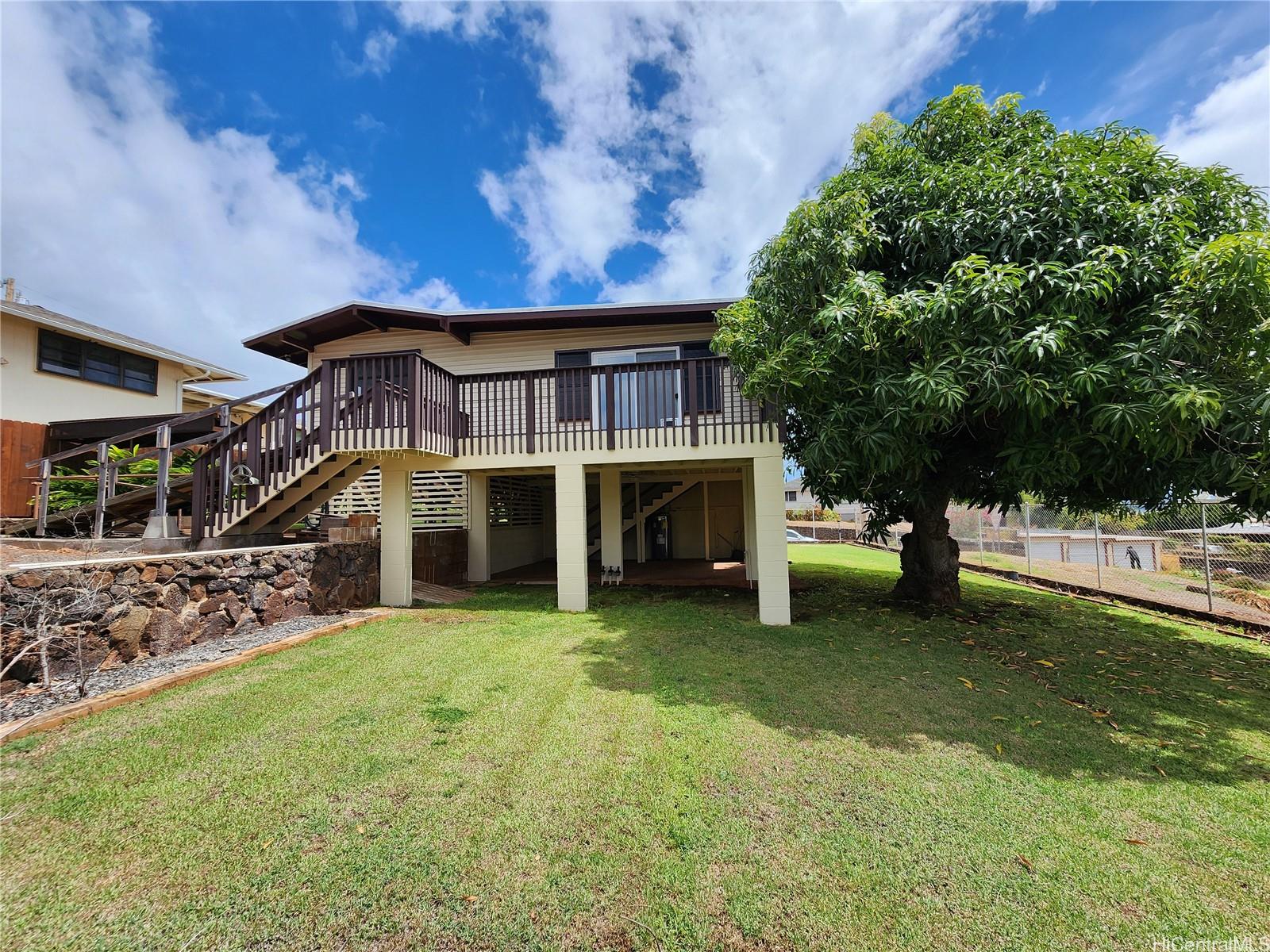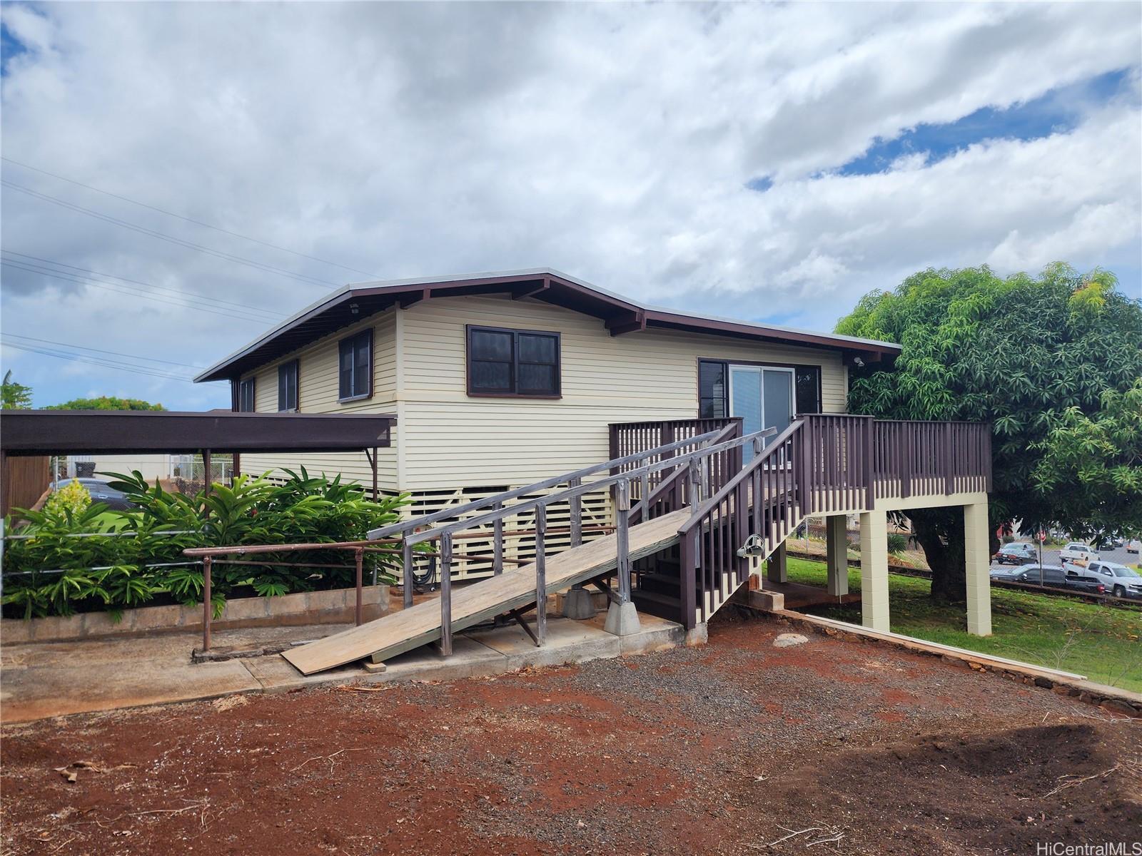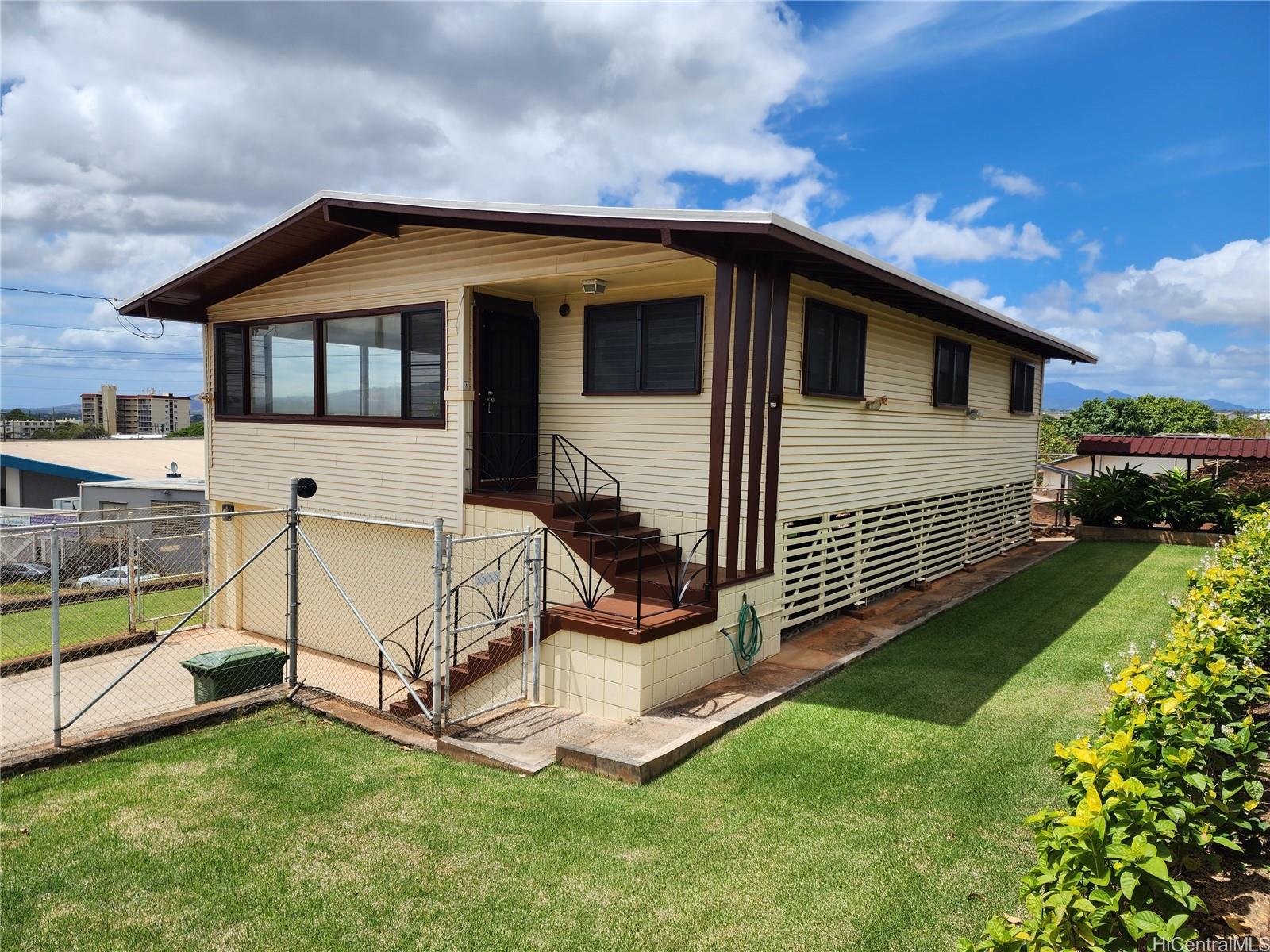 string(907) "In Pearl City, located overlooking the Pearl City Shopping Center. 3-Bedroom, 1.5-bath house on a corner lot. No neighbor on Makai left-side, has good view of the neighborhood. House has "good bones" and is in good structural condition. House exterior trim and interior has been newly painted and roof has been recently silicone coated. Kitchen is in original condition and has NO appliances - opportunity for Buyer to remodel/renovate to their desire. House interior also needs new floor coverings or the original hardwood floors can be refinished. House built elevated above ground and has a partially enclosed garage, laundry/wash room area with an adjoining toilet and covered patio area on the ground floor. Lots of storage area under house. Property is fully enclosed with walls and fencing. Deck and ramp at rear of house was built without a Building Permit. Property to be sold in "AS-IS" Condition."