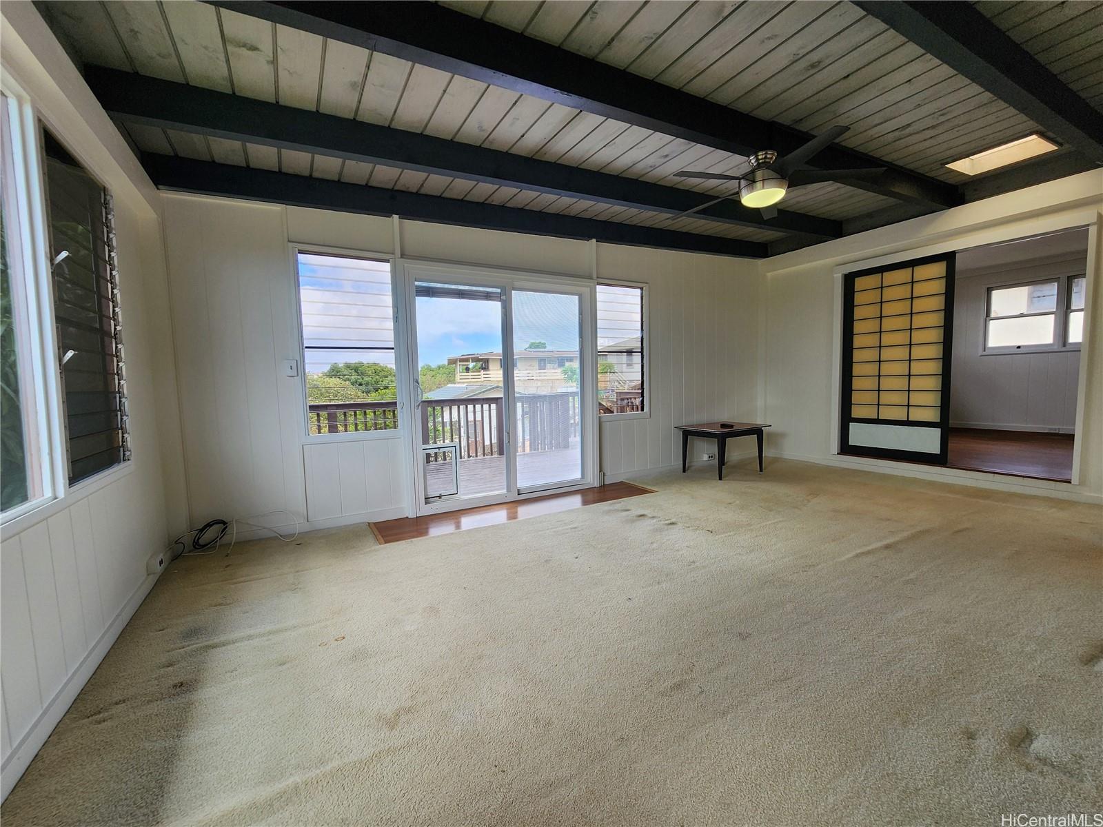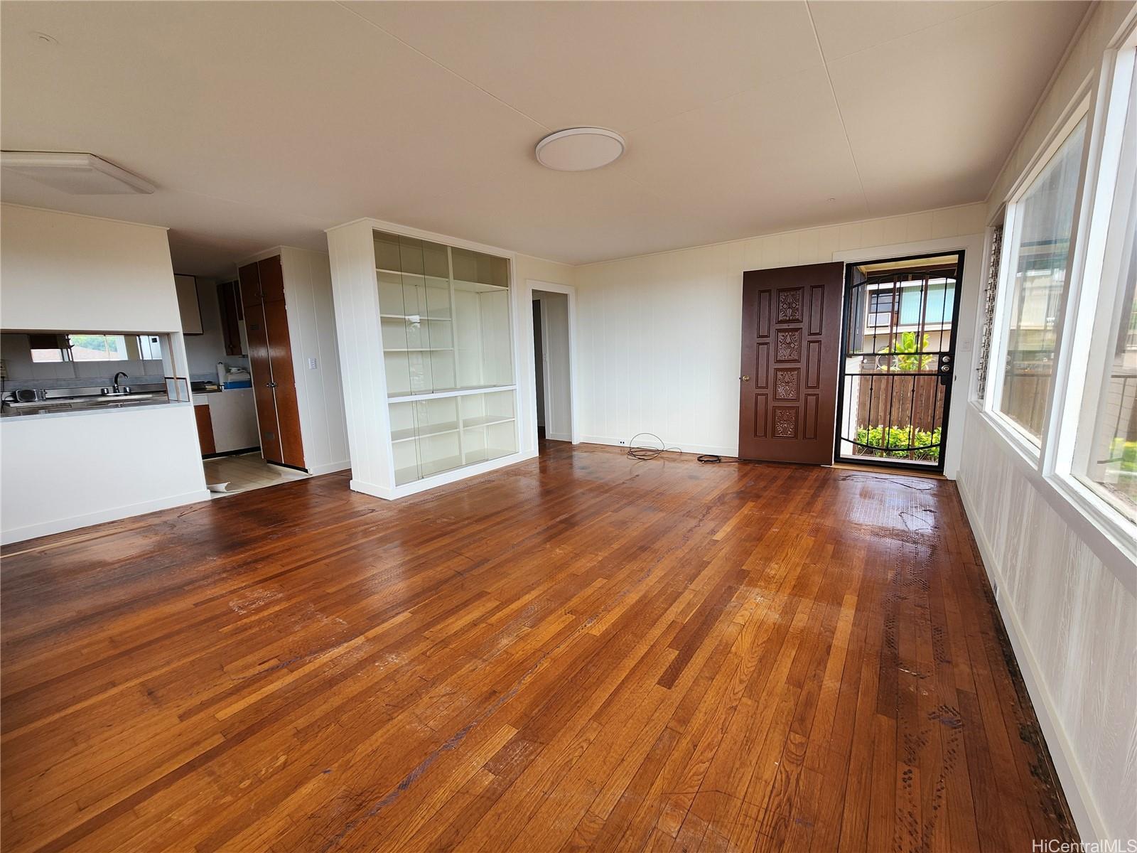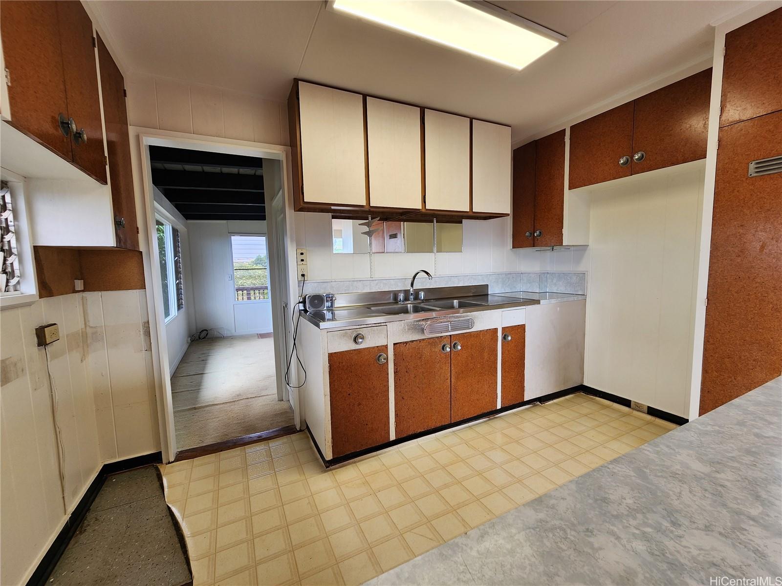 string(907) "In Pearl City, located overlooking the Pearl City Shopping Center. 3-Bedroom, 1.5-bath house on a corner lot. No neighbor on Makai left-side, has good view of the neighborhood. House has "good bones" and is in good structural condition. House exterior trim and interior has been newly painted and roof has been recently silicone coated. Kitchen is in original condition and has NO appliances - opportunity for Buyer to remodel/renovate to their desire. House interior also needs new floor coverings or the original hardwood floors can be refinished. House built elevated above ground and has a partially enclosed garage, laundry/wash room area with an adjoining toilet and covered patio area on the ground floor. Lots of storage area under house. Property is fully enclosed with walls and fencing. Deck and ramp at rear of house was built without a Building Permit. Property to be sold in "AS-IS" Condition."