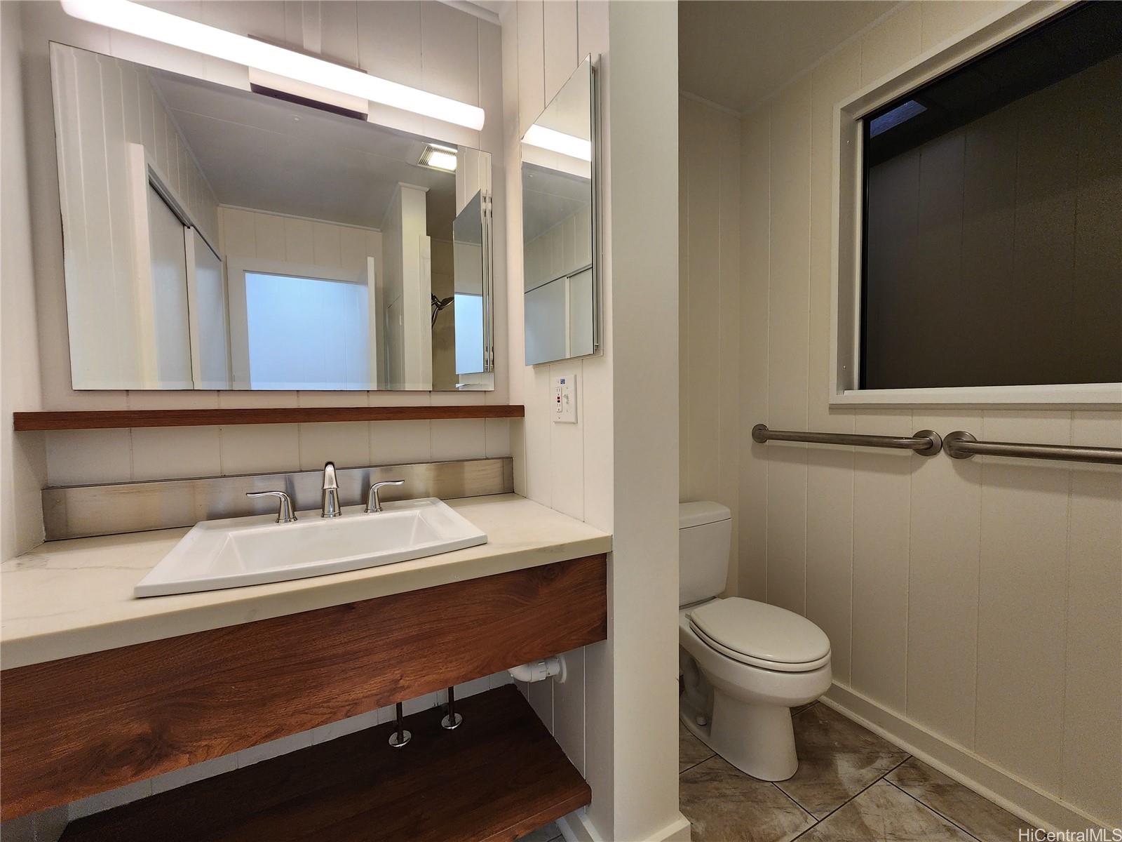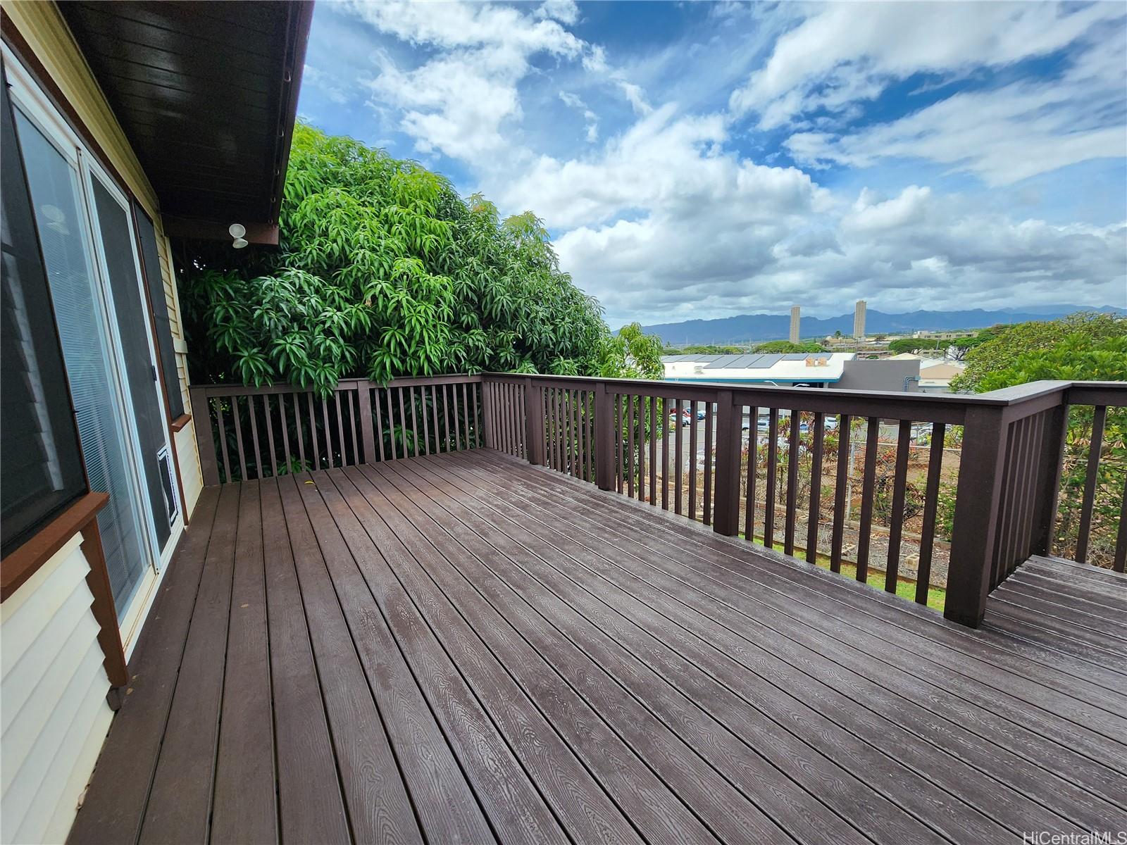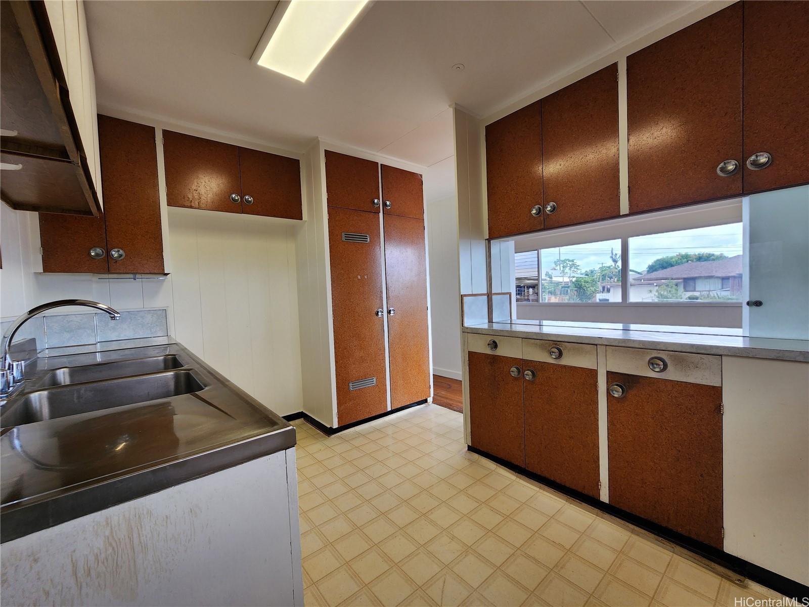 In Pearl City, located overlooking the Pearl City Shopping Center. 3-Bedroom, 1.5-bath house on a corner lot. No neighbor on Makai left-side, has good view of the neighborhood. House has "good bones" and is in good structural condition. House exterior trim and interior has been newly painted and roof has been recently silicone coated. Kitchen is in original condition and has NO appliances - opportunity for Buyer to remodel/renovate to their desire. House interior also needs new floor coverings or the original hardwood floors can be refinished. House built elevated above ground and has a partially enclosed garage, laundry/wash room area with an adjoining toilet and covered patio area on the ground floor. Lots of storage area under house. Property is fully enclosed with walls and fencing. Deck and ramp at rear of house was built without a Building Permit. Property to be sold in "AS-IS" Condition. Listing by: Decision Realty (808) 292-7244