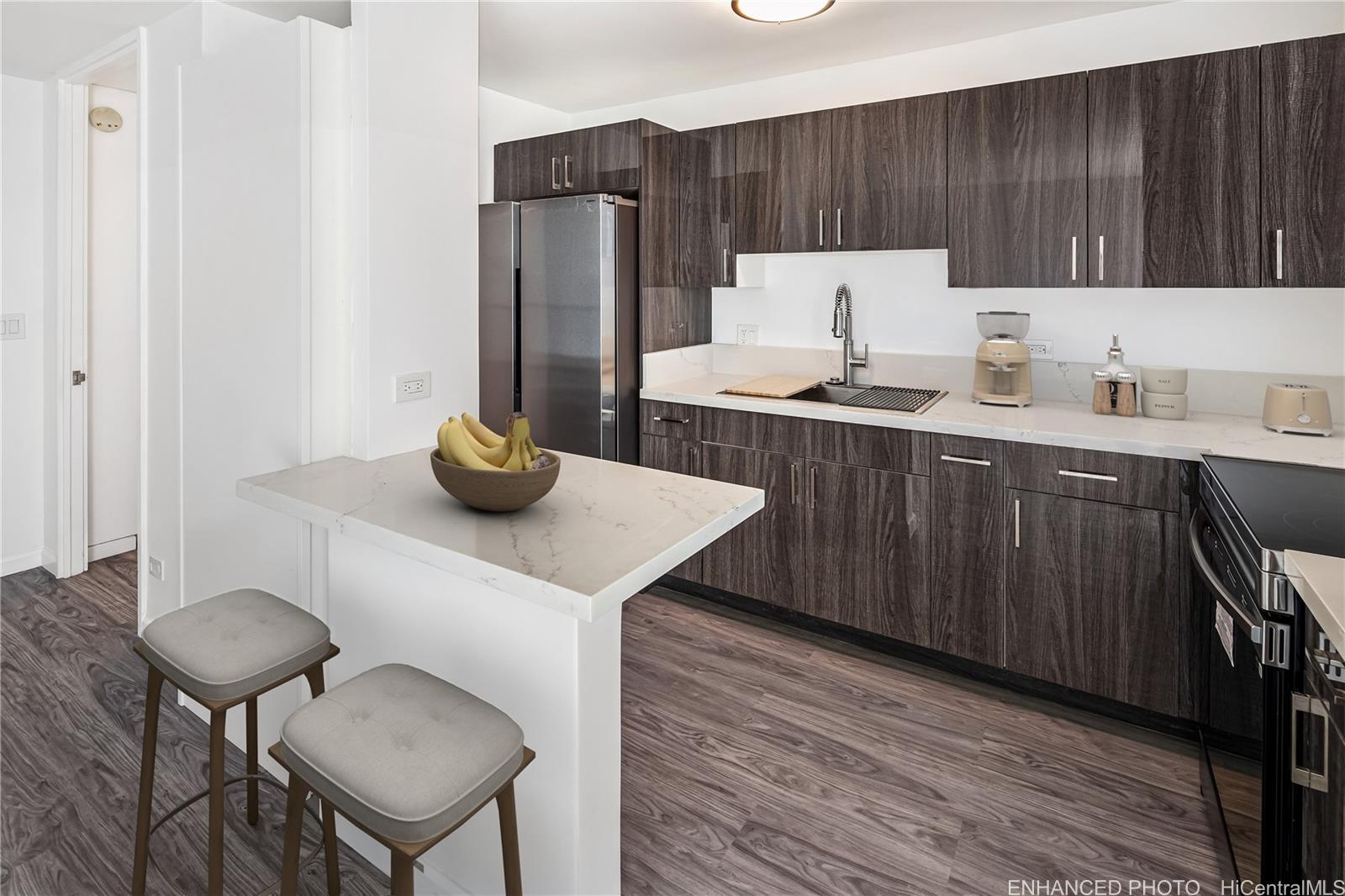 Spacious 1 Bedroom | 1 Bathroom unit featuring full upgrades throughout. Includes 1 covered parking space and central A/C. Electricity is included in the maintenance fee, offering excellent value and lower monthly costs. Well-maintained building with modern finishes, ideal for end-users or investors. Move-in ready. Open House 2:00-5:00pm February 1, 2026. Listing by: Keller Williams Honolulu (808) 596-2888