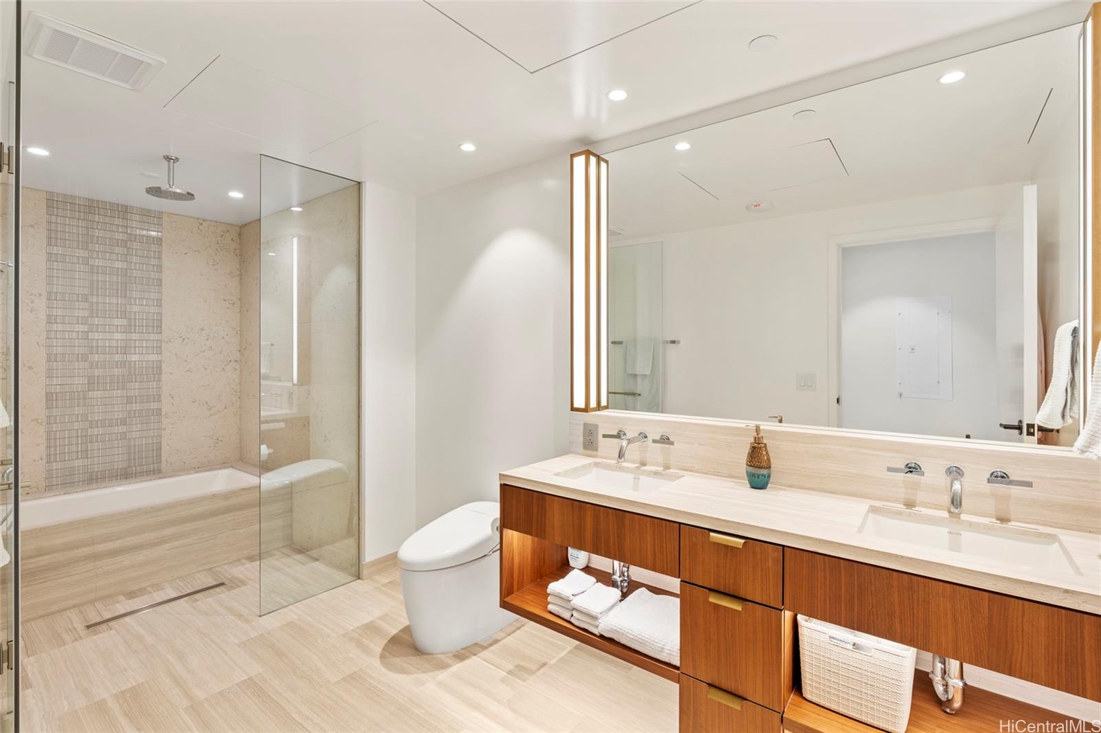 This spacious one-bedroom unit at Victoria Place boasts stunning ocean views framed by swaying palm trees. The building offers an array of luxurious amenities, including multiple pools, private cabanas, a wine room, and a gourmet kitchen. Victoria Place, one of Honolulu's newest luxury buildings, provides residents with exceptional amenities: two resort-style pools, a state-of-the-art fitness center and yoga room, BBQ areas, cabanas, a wine cave, dining and recreation rooms, spas, saunas, hot and cold plunges, and 24/7 security and concierge services. Enjoy resort-style living with easy access to Ala Moana Beach, restaurants, and shops. One or more photos have been enhanced. Listing by: List Sotheby's Int'l Realty (808) 220-1283