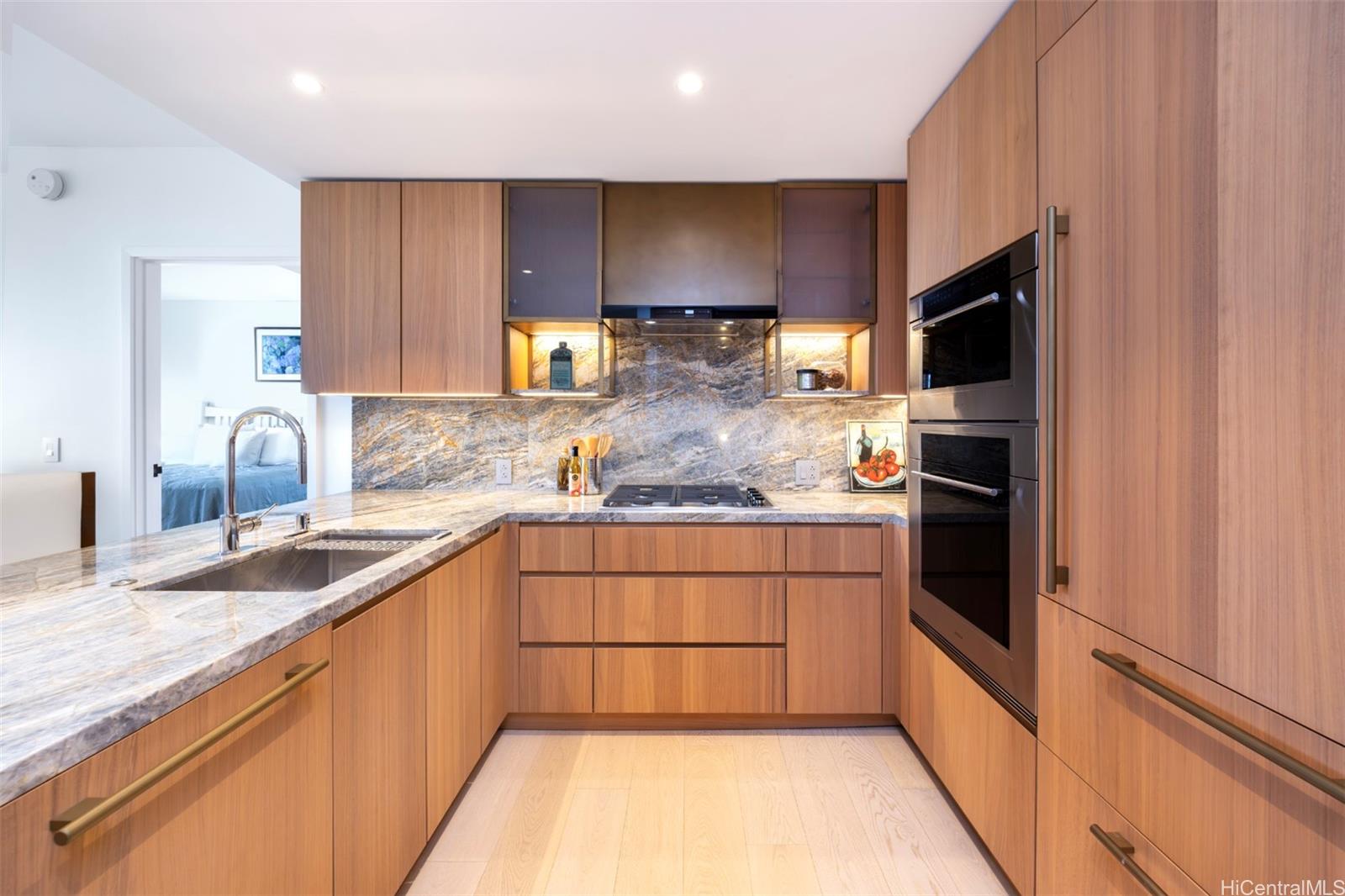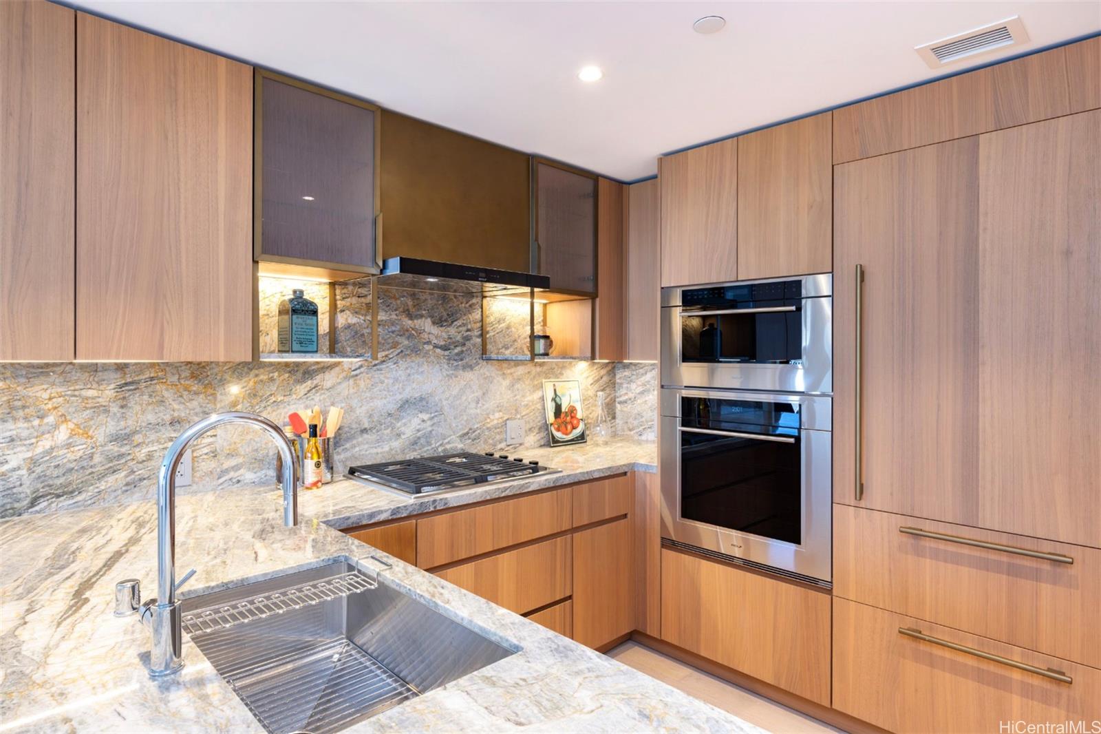 Victoria Place stands as an icon of ultra-luxe condominium living in Honolulu, coveted for its elevated resort amenities, boutique service, and proximity to beaches, parks, shops, and restaurants. This 2-bedroom, 2-bath residence delivers refined luxury living throughout its 1,107 sq.ft. modern-design floor plan, with Pacific Ocean and Boat Harbor views from the living room and both bedrooms. A chef's kitchen with top-of-the-line Sub-Zero and Wolf appliances and elegant marble-wrapped bar seating connects with the primary living room, offering a modern luxury lifestyle experience. The primary bedroom suite includes a walk-in closet, and a resort ensuite bath with walk-in shower room and deep soaking tub. Enjoy world-class amenities including 3 pools, a state-of-the-art fitness center, spas, outdoor cabanas, BBQ areas, a wine cave, a chef's kitchen, a private dining room, a theater room, a media room, and guest suites. Elevated luxury, in the heart of Honolulu: Welcome home to Victoria Place #903. Listing by: Sachi HI Pacific Century Prop. (808) 596-8801