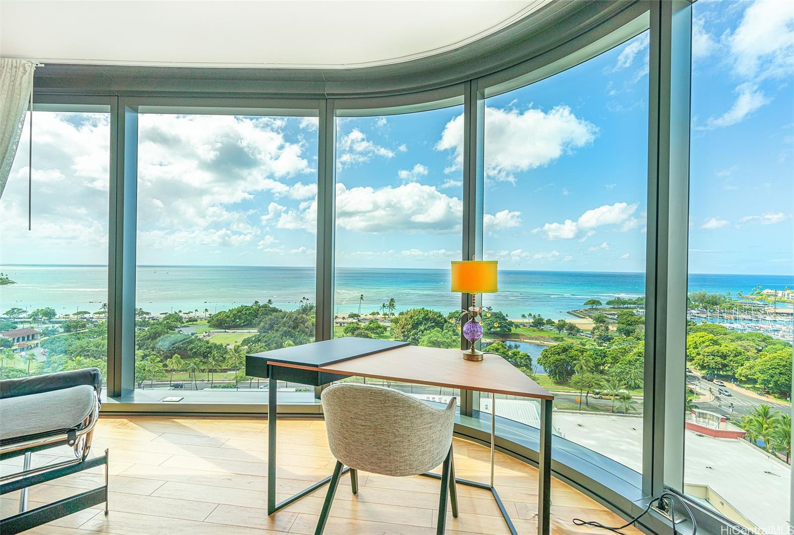 [0] => Anaha #1401 is a stunning and spacious 3-bedroom, 3-bath corner residence in Anaha, situated in the heart of Ward Village. Floor-to-ceiling windows frame breathtaking ocean, city, and harbor views, while curated finishes—Miele appliances, European cabinetry, and spa-inspired bathrooms—elevate everyday living. This sophisticated home blends modern design with island tranquility. Anaha's award-winning amenities include the iconic glass-bottom pool, tennis court, golf simulator, private dining rooms, fitness center, theater, and 24-hour front desk. Located steps from Ala Moana Beach, Whole Foods, and world-class dining, Anaha #1401 presents a rare opportunity to own in Honolulu’s most coveted urban resort community.