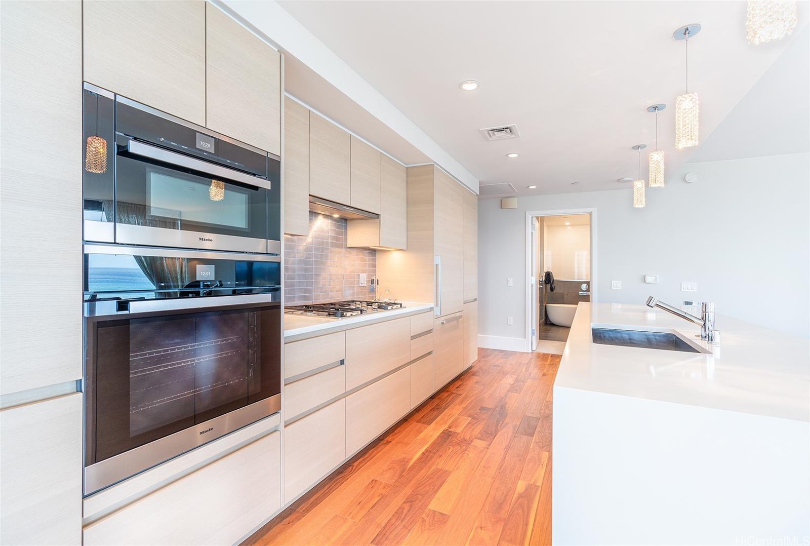 Anaha #1401 is a stunning and spacious 3-bedroom, 3-bath corner residence in Anaha, situated in the heart of Ward Village. Floor-to-ceiling windows frame breathtaking ocean, city, and harbor views, while curated finishes—Miele appliances, European cabinetry, and spa-inspired bathrooms—elevate everyday living. This sophisticated home blends modern design with island tranquility. Anaha's award-winning amenities include the iconic glass-bottom pool, tennis court, golf simulator, private dining rooms, fitness center, theater, and 24-hour front desk. Located steps from Ala Moana Beach, Whole Foods, and world-class dining, Anaha #1401 presents a rare opportunity to own in Honolulu’s most coveted urban resort community. Listing by: List Sotheby's Int'l Realty (808) 745-8196