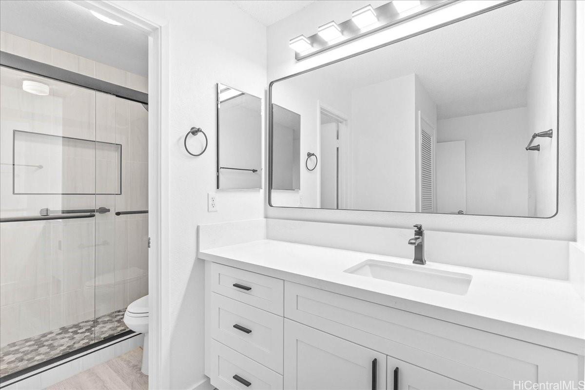 Lakeview living at it's Finest! Over $100,000 on this beautiful Remodel - from the kitchen, bathrooms, windows, sliding glass lanai door and flooring - this stunning home is truly move in ready...Perfectly situated at the very end of the complex, it offers the ultimate peace, privacy and tranquility. This rare single level - 2 bedroom, 2 bath residence with 2 reserved stalls has it all!! Enjoy your morning coffee from your private lanai overlooking Enchanted Lakes, or relax in the living room or primary suite with their uninterrupted lake views. With modern finishes and thoughtful upgrades and a location that can't be beat, this is the Lakeview Oasis you have been waiting for!! Don't miss this chance to call this Gem Home!! Schedule your private showing today... Listing by: Berkshire Hathaway HmSvc HI RE (808) 371-4672
