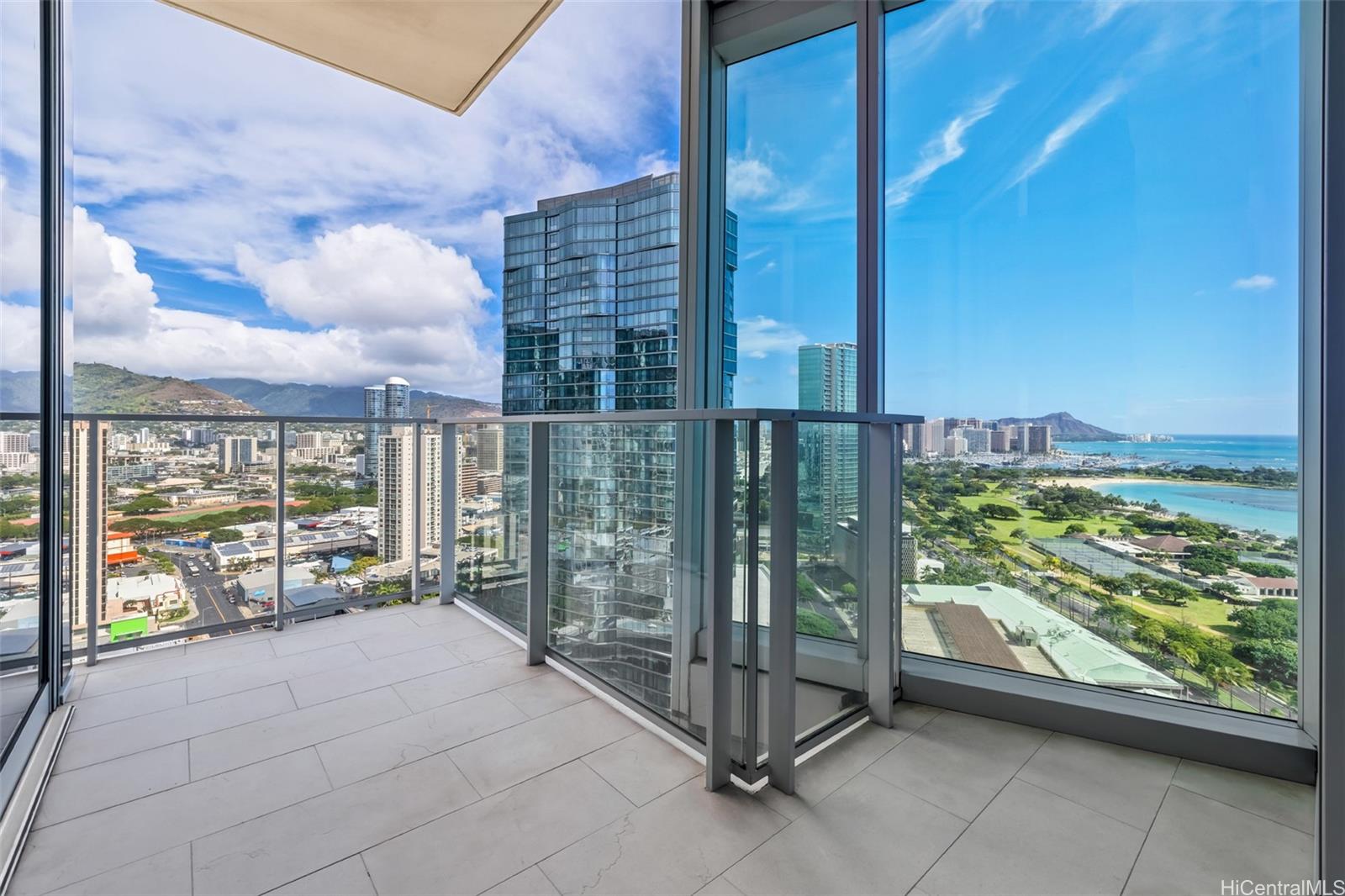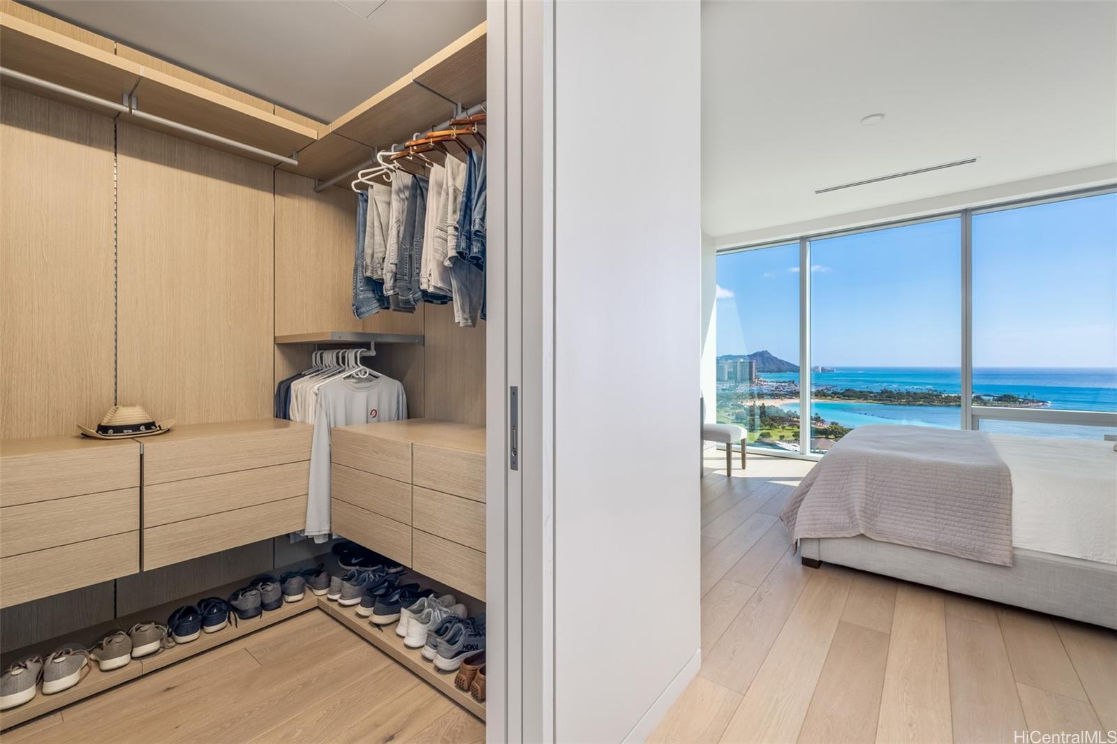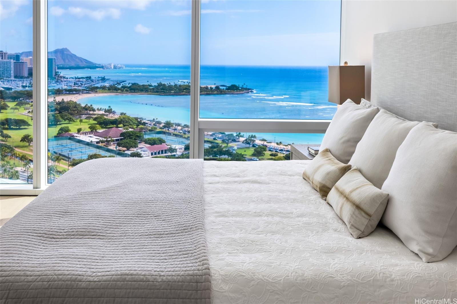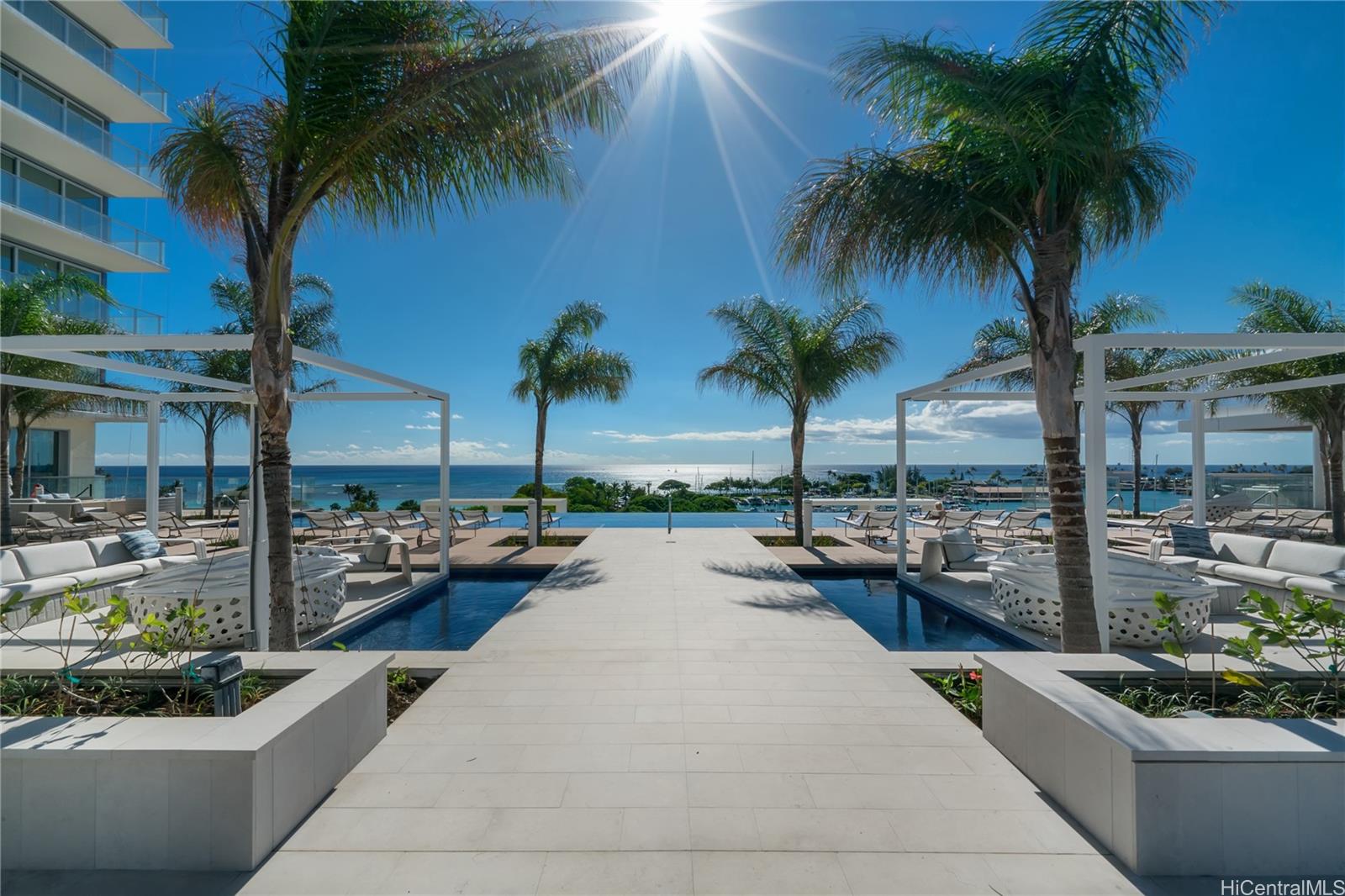 Embrace the luxury of urban island living that is Ward Village in Kakaako. This preferred 06 home in the sky faces the ocean, Diamond Head and the Waikiki Coastline. Private foyer entry, soaring 9’6” ceilings, custom European cabinetry, Miele appliances, beautifully appointed bathrooms feature a dramatic Onyx wall, hardwood and stone flooring throughout, motorized shades at every window – the luxury just never ends. Unparalleled amenities for discerning residents include guest suites for overnight friends, quiet lounges, and the Howard Hughes poolside bar. Separate storage room, 2 parking spaces in garage. Pets are welcome too. Listing by: Coldwell Banker Realty (808) 292-2800