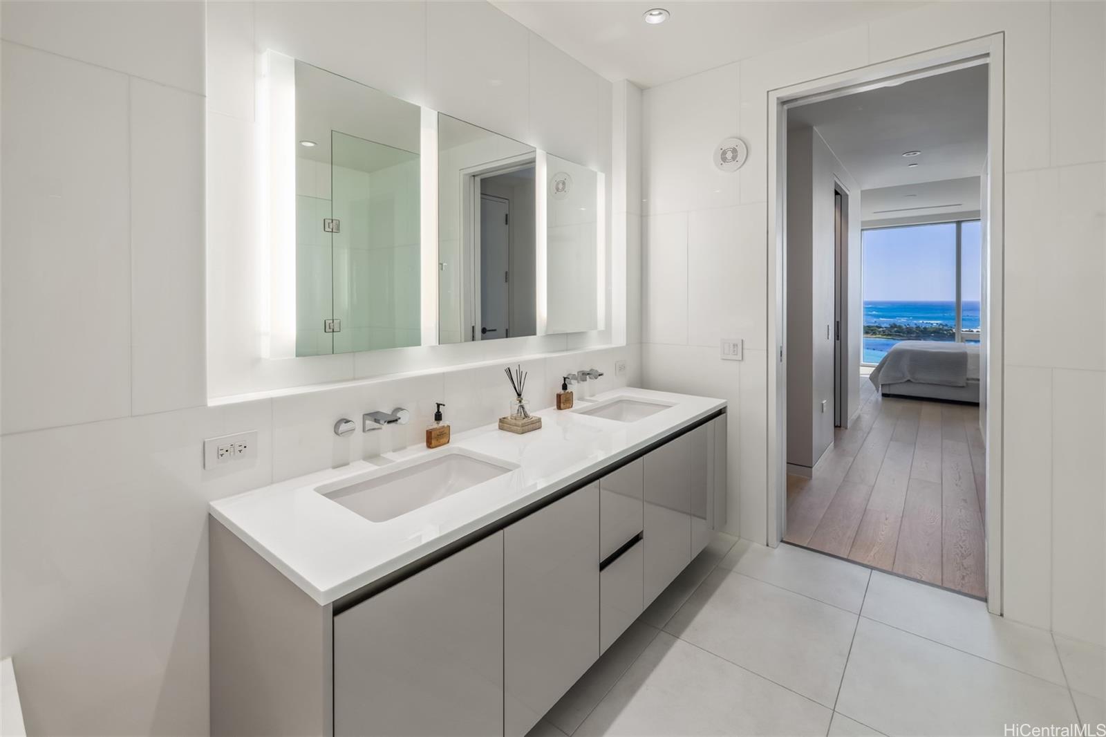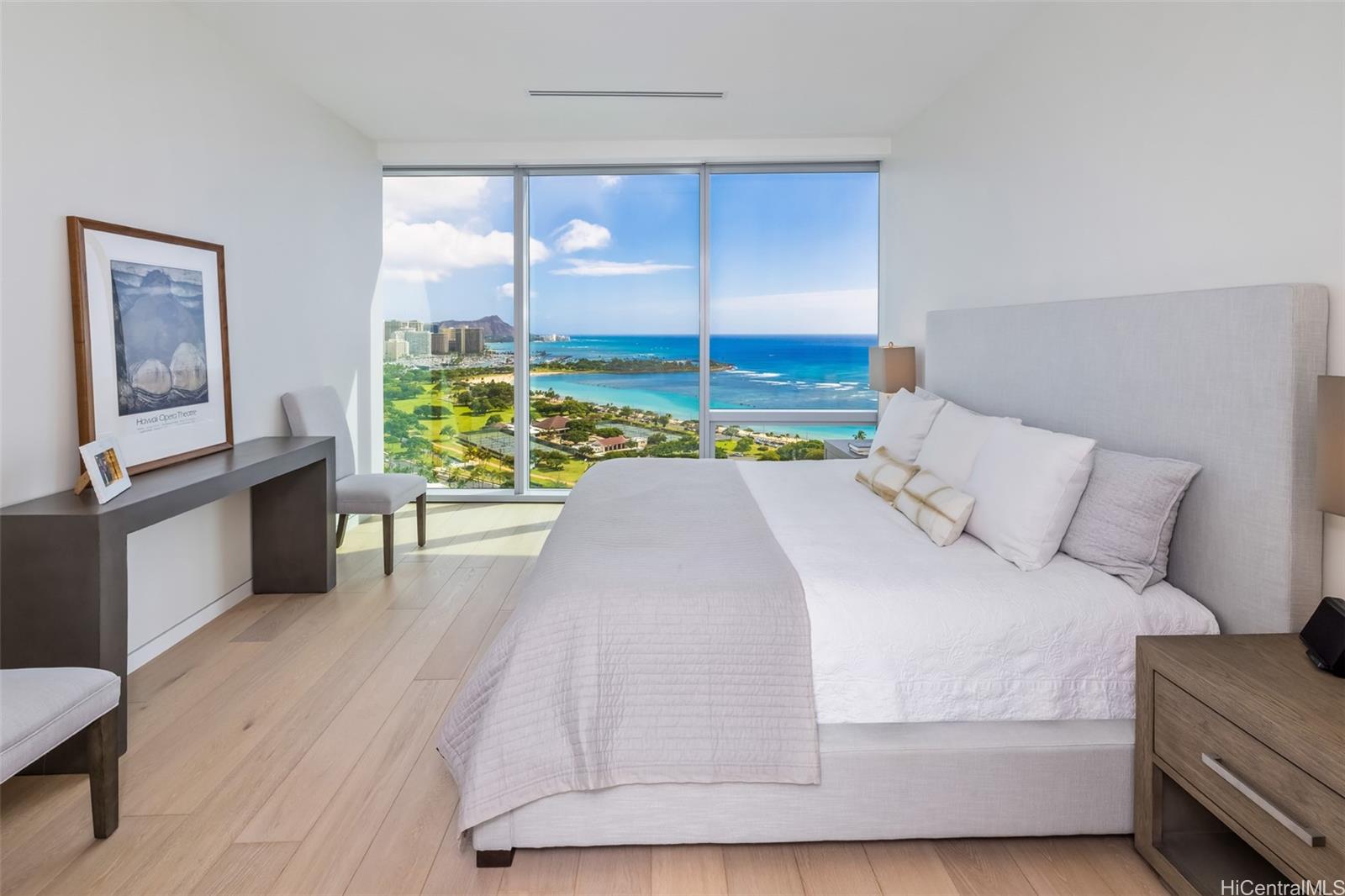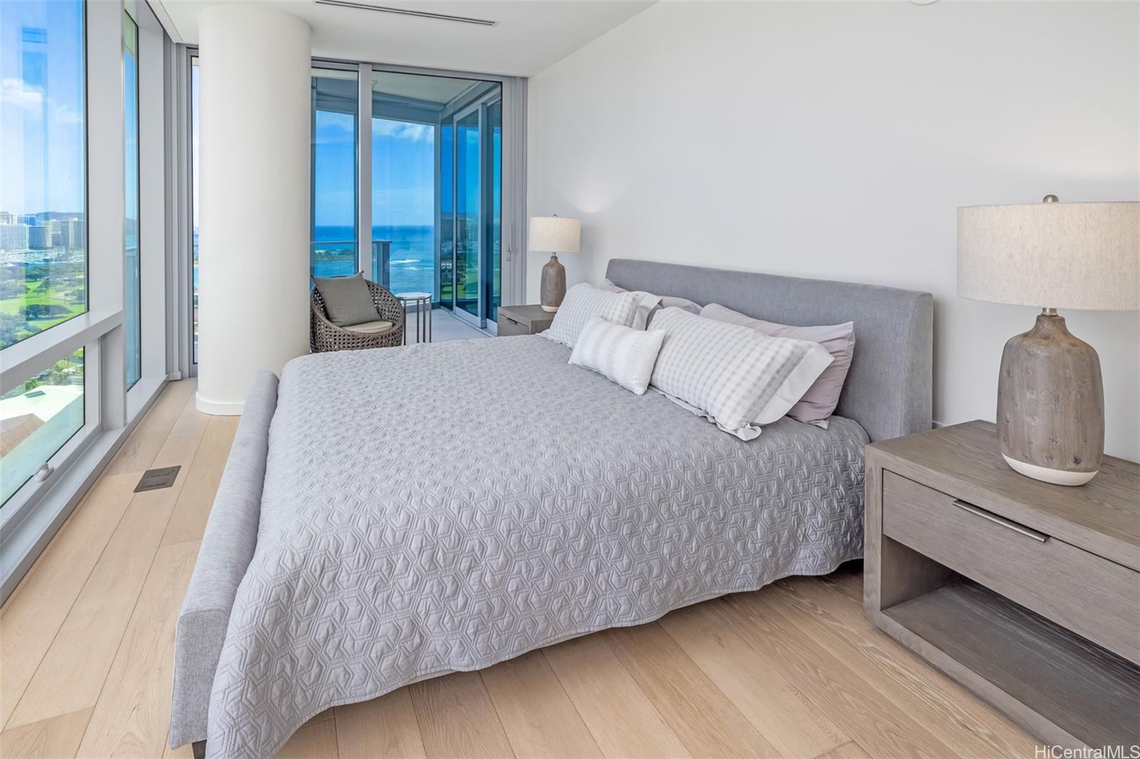 Embrace the luxury of urban island living that is Ward Village in Kakaako. This preferred 06 home in the sky faces the ocean, Diamond Head and the Waikiki Coastline. Private foyer entry, soaring 9’6” ceilings, custom European cabinetry, Miele appliances, beautifully appointed bathrooms feature a dramatic Onyx wall, hardwood and stone flooring throughout, motorized shades at every window – the luxury just never ends. Unparalleled amenities for discerning residents include guest suites for overnight friends, quiet lounges, and the Howard Hughes poolside bar. Separate storage room, 2 parking spaces in garage. Pets are welcome too. Listing by: Coldwell Banker Realty (808) 292-2800