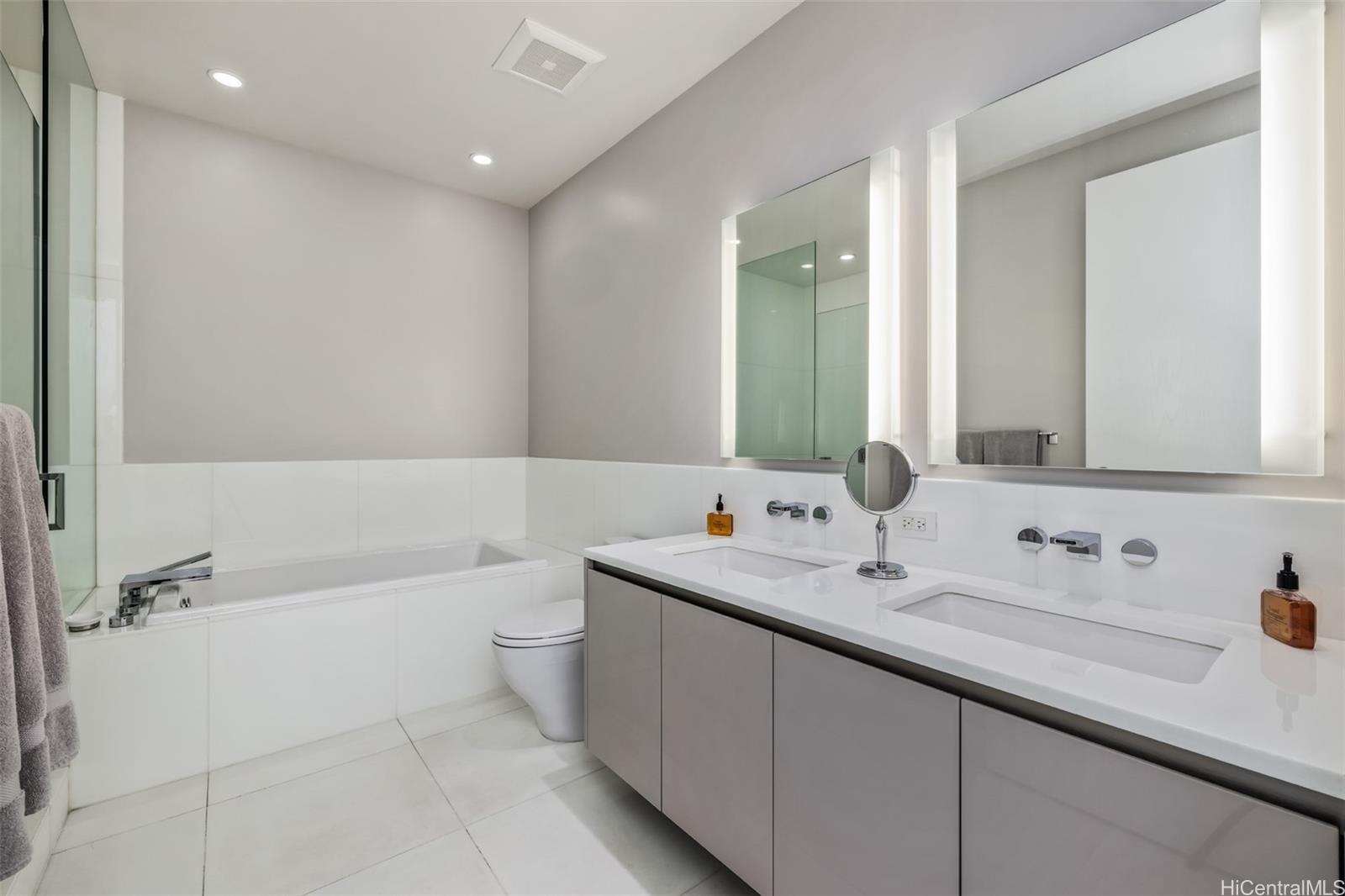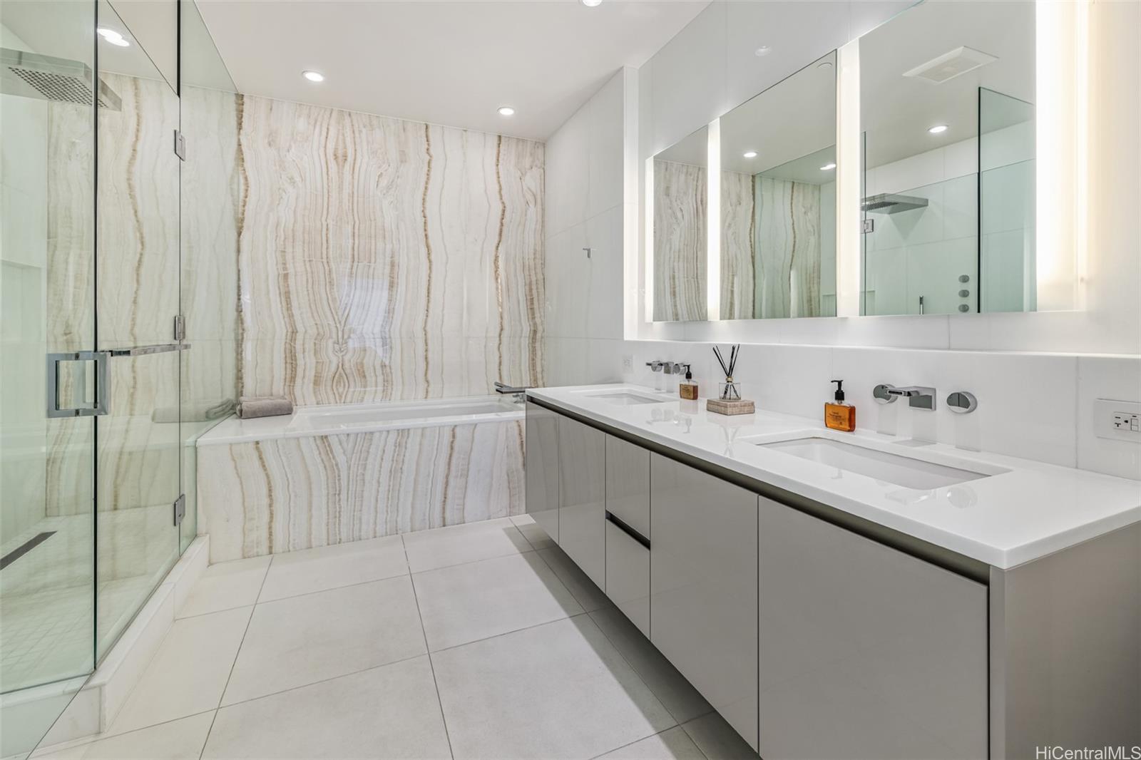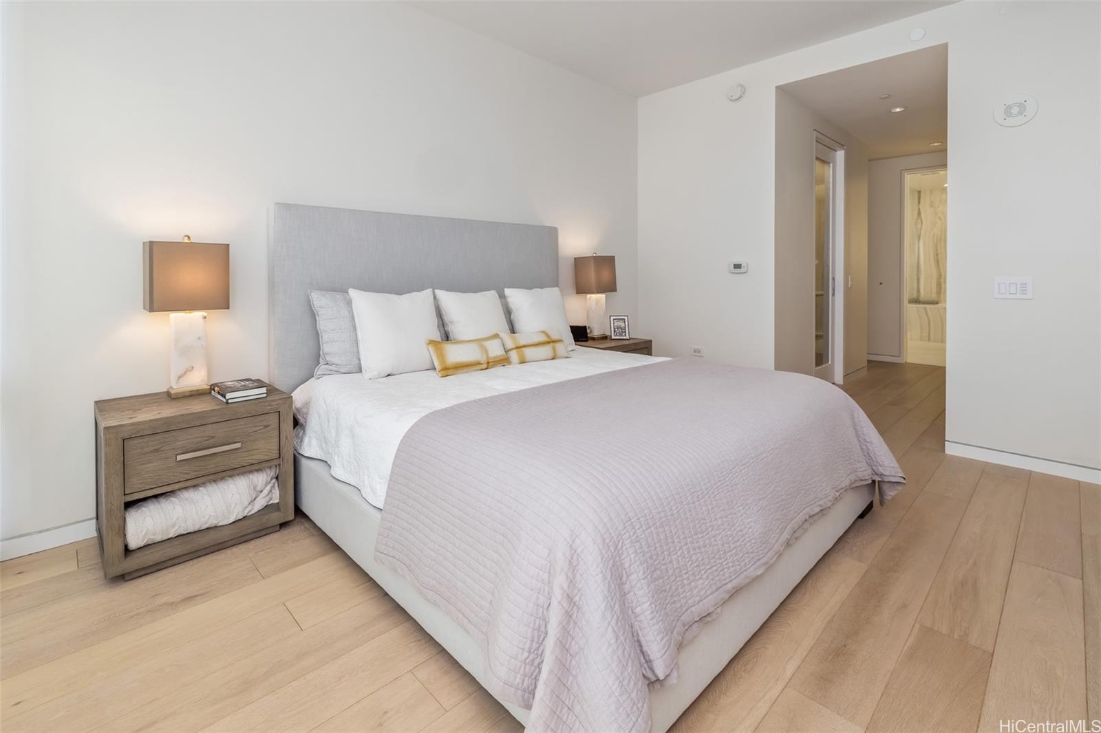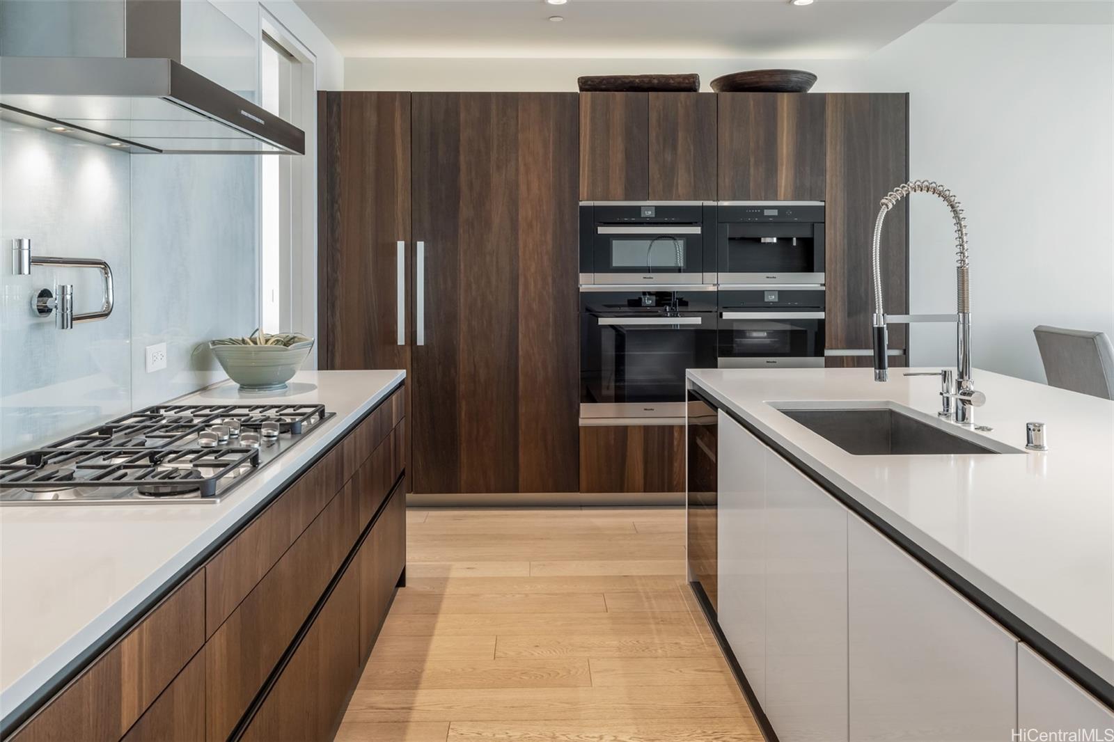 Embrace the luxury of urban island living that is Ward Village in Kakaako. This preferred 06 home in the sky faces the ocean, Diamond Head and the Waikiki Coastline. Private foyer entry, soaring 9’6” ceilings, custom European cabinetry, Miele appliances, beautifully appointed bathrooms feature a dramatic Onyx wall, hardwood and stone flooring throughout, motorized shades at every window – the luxury just never ends. Unparalleled amenities for discerning residents include guest suites for overnight friends, quiet lounges, and the Howard Hughes poolside bar. Separate storage room, 2 parking spaces in garage. Pets are welcome too. Listing by: Coldwell Banker Realty (808) 292-2800