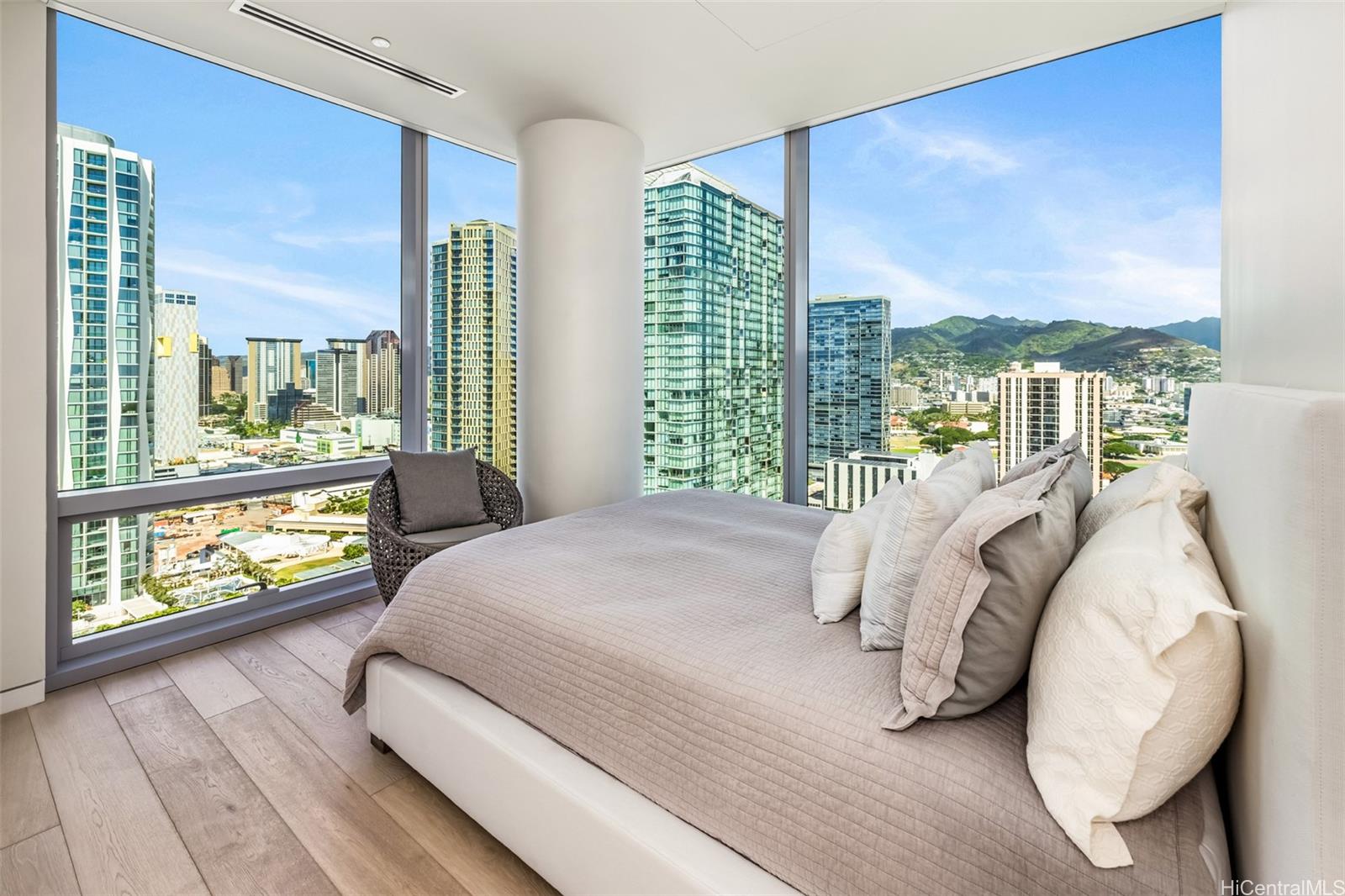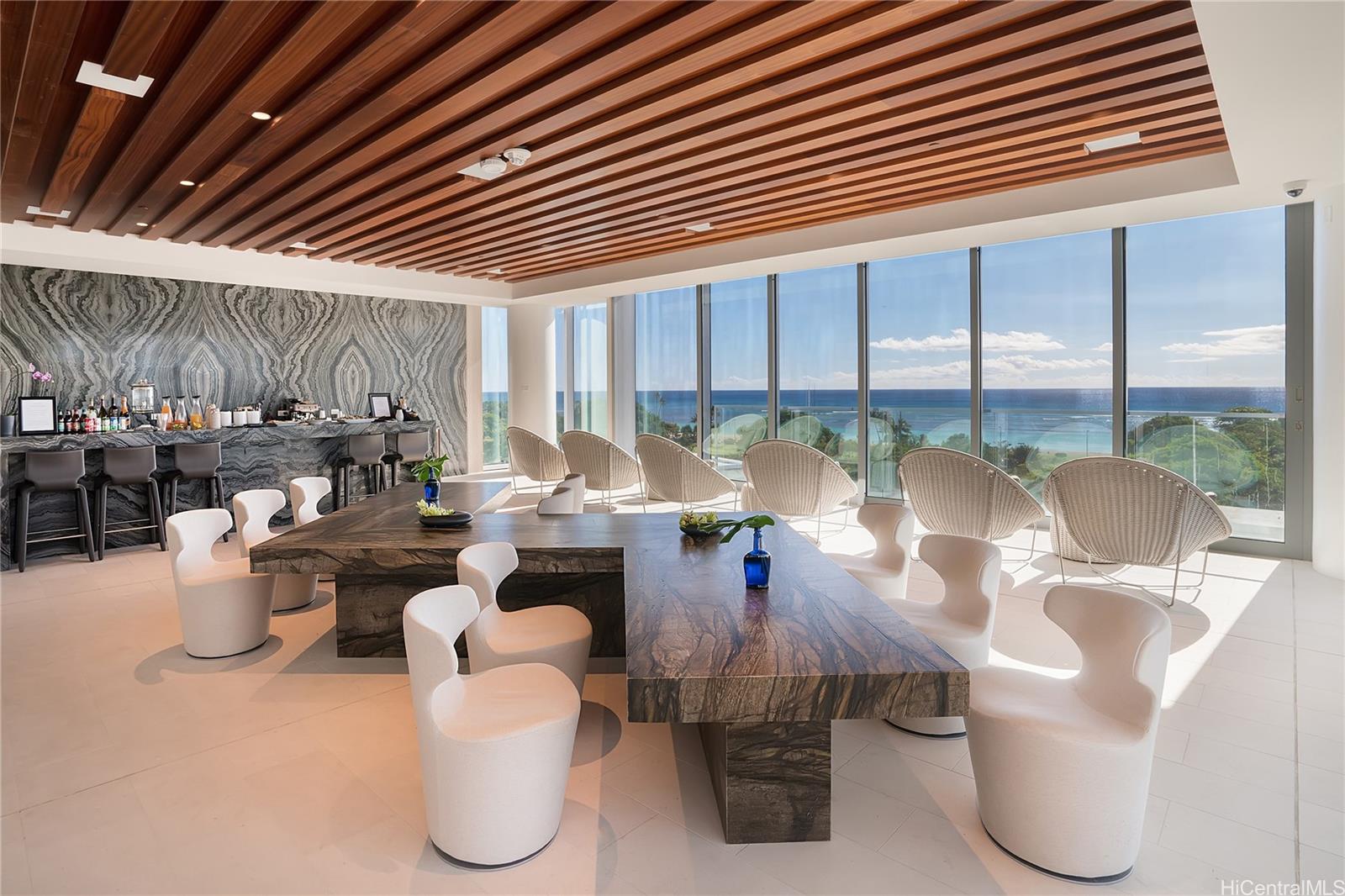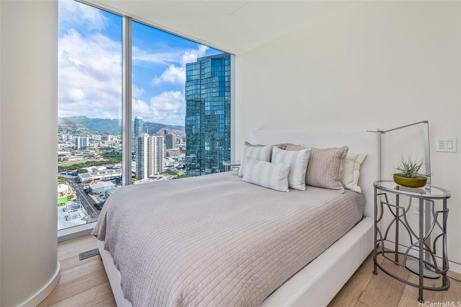 string(643) "Embrace the luxury of urban island living that is Ward Village in Kakaako. This preferred 06 home in the sky faces the ocean, Diamond Head and the Waikiki Coastline. Private foyer entry, soaring 9’6” ceilings, custom European cabinetry, Miele appliances, beautifully appointed bathrooms feature a dramatic Onyx wall, hardwood and stone flooring throughout, motorized shades at every window – the luxury just never ends. Unparalleled amenities for discerning residents include guest suites for overnight friends, quiet lounges, and the Howard Hughes poolside bar. Separate storage room, 2 parking spaces in garage. Pets are welcome too."