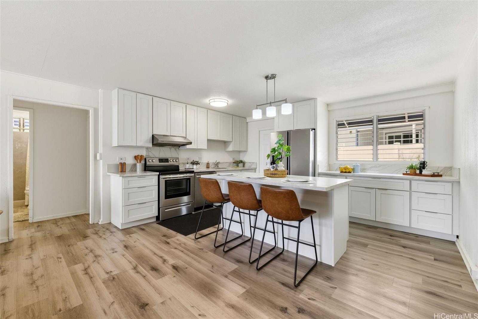 Welcome to this very well maintained single family home in the highly sought after neighborhood of Foster Village! Discover the perfect blend of comfort and convenience in this recently remodeled 4-bedroom, 2-bathroom property that offers tons of potential. The property features vaulted ceilings, vinyl flooring, updated kitchen, updated bathroom and plenty of room for additional updates! Situated on a level lot this home provides easy accessibility and a functional layout with plenty of parking in front of the property along with street parking. Located in the heart of Foster Village the property is in close proximity to shops, Target, salt lake shopping center, restaurants, parks and much more! Don't wait, schedule your showing today and experience what Foster Village living can offer you! Listing by: Five Star Realty, Inc. (808) 748-9656