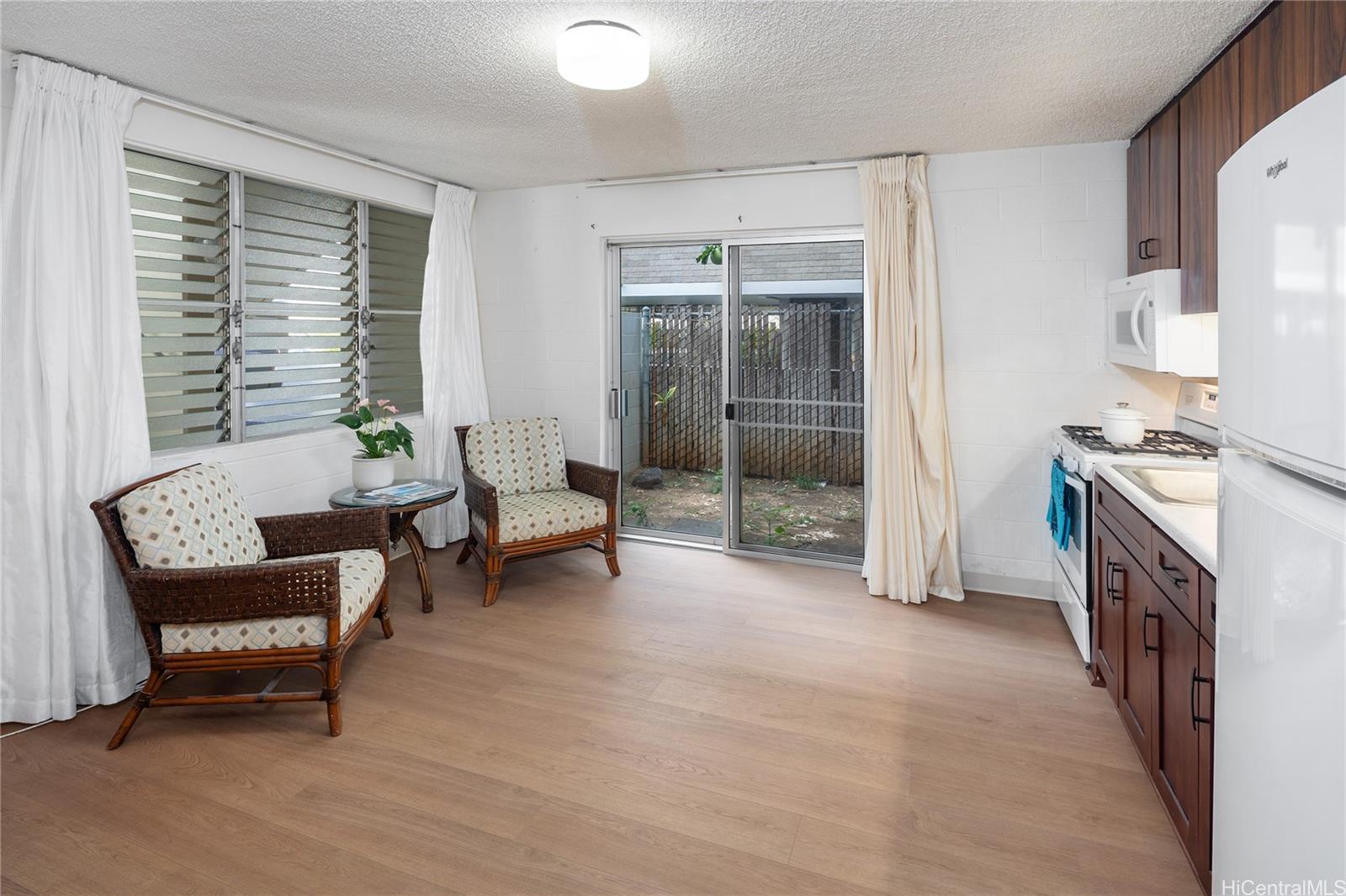 Conveniently located in Makiki, this 1-bedroom, 1-bathroom ground-floor unit offers 429 sq. ft. of interior living space, plus a large, gated, private outdoor area perfect for gardening, entertaining, or extending your indoor-outdoor lifestyle. Access to your private yard is available from either your living room sliding door or the primary bedroom. The functional layout includes a complete kitchen, washer/dryer, and easy ground-floor access. New vinyl floors and carpet have just been installed, along with a new water heater. The sale includes one covered parking stall. Located near Downtown, Ward, and Ala Moana, this property offers both convenience and comfort. An excellent opportunity for investors or first-time buyers. Listing by: Compass (808) 825-4277