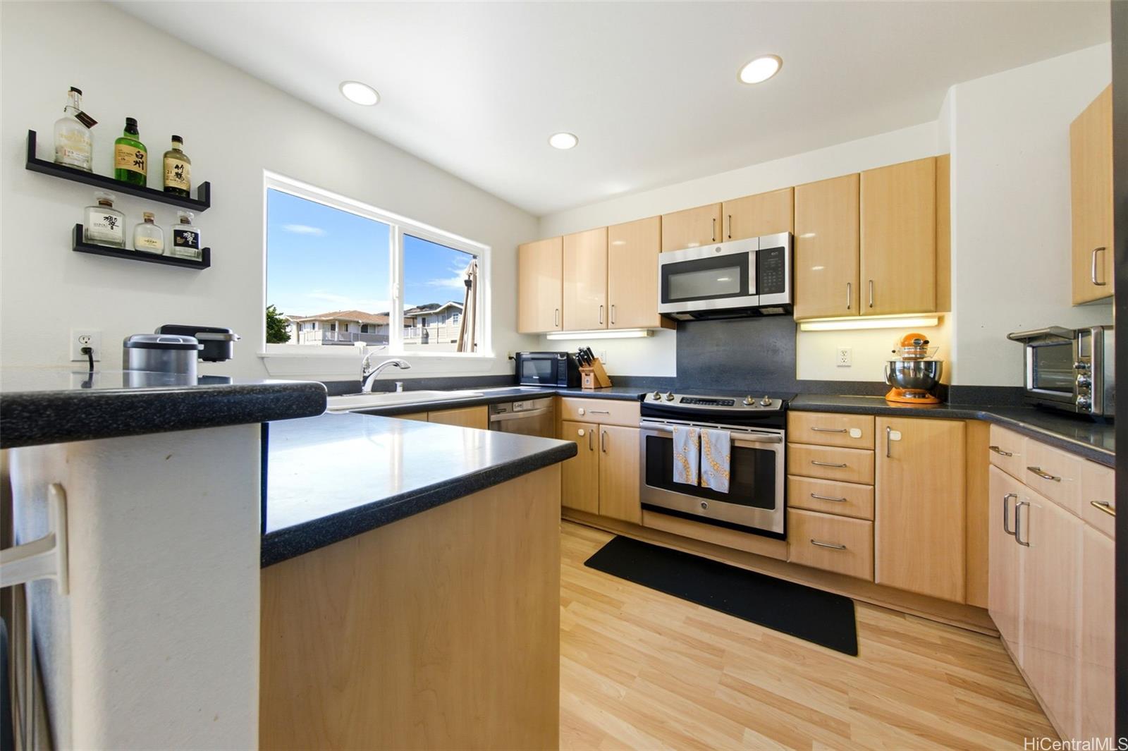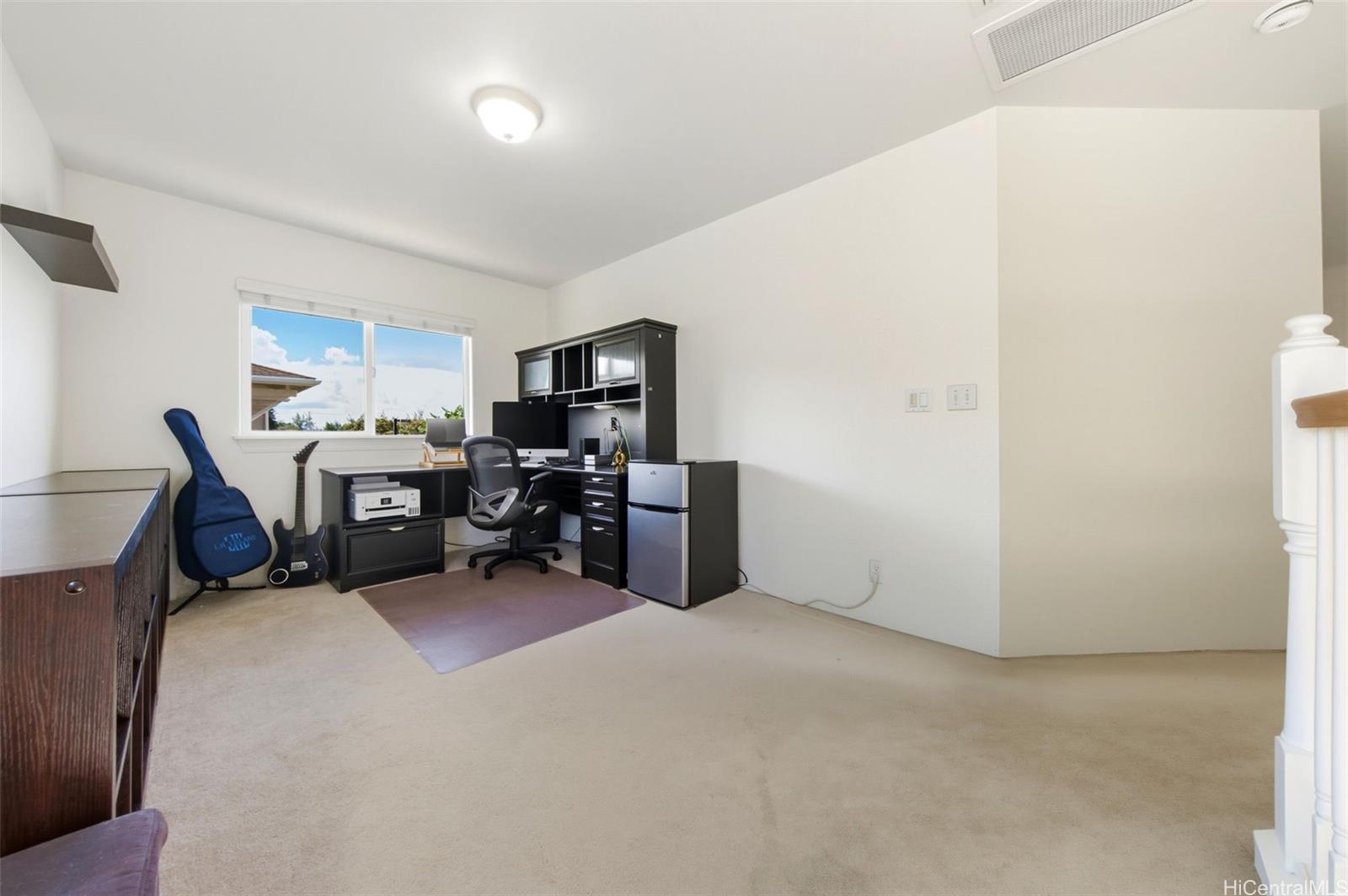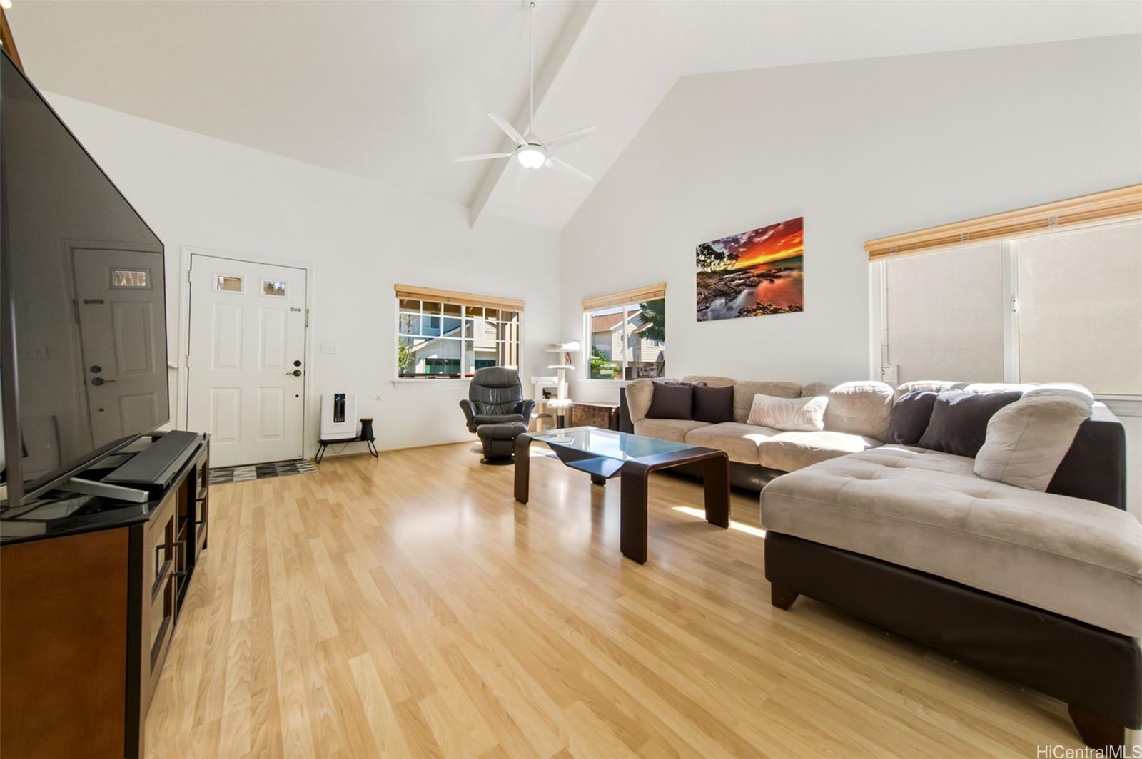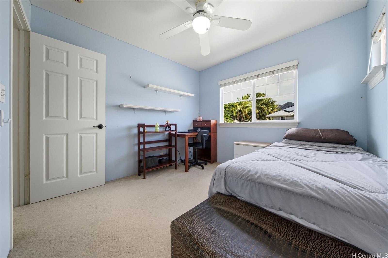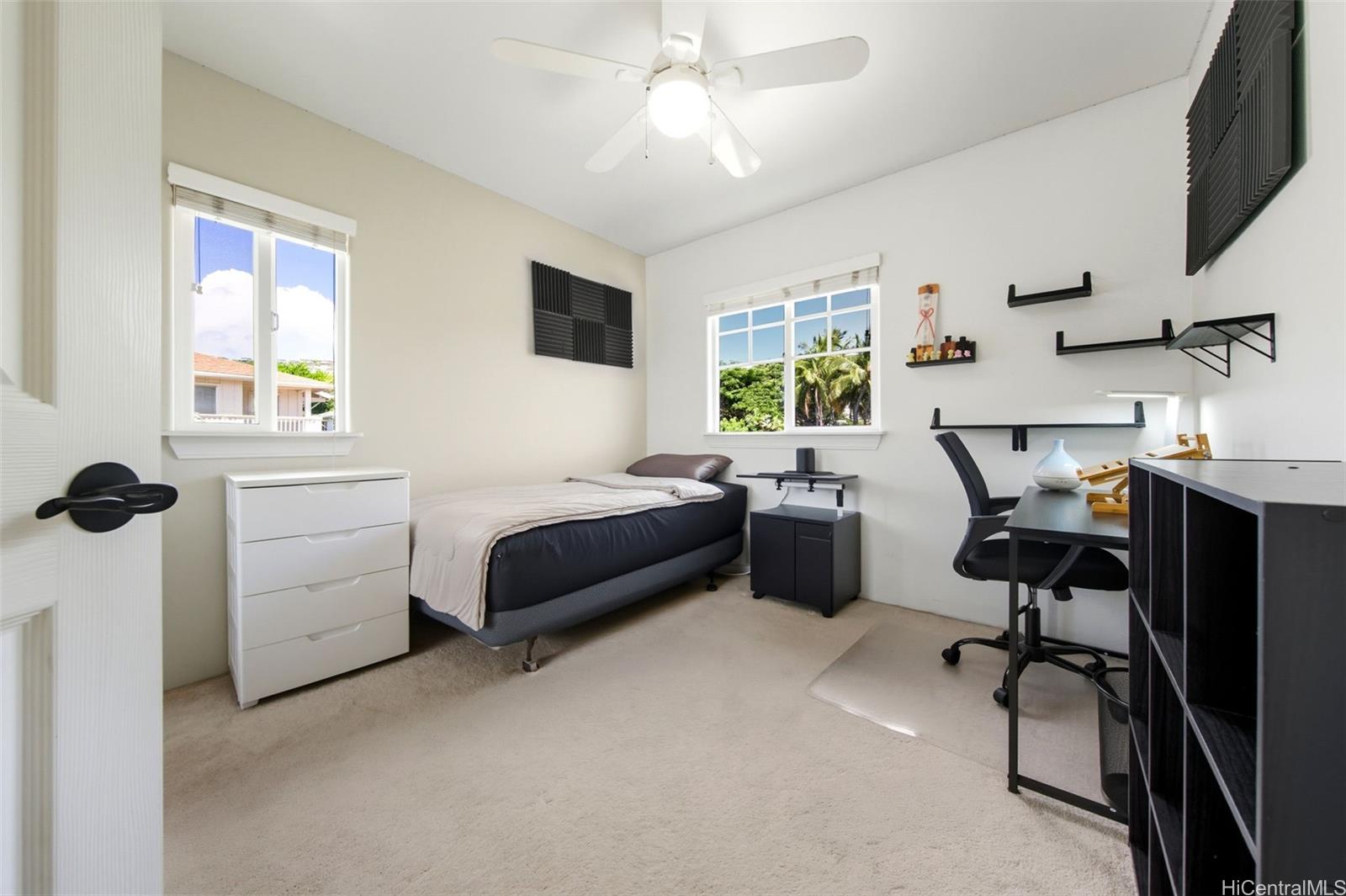 Rarely available single-family home in Kalamaku’u in Kalama Valley, Hawaii Kai. Great floor plan with living room, dining area, kitchen and half bath downstairs. Vaulted ceilings in living room. Three bedrooms and two full baths upstairs. Primary bedroom suite with walk-in closet, bathtub and shower and golf course views. Two car garage with driveway parking. Lots of natural light throughout. Central AC. Upstairs 4th bedroom option offers open multi-purpose living space currently used as home office with golf course views. Corner lot with fully fenced in yard with grass and mature citrus and pomegranate trees. Stone tiled lanai for outdoor living. Community park with playground nearby. Visitor parking available. Maintenance fee includes water, sewer, common area maintenance and Association master insurance policy. Needs a little TLC but ready for new owners. Listing by: Affinity Realty (808) 391-9874