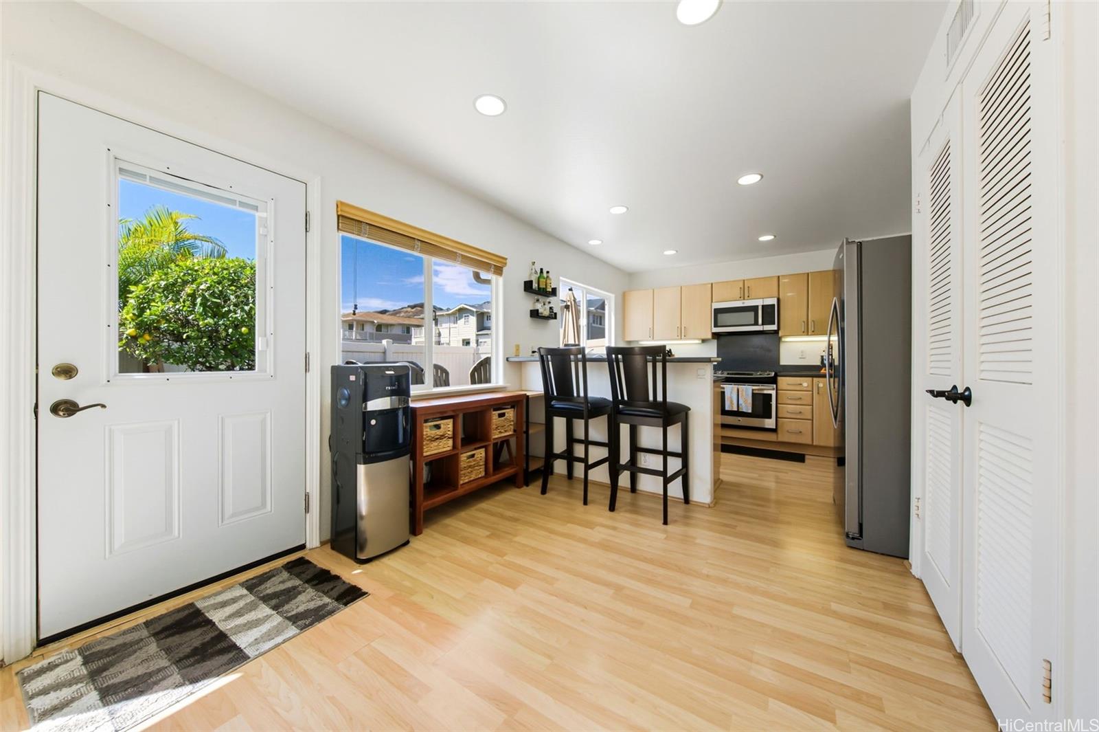 string(872) "Rarely available single-family home in Kalamaku’u in Kalama Valley, Hawaii Kai. Great floor plan with living room, dining area, kitchen and half bath downstairs. Vaulted ceilings in living room. Three bedrooms and two full baths upstairs. Primary bedroom suite with walk-in closet, bathtub and shower and golf course views. Two car garage with driveway parking. Lots of natural light throughout. Central AC. Upstairs 4th bedroom option offers open multi-purpose living space currently used as home office with golf course views. Corner lot with fully fenced in yard with grass and mature citrus and pomegranate trees. Stone tiled lanai for outdoor living. Community park with playground nearby. Visitor parking available. Maintenance fee includes water, sewer, common area maintenance and Association master insurance policy. Needs a little TLC but ready for new owners."