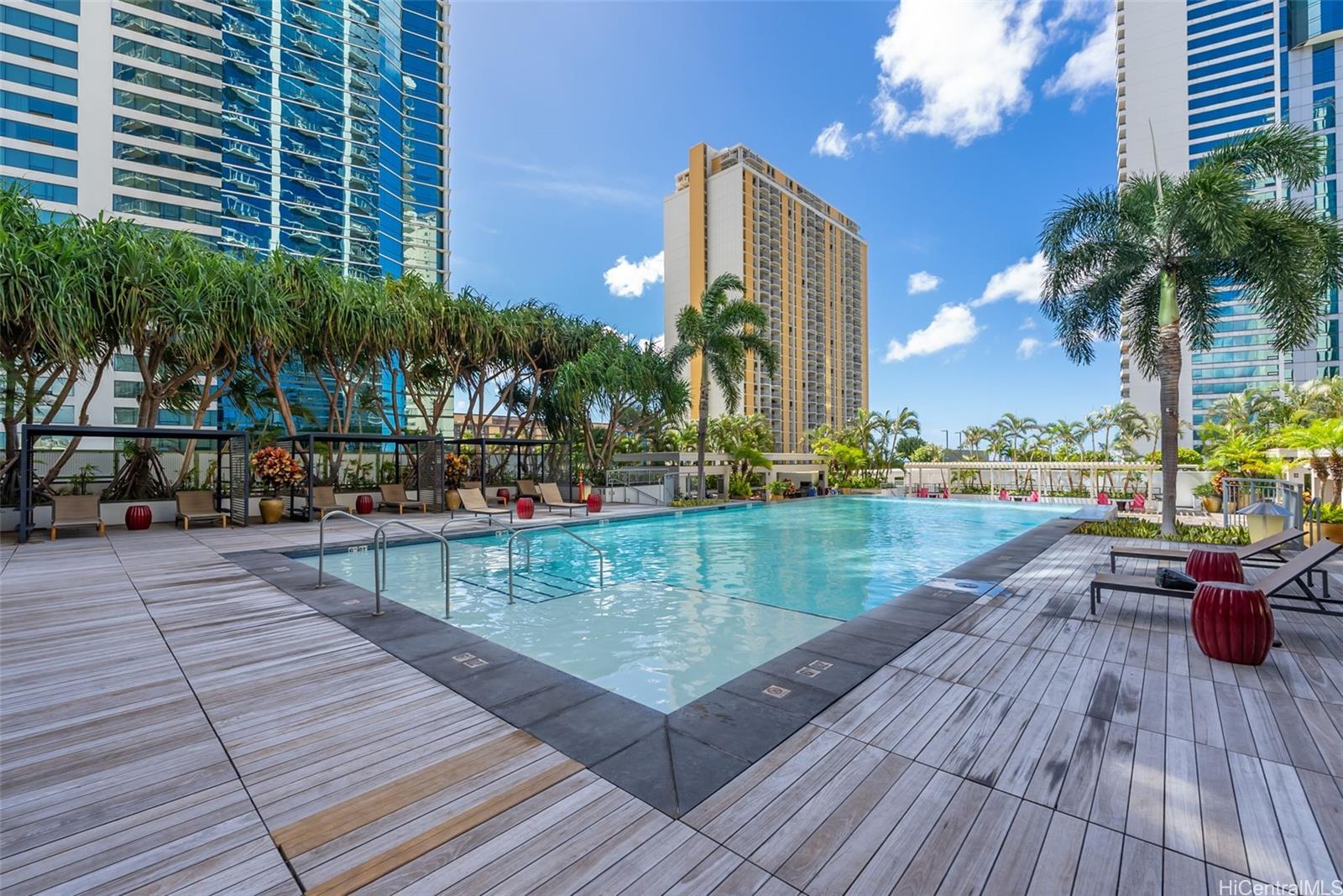Welcome to Waihonua #2409! Ideally situated between Ala Moana and Ward Village, this residence offers the perfect blend of luxury and convenience at an attractive price. The spacious floor plan showcases ceiling to floor windows offering breathtaking city and mountain views. Unit features include: central a/c, engineered wood flooring, granite countertops, stainless steel appliances, & TWO prime covered parking stalls along with an overhead storage. Resort like amenities include: 24 hour security, guest parking, infinity pool, jacuzzi, fitness center, theater room, guest suites, and PET FRIENDLY as well. Listing by: Ota Realty Consultants, LLC (808) 554-8246