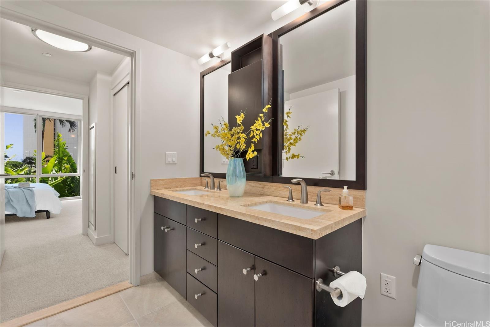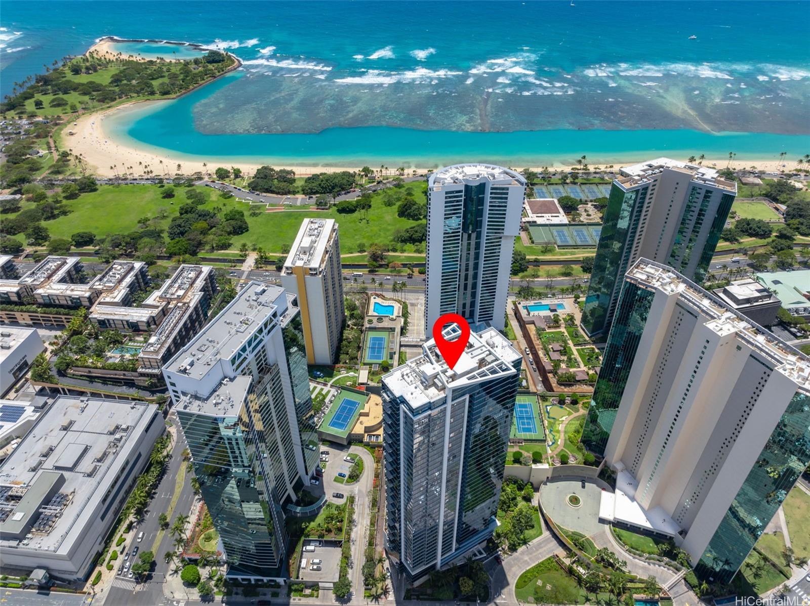 [0] => Discover island-style living in this pristine 2-bedroom, 2-bath residence at Waihonua #704 - complete with two parking stalls and a storage locker. Lightly used as a vacation home, the 1,042 sq ft interior and 64 sq ft lanai are ready for effortless move-in. East-facing floor-to-ceiling windows frame treetop ocean view and fill the home with gentle morning light. The well-designed layout places bedrooms on opposite sides of the living room for enhanced privacy while privacy windows softly diffuse daylight. Hardwood flooring spans the living room, kitchen, and foyer. The kitchen is a chef's delight with granite countertops, custom cabinetry, and Bosch appliances; bathrooms offer stone counters and porcelain tile. The primary bedroom includes both a walk-in closet and an additional closet, and the main bath features a soaking tub for immersive, spa-like relaxation. Resort-style amenities abound, infinity-edge pool, fitness center, private theater, club room, BBQ pavilions, guest suites, EV charging stations, dog park, and more. Enjoy immediate walking access to Ala Moana Shopping Center, Ala Moana Beach Park, and a variety of dining destinations.