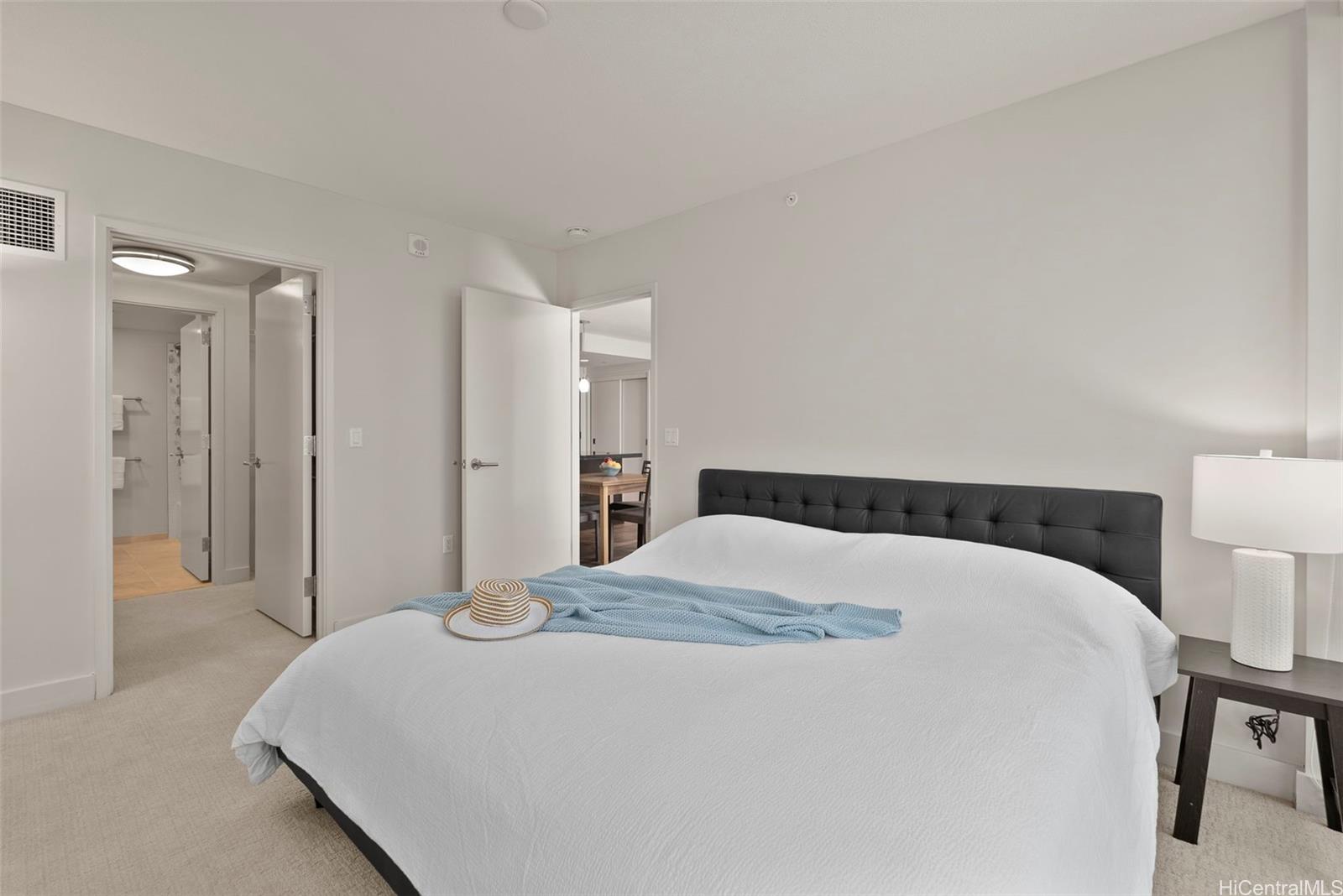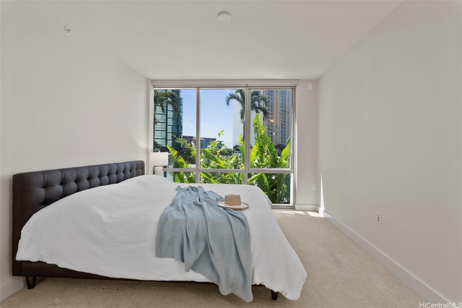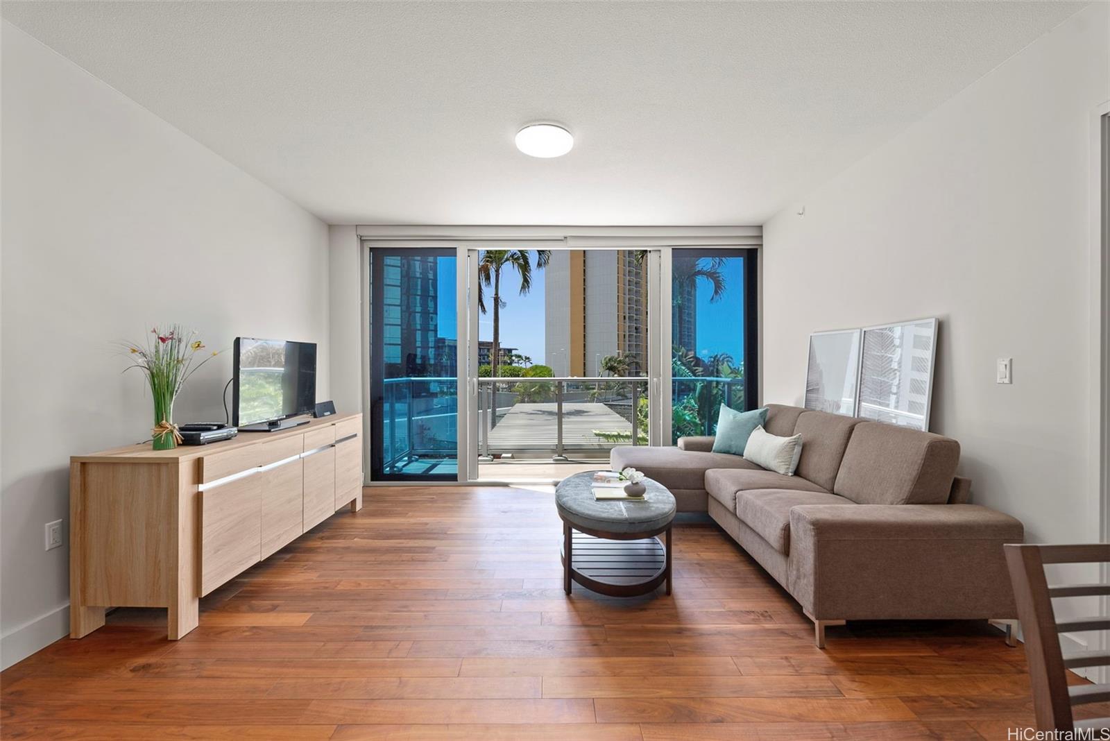 string(1162) "Discover island-style living in this pristine 2-bedroom, 2-bath residence at Waihonua #704 - complete with two parking stalls and a storage locker. Lightly used as a vacation home, the 1,042 sq ft interior and 64 sq ft lanai are ready for effortless move-in. East-facing floor-to-ceiling windows frame treetop ocean view and fill the home with gentle morning light. The well-designed layout places bedrooms on opposite sides of the living room for enhanced privacy while privacy windows softly diffuse daylight. Hardwood flooring spans the living room, kitchen, and foyer. The kitchen is a chef's delight with granite countertops, custom cabinetry, and Bosch appliances; bathrooms offer stone counters and porcelain tile. The primary bedroom includes both a walk-in closet and an additional closet, and the main bath features a soaking tub for immersive, spa-like relaxation. Resort-style amenities abound, infinity-edge pool, fitness center, private theater, club room, BBQ pavilions, guest suites, EV charging stations, dog park, and more. Enjoy immediate walking access to Ala Moana Shopping Center, Ala Moana Beach Park, and a variety of dining destinations."