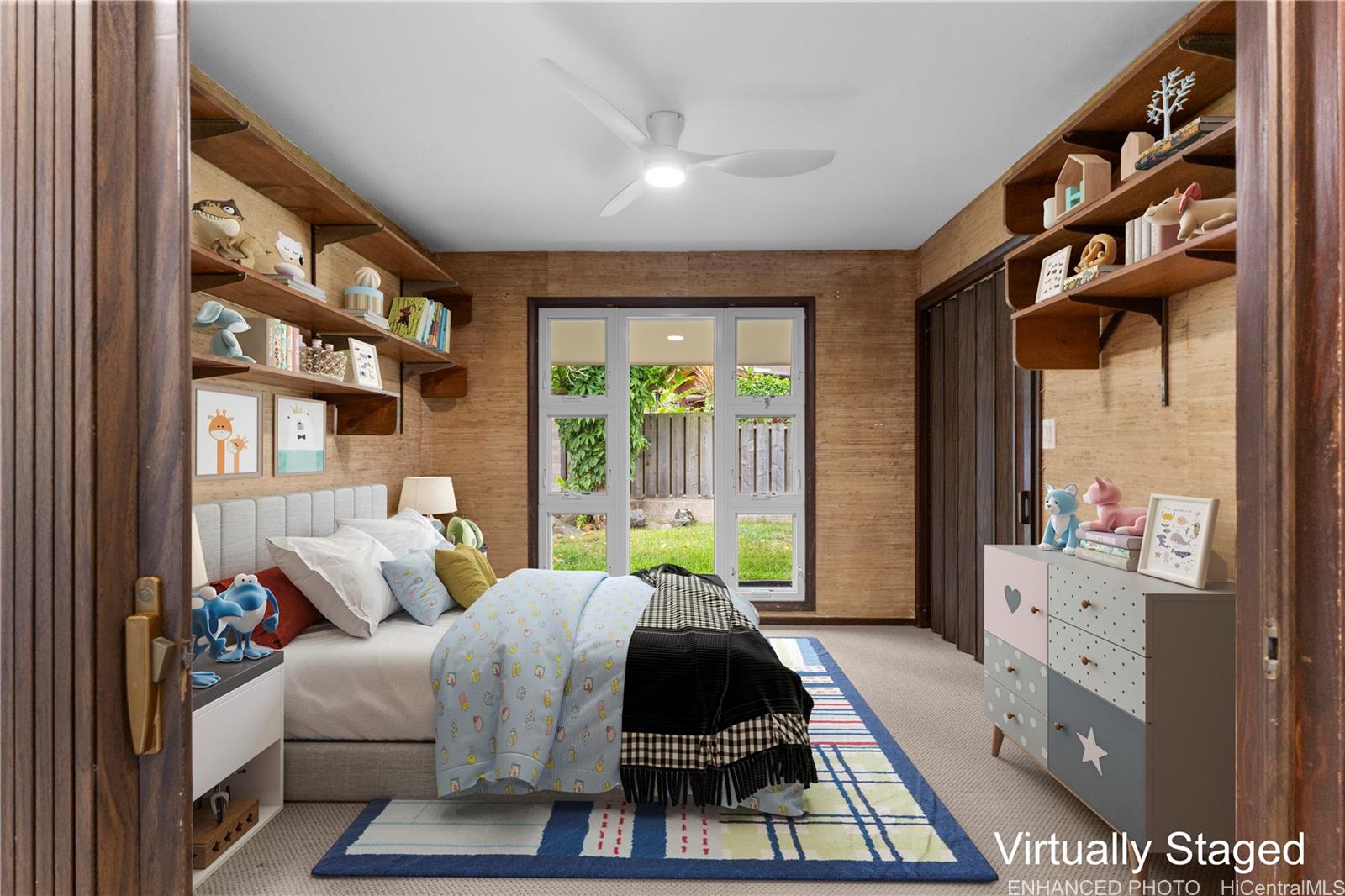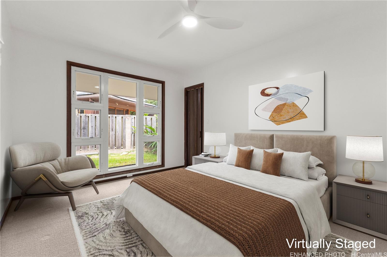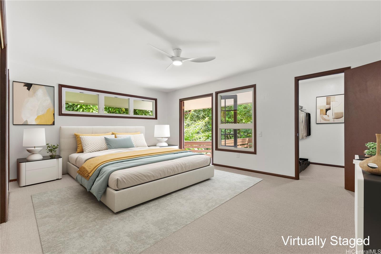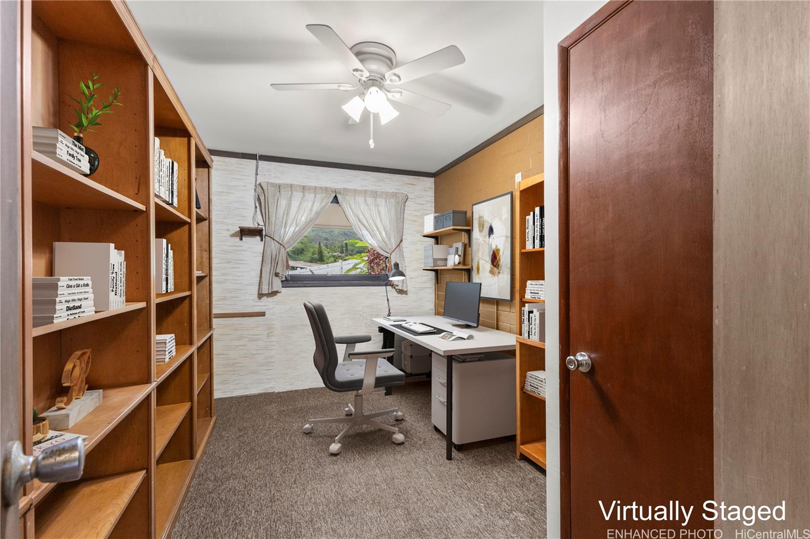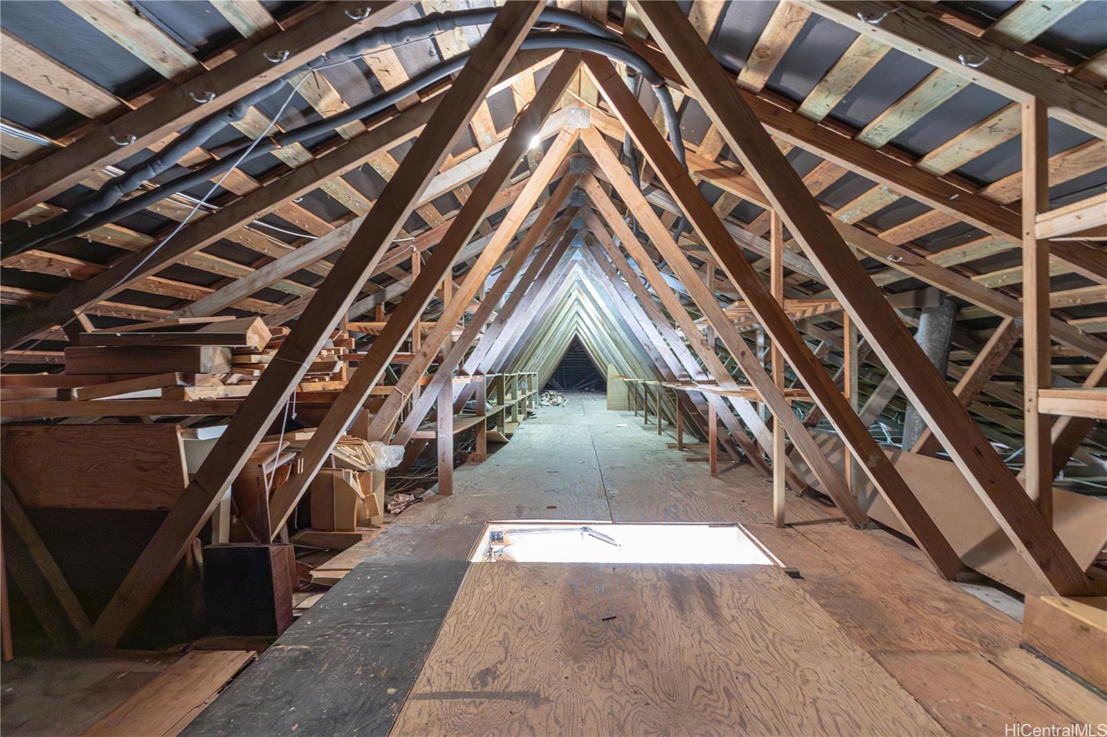Inside, natural light filters through the home, adding warmth to the living spaces. A pull-down ladder in the garage leads to a spacious attic, providing an uncommon amount of storage for a Hawai‘i property. The residence also includes a two-car carport, additional driveway parking, ample attic space and rooftop solar panels dedicated to heating the pool.