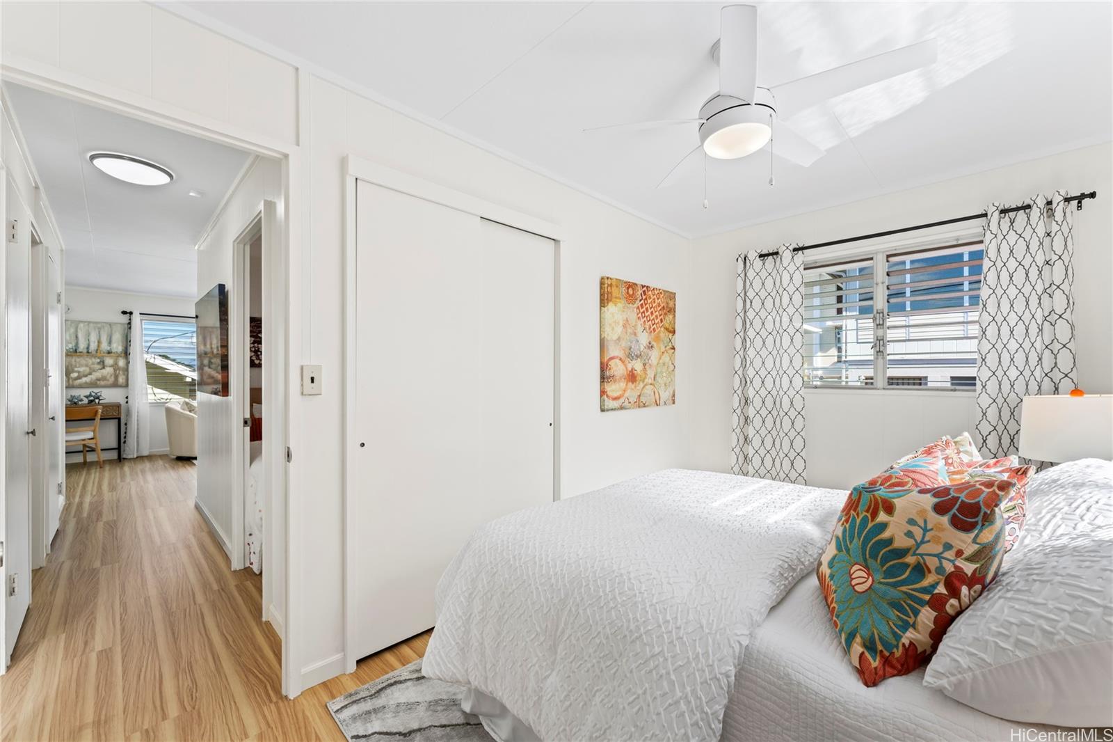 string(620) "Just a few minutes from downtown Honolulu, this refreshed 3-bedroom, 1-bath home blends comfort, style, and urban convenience. Thoughtfully renovated, it features fresh paint throughout, modern vinyl flooring, an updated kitchen and bathroom, and new appliances—including a stove/oven, water heater, and dryer. Ceiling fans in every bedroom enhance cool, relaxed island living. Enjoy the freedom of owning a private single-family home without HOA fees, nestled behind hedges and framed by mature mountain apple and star fruit trees. A peaceful retreat for your Ohana, close to the heart of Honolulu. Ready to move in,"