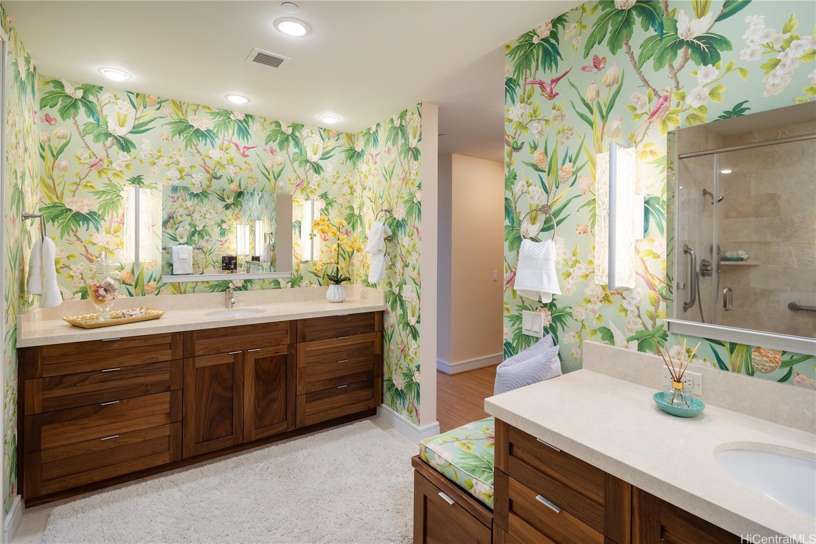 The Hokua at 1288 Ala Moana is one of Honolulu’s finest luxury residences. Experience stunning, unobstructed ocean and coastline views from this tastefully upgraded end unit with 3 parking stalls. This spacious, light and bright “B” unit offers high floor-to-ceiling windows, a nicely upgraded kitchen leading to an open living area with delightful design elements such as grass cloth wallpaper, art lighting, electric blinds and built-ins. The large primary bedroom has a generous walk-in closet plus a luxurious bathroom suite with a custom walk-in shower and vanities. The unit boasts three parking spaces (a single stall and 2 tandem stalls) and storage locker all on parking level 2, located near the elevators. The amenities at Hokua are second to none, featuring resort-style indoor and outdoor amenities, including a fitness center, heated swimming pool, BBQ areas, tennis court/pickleball courts, dog park, playground, guest suites, 24/7 security, and so much more. All conveniently located just one block away from Ala Moana Shopping Center, Ward Villages, restaurants, theaters, shops, the boat harbor and directly across from the world-famous Ala Moana Beach Park. Listing by: Berkshire Hathaway HmSvc HI RE (808) 341-1000