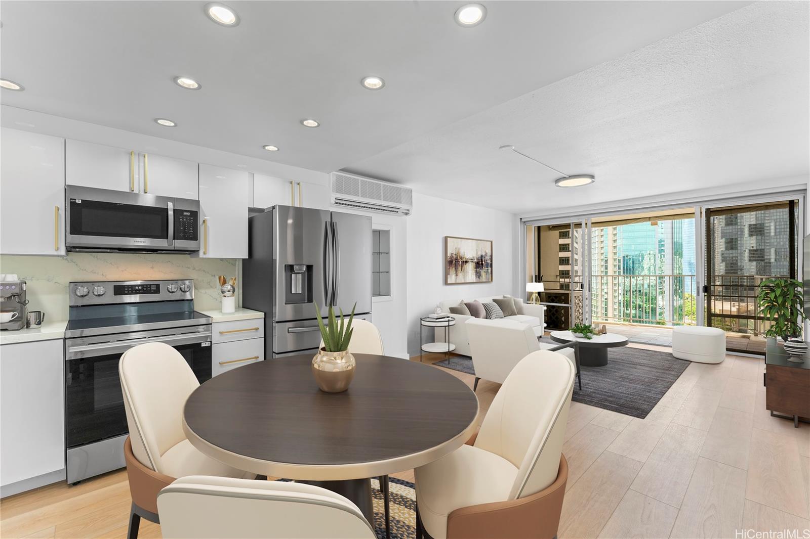 Extensively renovated 2BR/2BA corner-end residence featuring an open and efficient floor plan with recessed lighting, luxury vinyl plank flooring, plantation shutters, and a beautifully designed kitchen. Positioned on a mid-level floor with lovely ocean, Ala Moana Beach Park, and city light views. 1350 Ala Moana is a premier, VA-approved building, and has recently completed significant common-area improvements. Amenities include a fitness room, pool, spa, BBQ pavilions, party room, and lush tropical landscaping within a secure, well-maintained setting. Unbeatable convenience with direct access to Ala Moana Shopping Center, Ala Moana Beach Park, Waikiki, Kaka'ako dining, groceries, nightlife, bus lines, and the vibrant urban lifestyle of the Ala Moana/Kaka'ako corridor. (Some photos have been virtually staged/enhanced). Listing by: Hawaii Living LLC (808) 343-5000