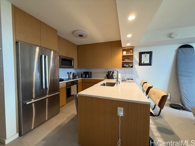 Sky Ala Moana West in the heart of Ala Moana neighborhood, located directly across the street from Ala Moana Center. One bedroom unit has a contemporary interior finish and ocean views. Kitchen featuring white countertops, plenty of cabinets and top-of-the line Bosch appliances. Also, nearby is Ala Moana shopping center, restaurants, and more. Sky Terrace amenity deck with full access to all the resort-like amenities - includes 2 pools, BBQ areas, Kids' playground, Dog Run, private rooms, cabanas, fitness center, pool, your spa .....and more. Listing by: Green Tree Realty (808) 778-5124