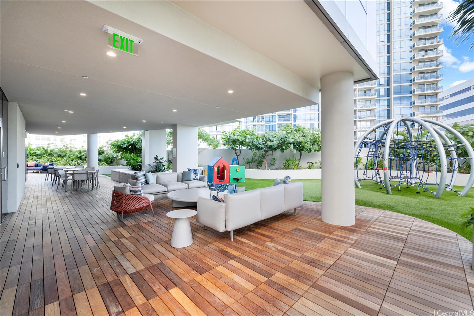 Perfectly situated just steps from Ala Moana Shopping Center, premier dining, grocery stores, and the beach park, this contemporary home offers unmatched convenience and comfort.  Resort-style amenities abound unwind in two spas and saunas, relax by the poolside cabanas, host gatherings in private dining rooms and BBQ pavilions, or stay active in the large fitness center, outdoor workout area, and dog park. Families will love the playground and lush open spaces designed for modern island life.