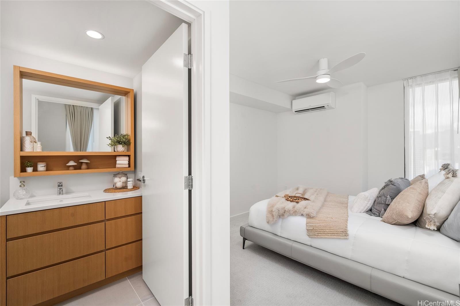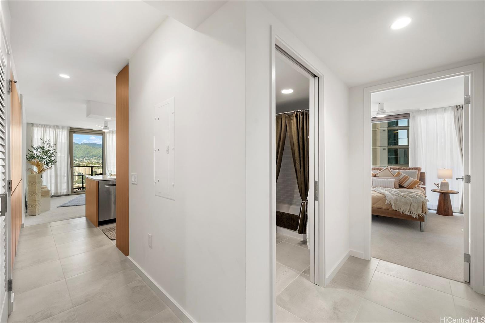 Experience elevated urban living at Sky Ala Moana West, one of Honolulu’s newest and most sought-after high-rises. This 33rd-floor corner residence features 2 bedrooms and 2 baths, showcasing sweeping city views from the living area and lanai, complemented by tranquil ocean vistas from both bedrooms. Ideally situated near Ala Moana Center, Kakaako, and Waikiki, with convenient access to hospitals and freeways. The home is thoughtfully designed with sleek modern finishes and premium stainless steel Bosch appliances. Residents enjoy an exceptional suite of resort-style amenities, including a fitness center, sauna, pool, BBQ areas, recreation spaces, dog park, and more. Discover a sophisticated island lifestyle in the heart of Honolulu. Listing by: Engel & Volkers Honolulu (808) 220-4604
