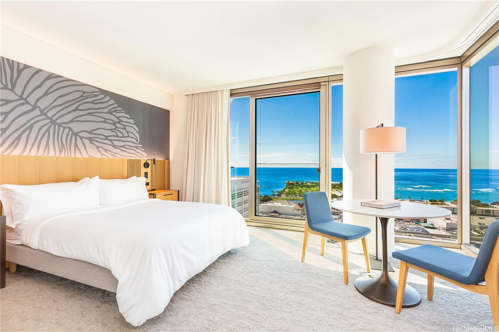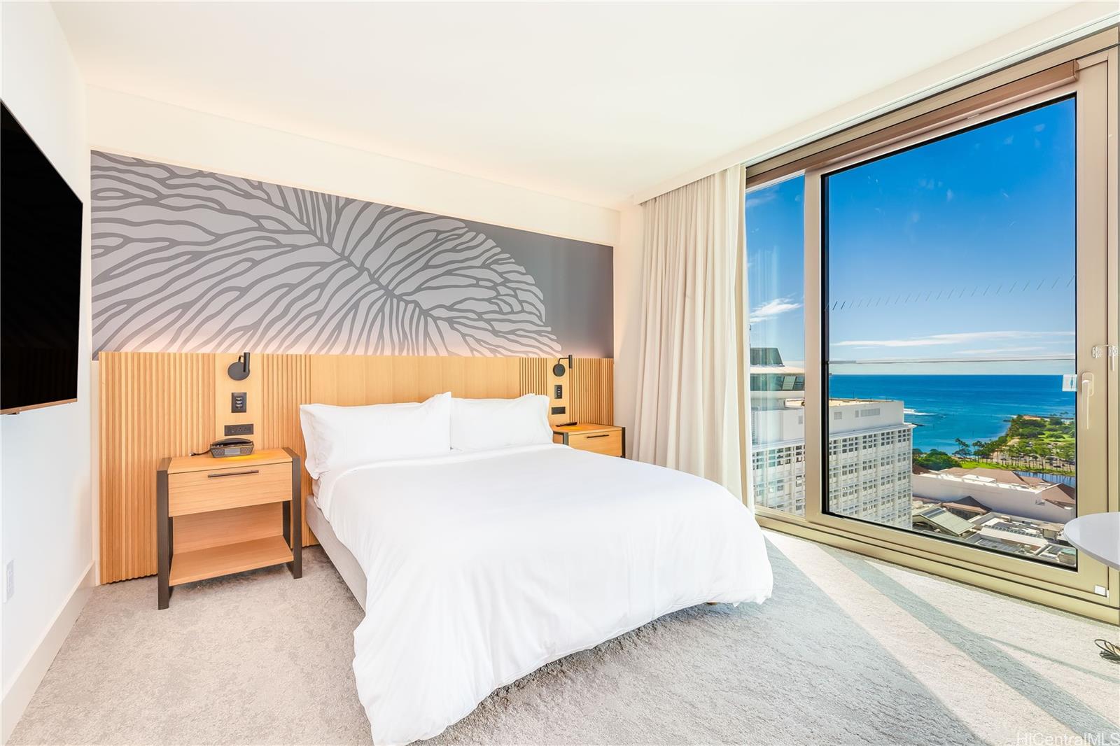 A desired corner unit with ocean view at new hotel condominium, Renaissance Residences Honolulu, completed in December 2023. This studio is the corner end unit on ocean side and captures Magic Island right in front of the unit. Perfect for investors and part-time owner as the unit is fully furnished and ready for the hotel rental. The unit owners can enjoy gorgeous hotel amenities including but not limited to spa, heated pool, lap pool, fitness center, playground, event room and dog park. Mediterranean restaurant, coffee shop and convenience store are slated to open on the ground floor. World famous Ala Moana Center right across the street and Ala Moana Beach within walking distance. Locating in between Waikiki and rapidly developing Kakaako, a life with full of excitement will await for you. Listing by: Crossover Realty Hawaii LLC (808) 200-7392