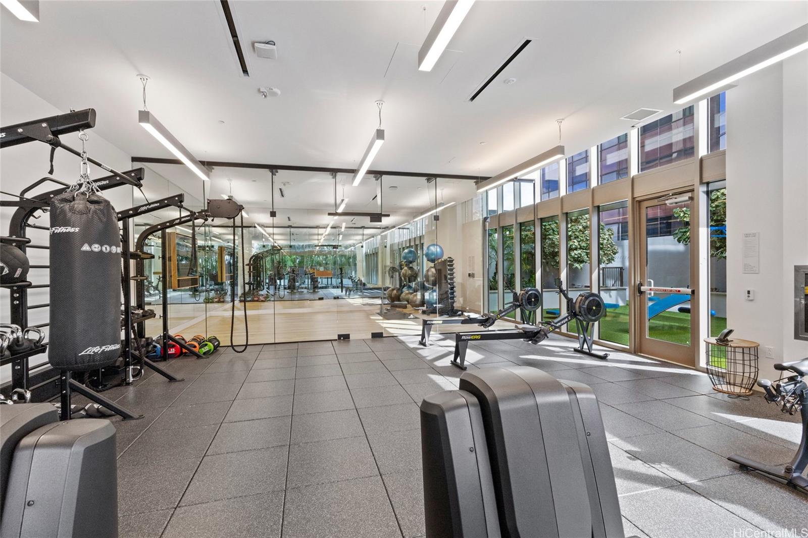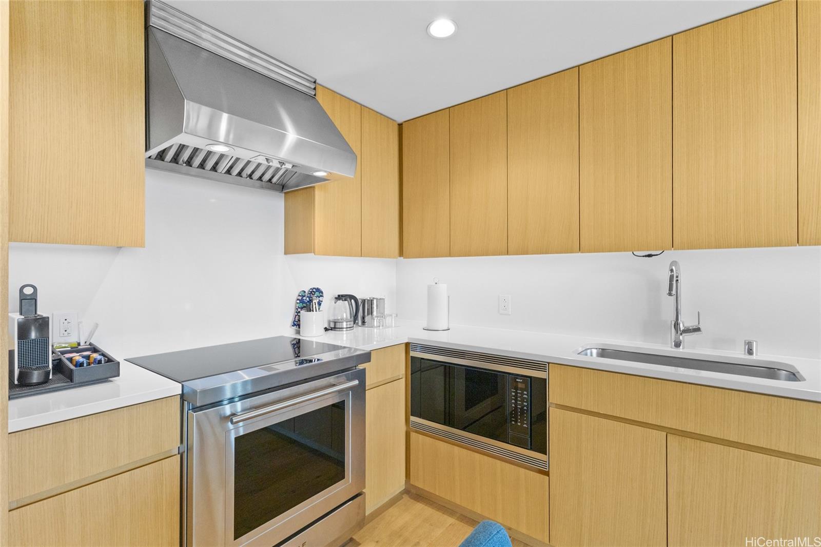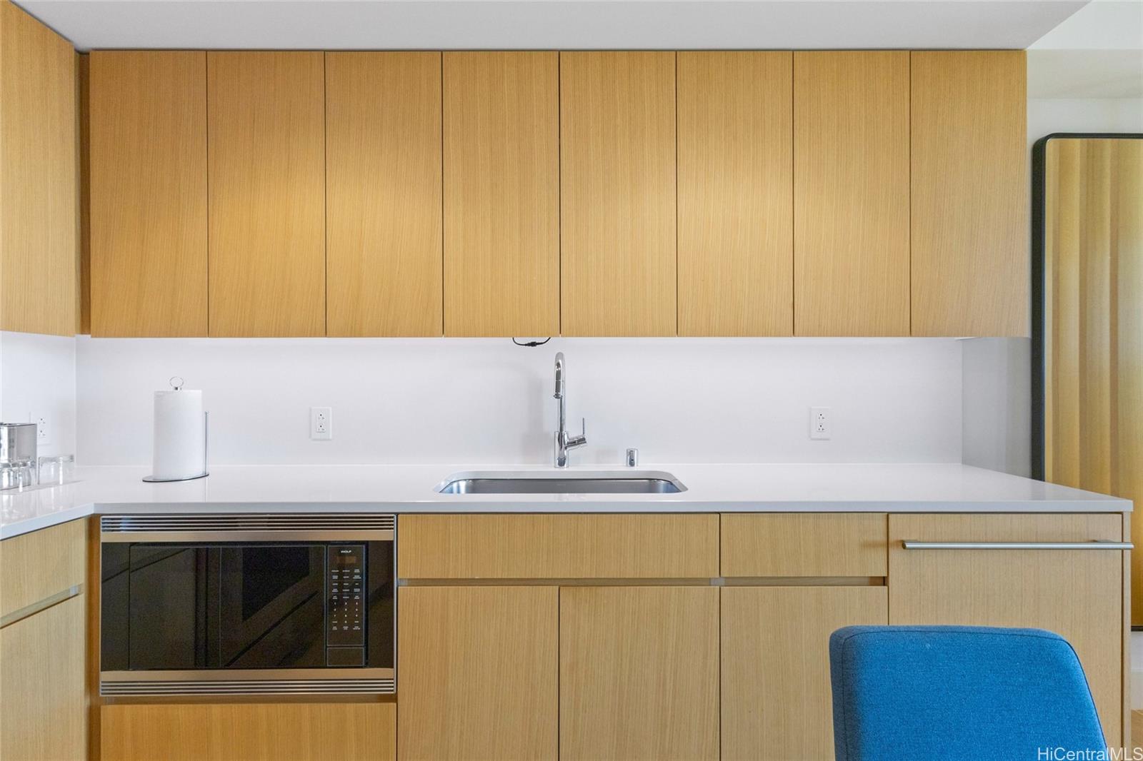 The building provides a full-service hotel experience with lobby check-in, valet, an on-site café and restaurant, plus an expansive amenity deck featuring multiple pools, a hot tub, cabanas, a state-of-the-art gym, and a full-service bar. Located directly across from Ala Moana Center and moments from dining, shopping, Don Quijote, Walmart, and an indoor golf facility, this is a refined alternative to the bustle of Waikiki. A stylish, flexible, and highly desirable residence in one of Honolulu’s most exciting new luxury offerings."