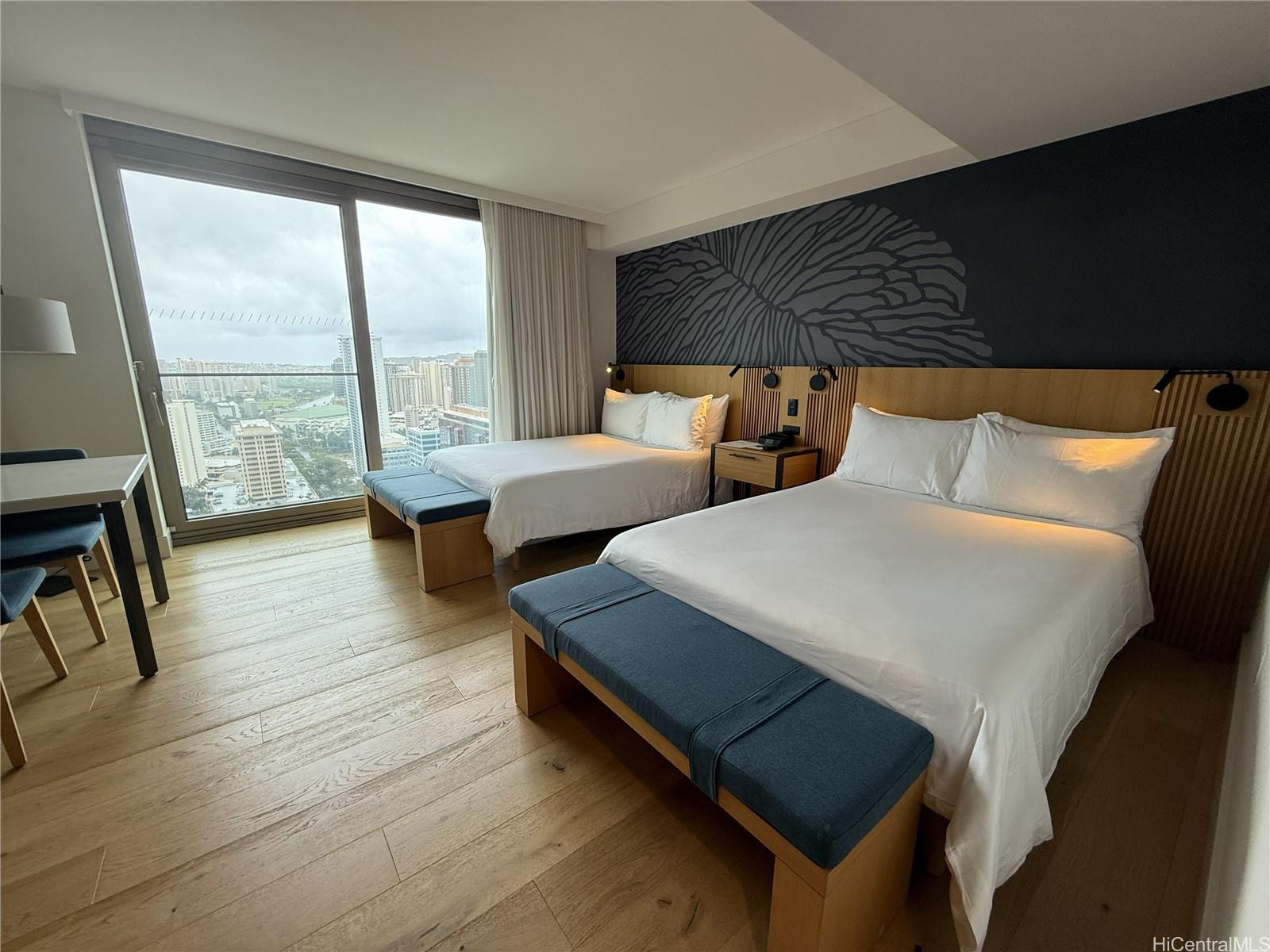 High-floor luxury studio at Sky Ala Moana East offering stunning panoramic views of Diamond Head, ocean, city, and mountains. This 388 sqft fully furnished residence features modern finishes and ADA-compliant design elements for enhanced accessibility and convenience. Ideal for investors or part-time owners, the unit offers flexible usage options including personal residence, hotel rental program participation, or both. Located in the heart of Ala Moana near shopping, beaches, dining, and entertainment. Enjoy resort-style amenities including pools, fitness center, spa, valet service, and on-site dining. A rare opportunity to own in one of Honolulu’s newest luxury condotel residences. Listing by: Lei Hawaii Realty Inc. (808) 546-9212