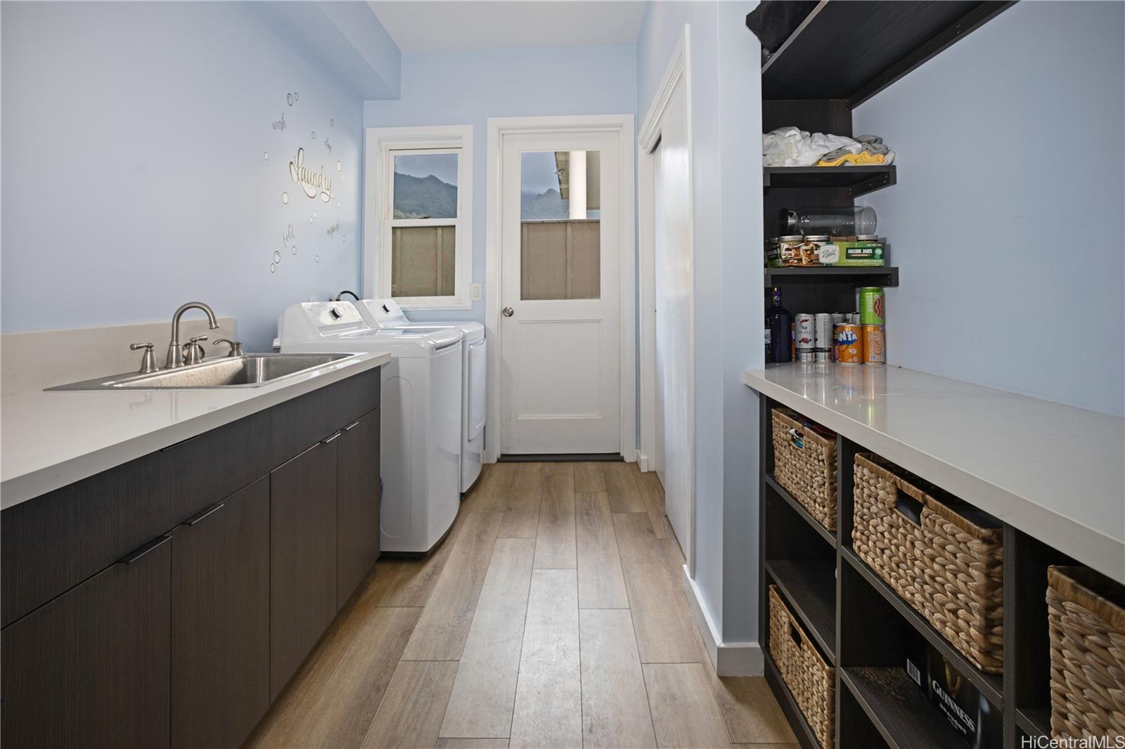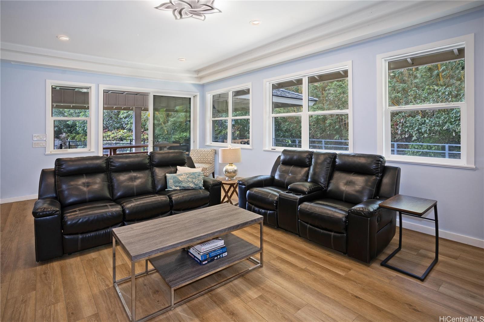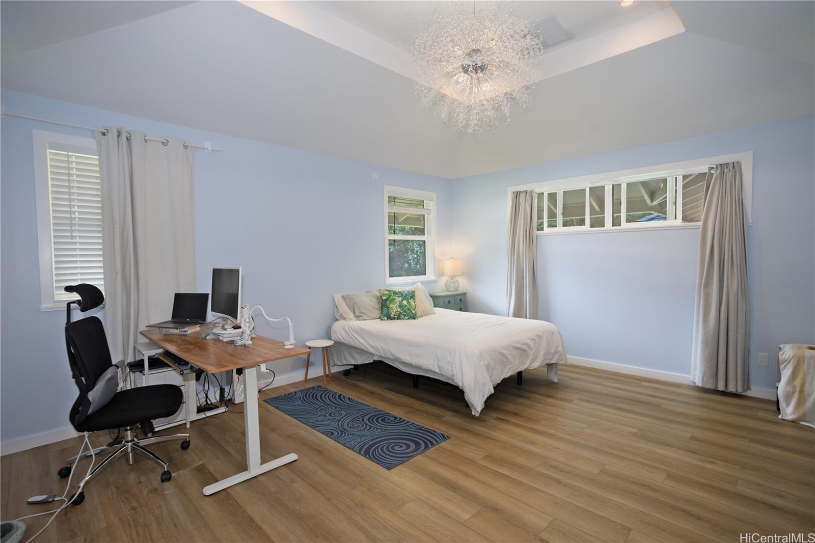 Get ready for Old Pali living in the modern era! Feast your eyes on this 2022 remodel on a massive 20,000+ square-foot lot gated for privacy. The main home features 4 bedrooms, 4.5 bathrooms, and offers luxury living. Each bedroom has its own en suite bathroom, walk in closet and all but one are on the main floor, which features luxury vinyl plank flooring. Gourmets will adore the expansive kitchen featuring an 8-burner gas stove, Viking appliances and an island for extra prep space. There's also an adjacent bonus pantry space off the laundry/mud room. This home is perfect for entertaining as there's tons of parking, a great room, a sunken living area with a fireplace and a gigantic outdoor covered lanai. Enjoy indoor outdoor living in Nuuanu with ample yard space. Although it's typically cooler, you can also close everything up and run the split AC and dehumidifiers were cleverly built into the remodel. The property also contains a separate 2-bedroom, 1-bathroom cottage, perfect for visitors or multi-generational living. With its fenced yard, this home is a perfect sanctuary for your furry friends. Must see to appreciate and shown to qualified buyers upon request. Listing by: Harcourts Island Real Estate (808) 371-3509