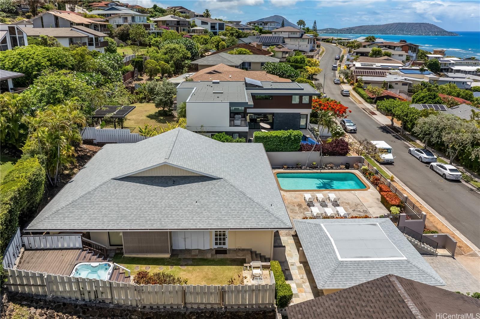 Welcome to Paradise in prime lower ridge location - Indoor-Outdoor Living with Ocean Views Step into island living at its finest. This elevated single-level home offers privacy from the street and opens to a beautifully designed layout where indoor comfort meets outdoor serenity. Spacious covered terrace expands your living space w/sea breezes and ocean views, perfect for dining or simply unwinding. Enjoy your own personal retreat with a sparkling pool, spa (replaced in 2021) and a private side yard — ideal for entertaining or relaxing. A rebuilt deck above the spa invites you to take in ocean vistas in peace. The thoughtfully designed floor plan features a central kitchen that offers formal dining or informal flow to a den/family room with a wet bar, wine cooler, and direct access to the pool, spa, and outdoor shower — a seamless environment for everyday living or hosting guests. (No mandatory community association fees). Listing by: Coldwell Banker Realty (808) 738-3904