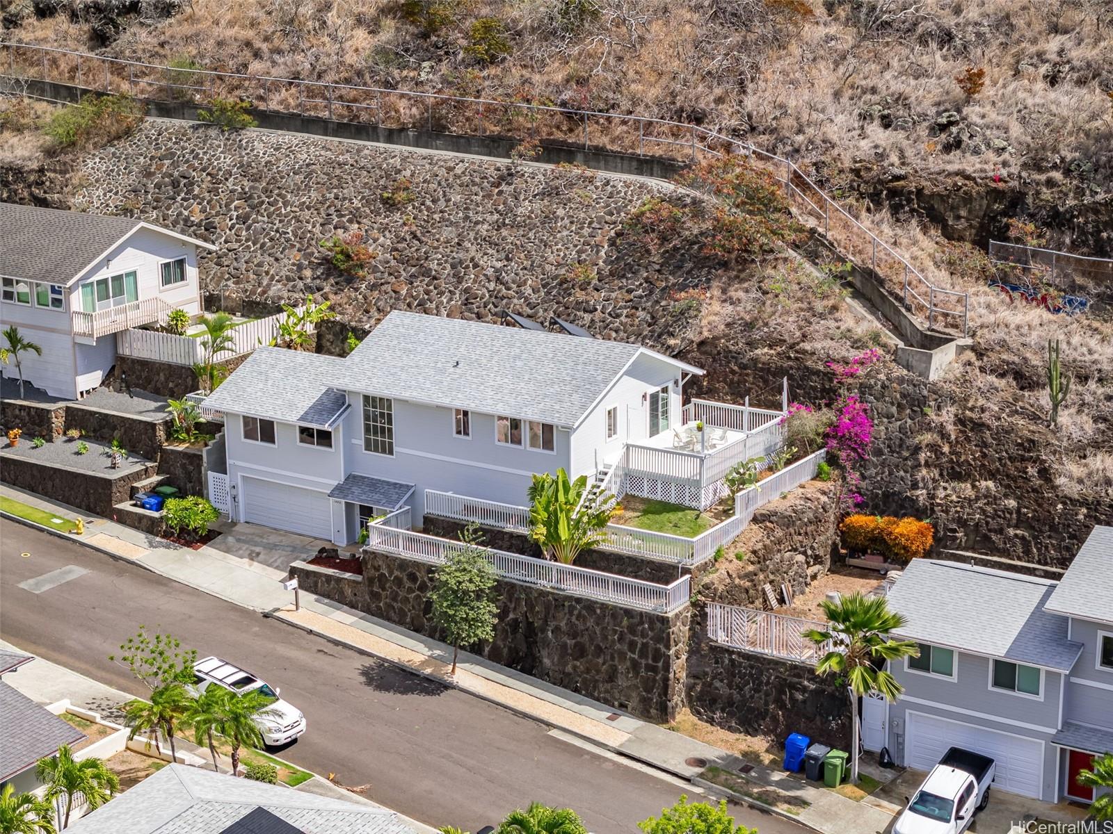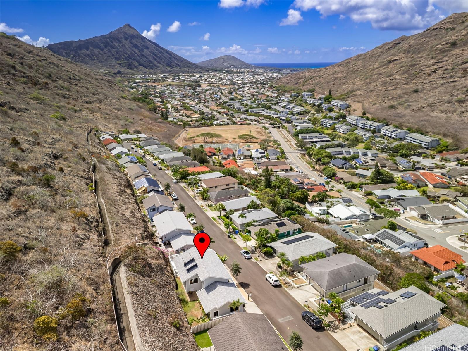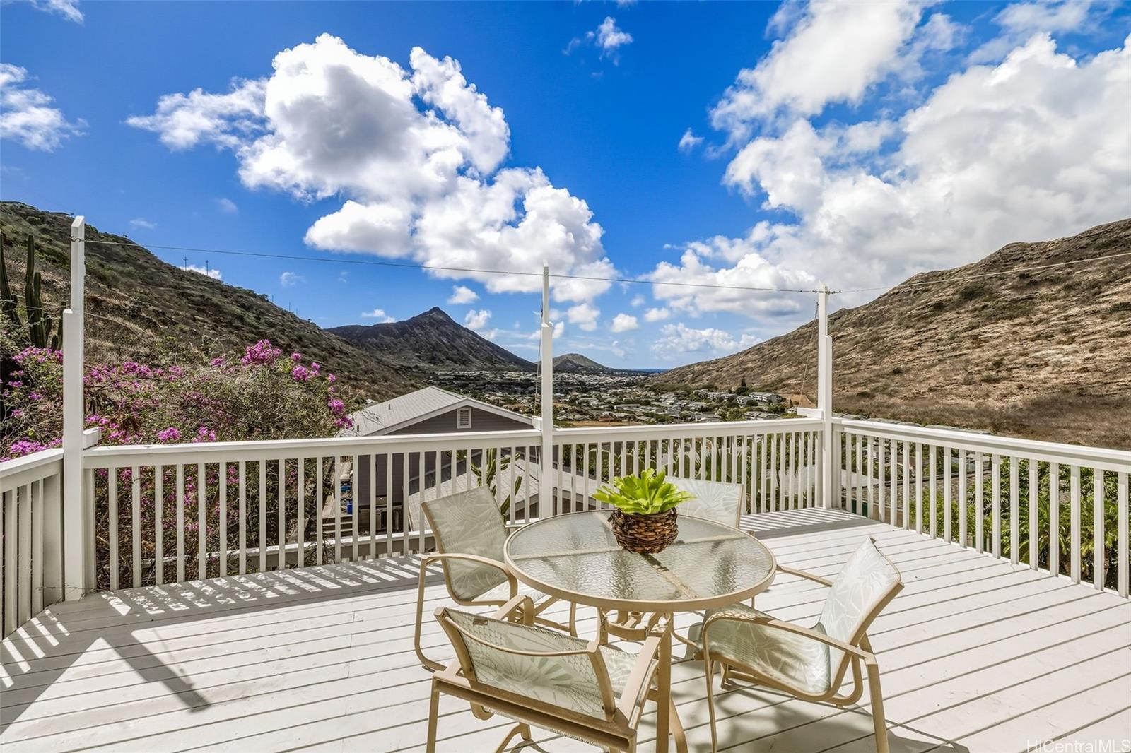 string(1137) "This well-maintained three-bedroom, two-bath home offers picturesque mountain and peek-a-boo ocean views, including views of both Koko Crater and Koko Head. The home features several recent upgrades, a new roof in 2024, a new deck, and some new siding. The interior has just been painted, and the exterior was painted in 2021. Also includes a two-car garage with a laundry room, both recently painted, and a solar water heating system. The backyard features banana and other fruit trees. The location offers easy access to Kamilo'iki Neighborhood & Community Parks, which provide a skate park, pickleball, tennis and basketball courts, a roller rink, playgrounds, jungle gyms, and open fields. The Hawaii Kai community offers an array of appealing features, including beautiful beaches, diverse shopping areas, scenic hiking trails, and baccalaureate programs at local schools. Miloiki Street is no longer a private road. The property is being sold "As-Is" and is easy to show. For more information, please see the supplements for the survey and additional documents. First open house this Sunday, October 26, from 2:00 PM to 5:00 PM."