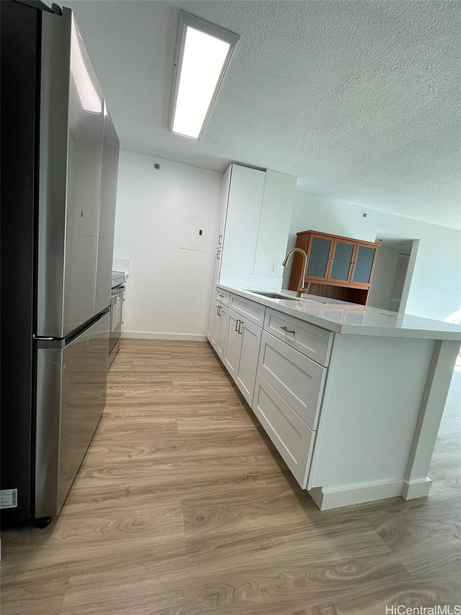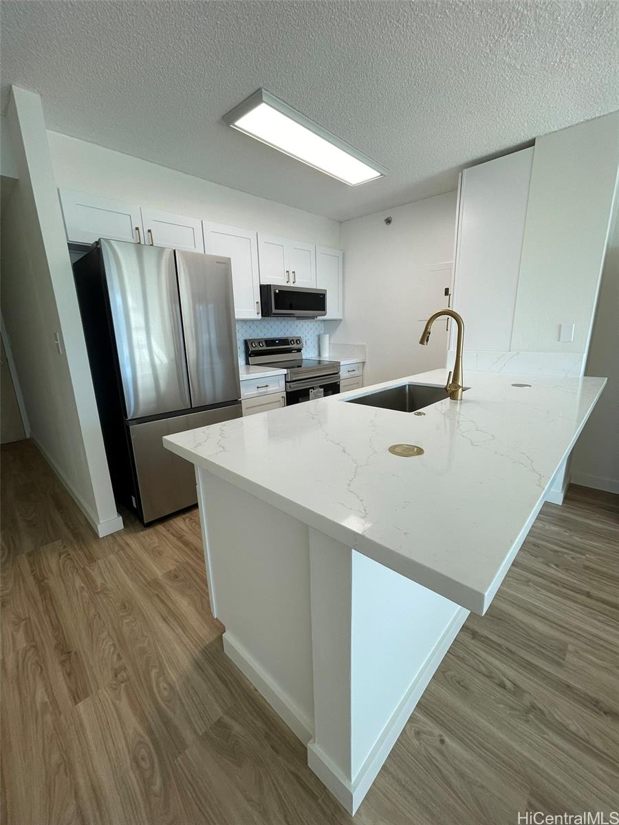 Renovated in 2025! 1448 Young St - built in 1999. Beautiful and bright 2BR/1BA with upgraded luxury vinyl floors throughout, new paint, new bathroom vanity, contemporary open kitchen with new cabinets and new appliances, ceiling fans, new A/C, new light fixtures and more! Centrally located building, close to Ala Moana Shopping Center, Sam's Club, Walmart, restaurants, grocery stores and easy freeway access. Secure building with resident manager and security on duty at entry. Lots of guest parking. Great Leasehold property: City and County of Honolulu owns ground lease. Lease rent is only $1 year until 2029 and lease expires in 2064. Low maintenance fees! Pets: aquarium fish only. Open House Sun, Oct 19 from 2-4pm & Sun, Oct 26 from 2-4pm. Listing by: Help-U-Sell Honolulu Prop. (808) 256-2892