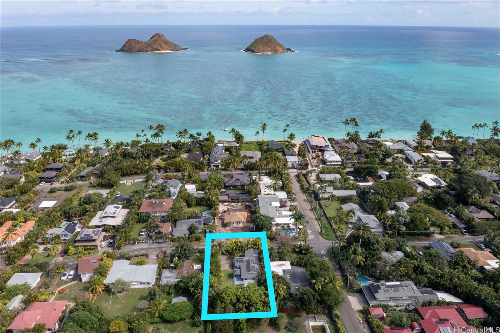 Experience the best of Lanikai—where the quiet end of the road leads to your own private paradise. This peaceful retreat sits on a generous enclosed 11,250 SF fully landscaped lot. A rock wall and private electric gate with camera security offer exceptional privacy and mature tropical grounds include a thriving avocado, mtn apple & puakenikeni.