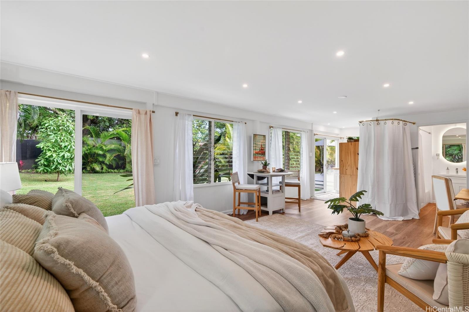 Modern upgrades elevate everyday living in the turnkey main residence (3 bed/2 bath). Fully renovated smart home w/oak hardwood floors, new kitchen and spa-like bathrooms. New doors & windows invite abundant natural light, while split AC's throughout ensure year-round comfort. A wrap-around deck seamlessly connects for Hawaii indoor/outdoor living.
