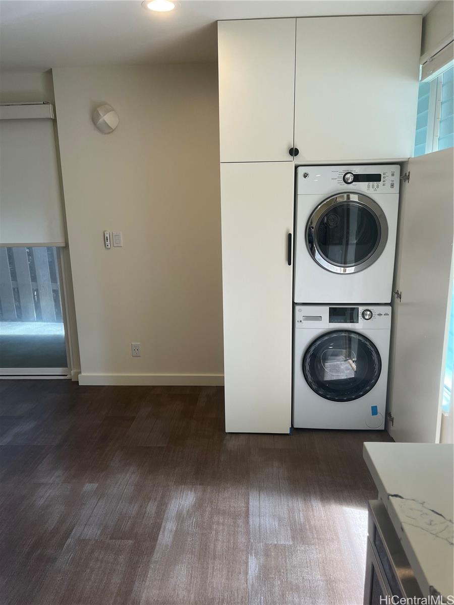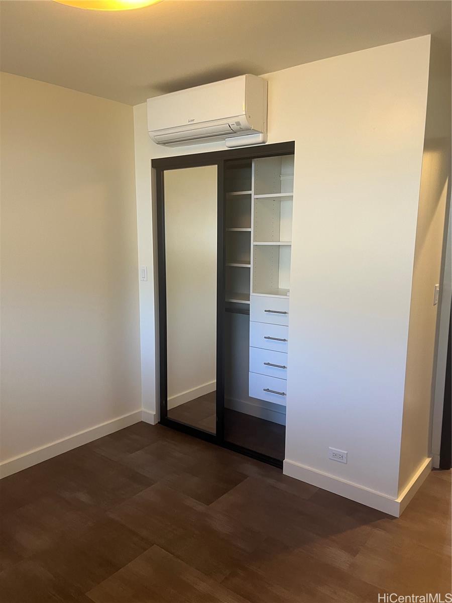 Unit was totally remodeled and upgraded in 2020, and also recently completely repainted. Bosch kitchen appliances, split AC units in bedrooms and living room, custom blinds, custom closet systems, beautiful flooring through out, private  covered lanai off from living room. Special custom cabinets with pull out drawers and soft hinge closing. Relocated washer dryer to allow more kitchen counter space. Flowing kitchen layout. Large kitchen island . Quartz counter tops in kitchen.