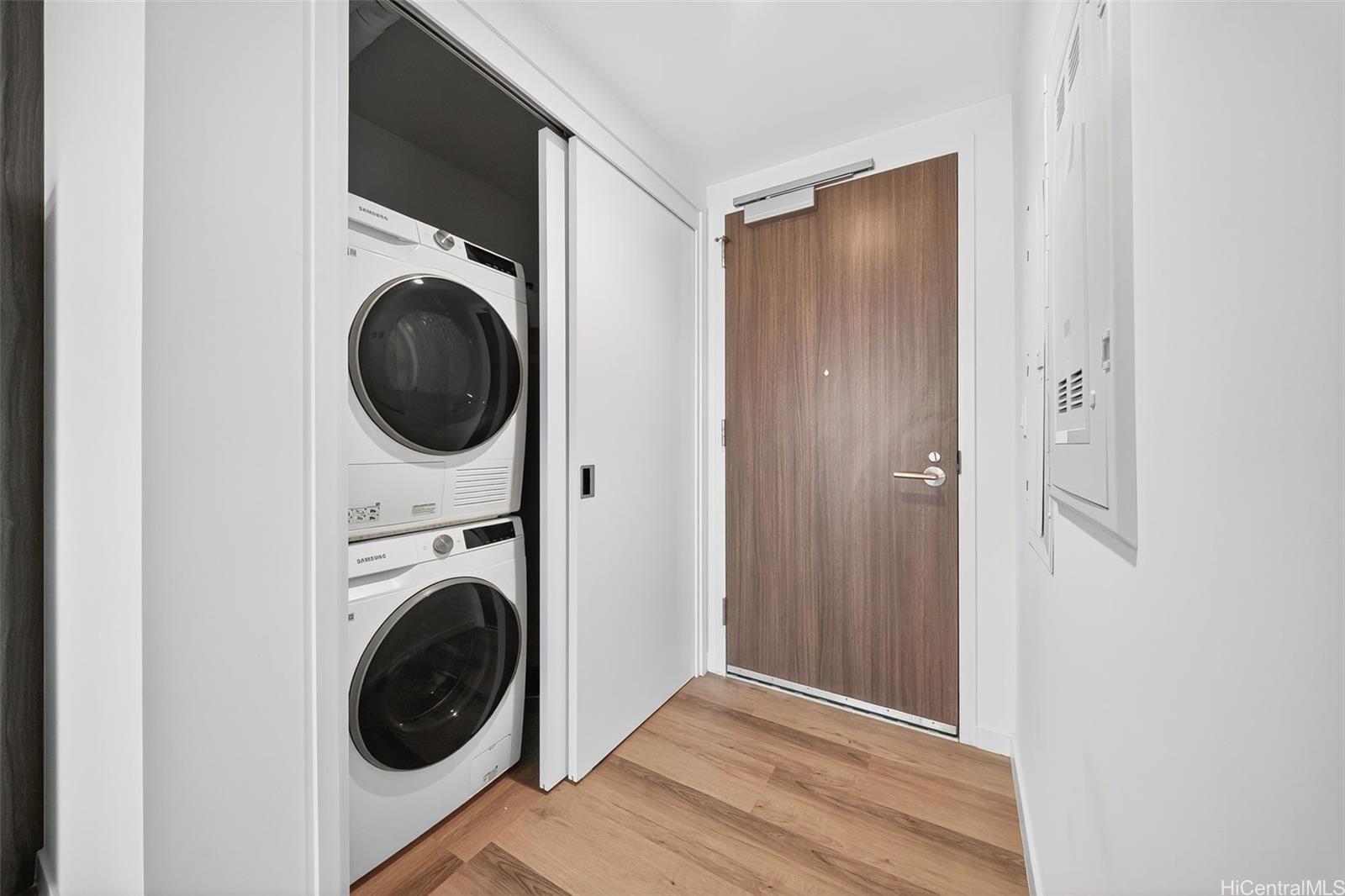 combines modern design with easy, low-maintenance living—featuring floor-to-ceiling windows, split A/C, a generous lanai, luxury vinyl flooring, quartz counters, stainless steel appliances, and in-unit laundry with assigned parking. Enjoy resort-style amenities including an infinity pool and spa with city and ocean views, BBQ pavilions, fitness and yoga studios, theater room, club lounges, sauna, and guest parking. Enjoy the best of urban living in this new home, conveniently located near Ala Moana Center, Walmart, Sam’s Club, and Target, with easy access to dining, shopping, and major freeways."