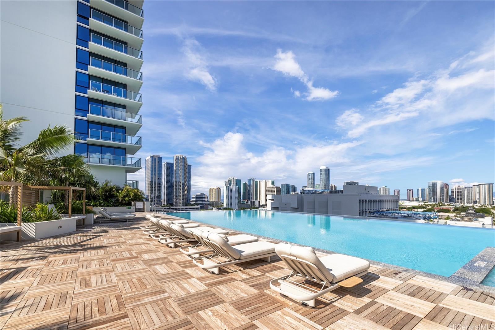 Don’t miss your chance to own in one of Honolulu’s most exciting new developments! This bright, open-concept 2-bedroom, 2-bath, residence on the 24th floor features floor-to-ceiling windows, modern finishes, split A/C in every room, and your own private lanai—perfect for relaxing and enjoying beautiful sunsets. Unit also features 2 side by side parking stalls. Enjoy over an acre of resort-style amenities including an infinity pool and spa, fitness center, sauna, movie theatre, media room, BBQ cabanas, co-working spaces, and so much more. Located in the heart of town, just minutes from Ala Moana Center, Ala Moana beach, pickleball, Waikiki, shopping and dining. Experience the convenience of the live, work, play lifestyle! Seize this opportunity before it’s gone! Listing by: Coldwell Banker Realty (808) 225-0865
